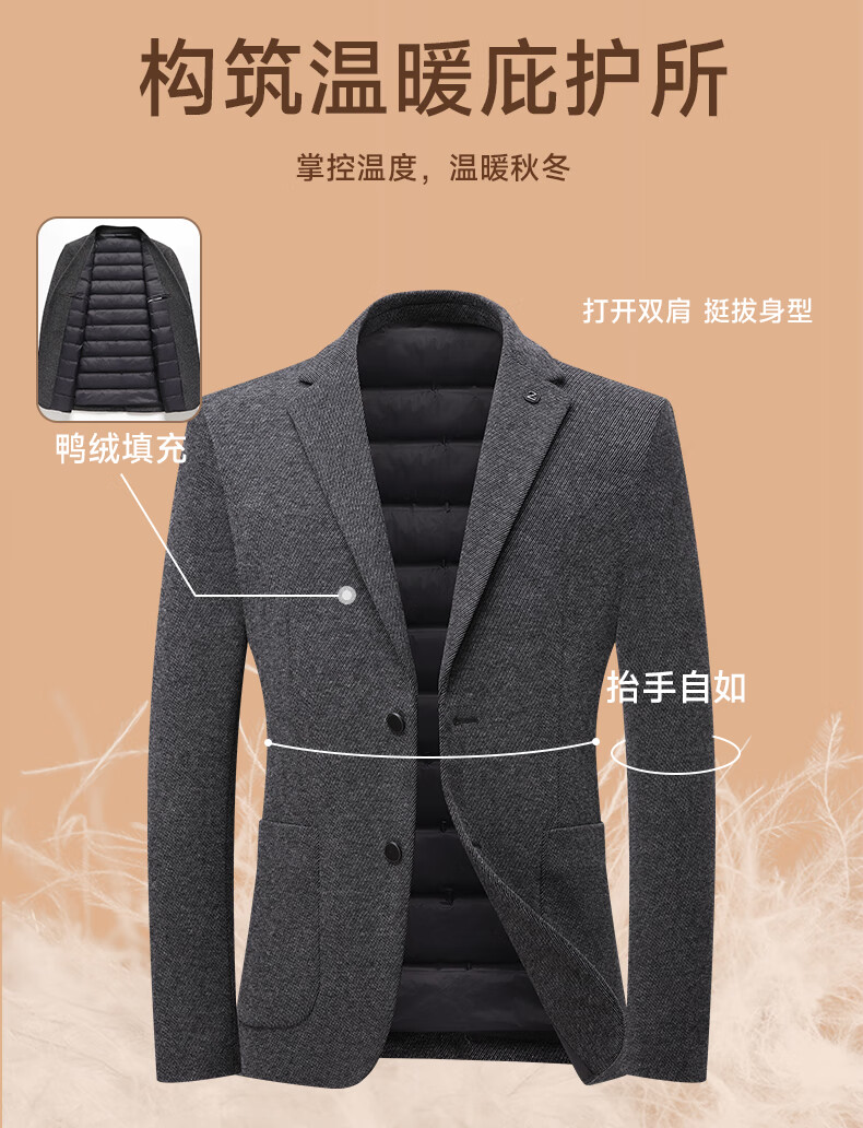 Yalu 90 velvet suit down jacket men's autumn and winter business casual woolen wool coat single suit jacket