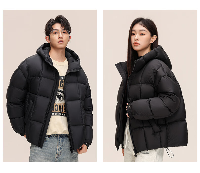 Yalu 242G high-fill velvet short down jacket for men and women, hooded, thickened, warm, fashionable and simple couple jacket