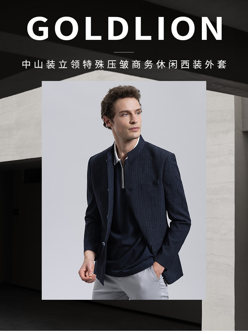 Goldlion Contains Tencel Autumn and Winter Suit Men's Tunic Stand Collar Crushed Business Casual Jacket Suit 95-Navy Blue M 170/88A Recommended 110-135 Jin Jin equals 0.5 kg