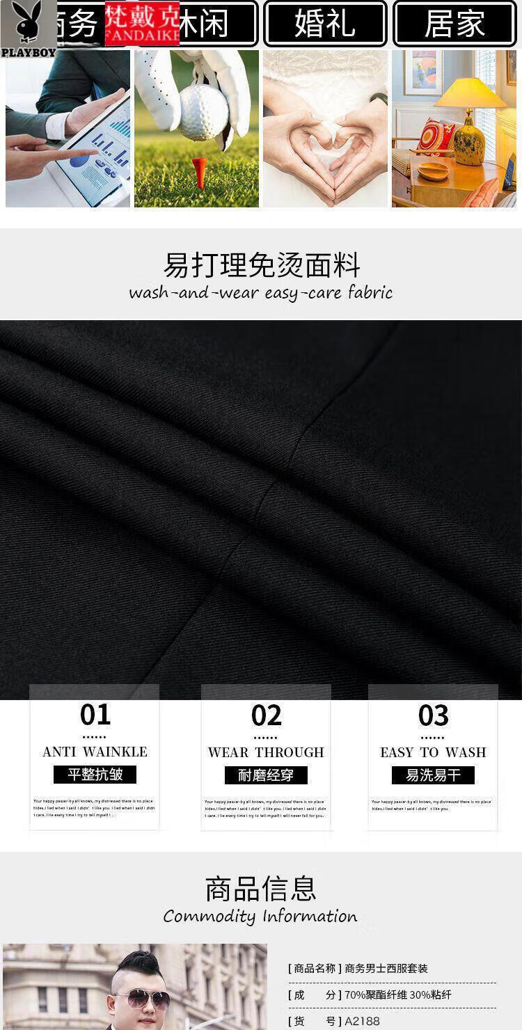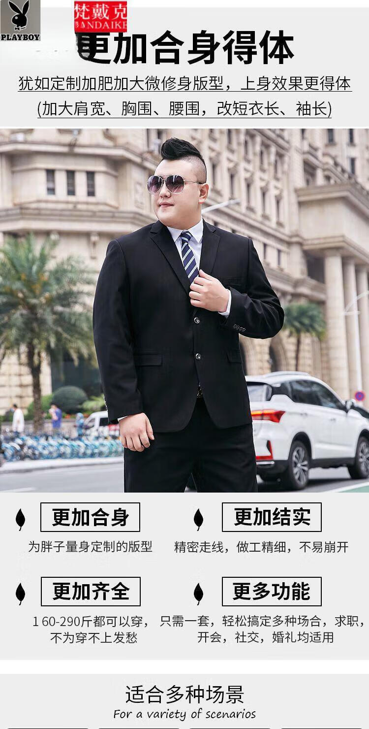 花花公子(PLAYBOY)大码西装男套装正装加肥加大潮胖子职业三件套西服 加大宽松版纯黑上衣+西裤+衬衫 7XL 210 240-260斤