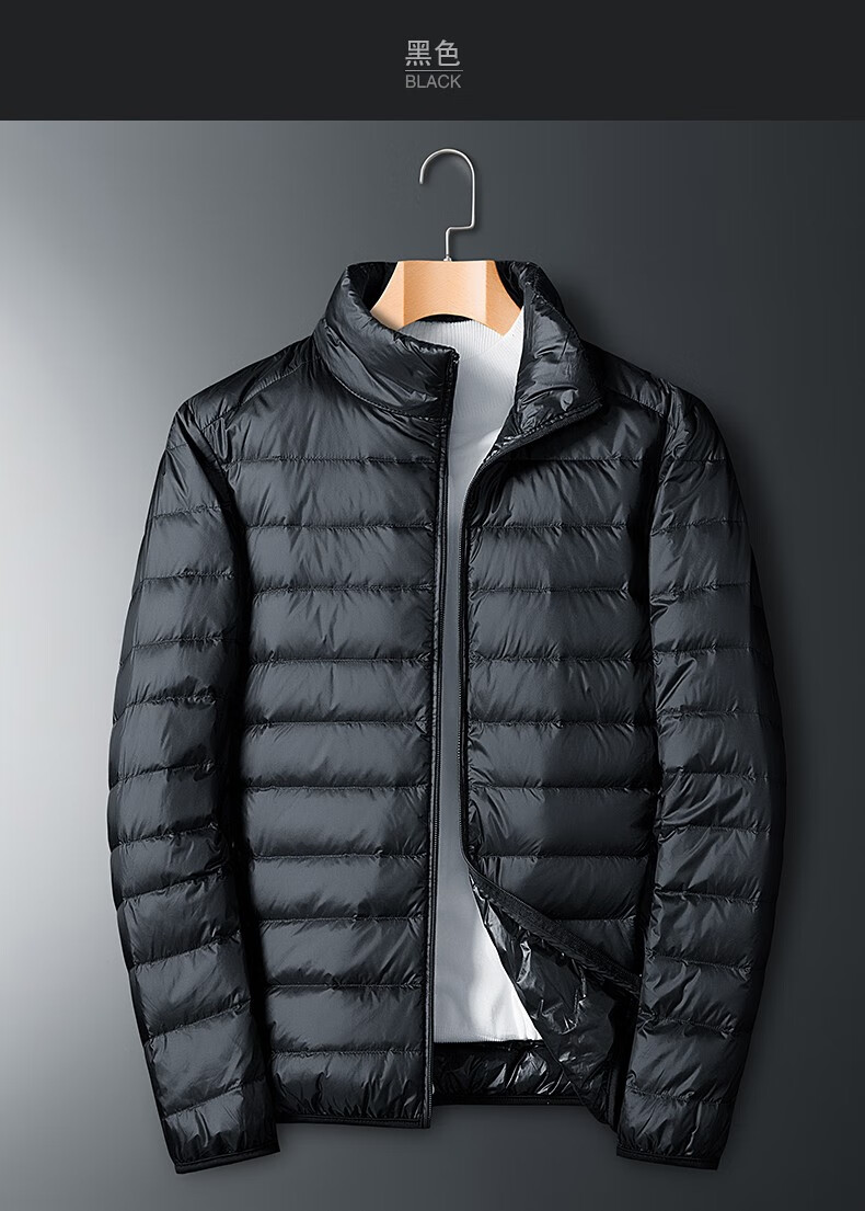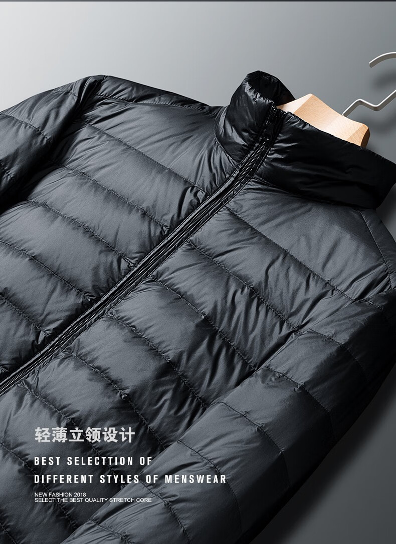 Woodpecker Lightweight Down Jacket Men's Short Winter Jacket Men's New Ultra-Light Casual Young and Middle-aged White Duck 16050 Black (Stand Collar) XL (140Jin Jin is equal to 0.5kg -160Jin Jin is equal to 0.5kg)