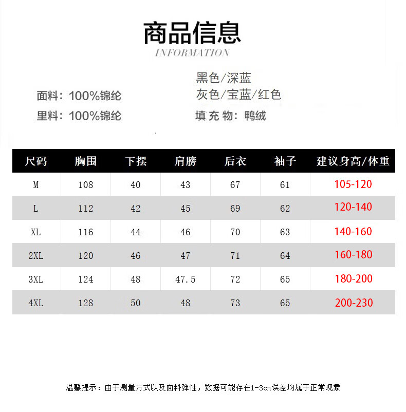 China (cm) 165 / 88-90 170 / 96-98 175 / 108-110 180 / 118-122 185 / 126-130