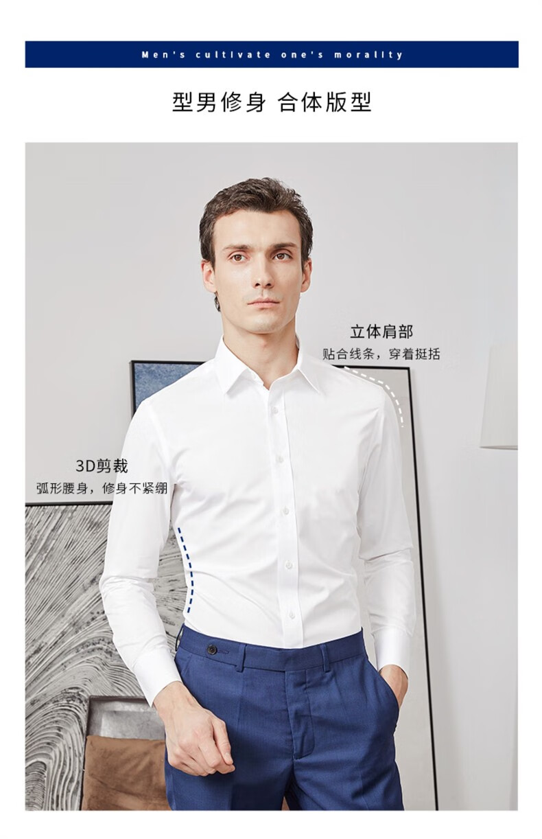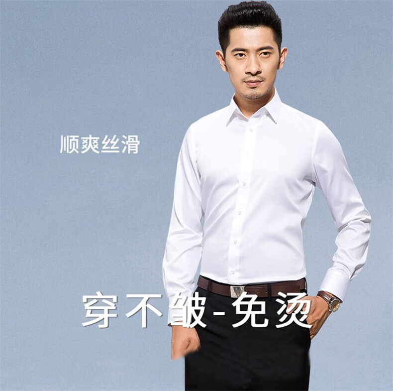 Мужская рубашка против морщин с длинными рукавами и длинными рукавами, деловая повседневная рубашка Woodpecker, профессиональная черно-белая мужская рубашка, белый плюс бархат, 2XL