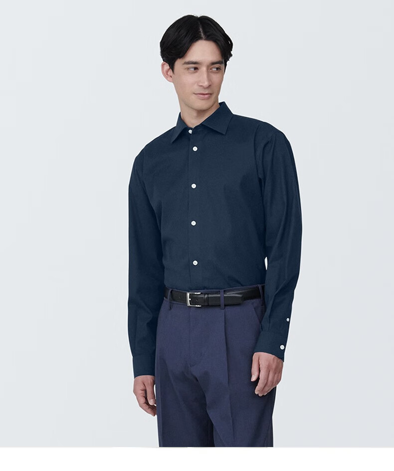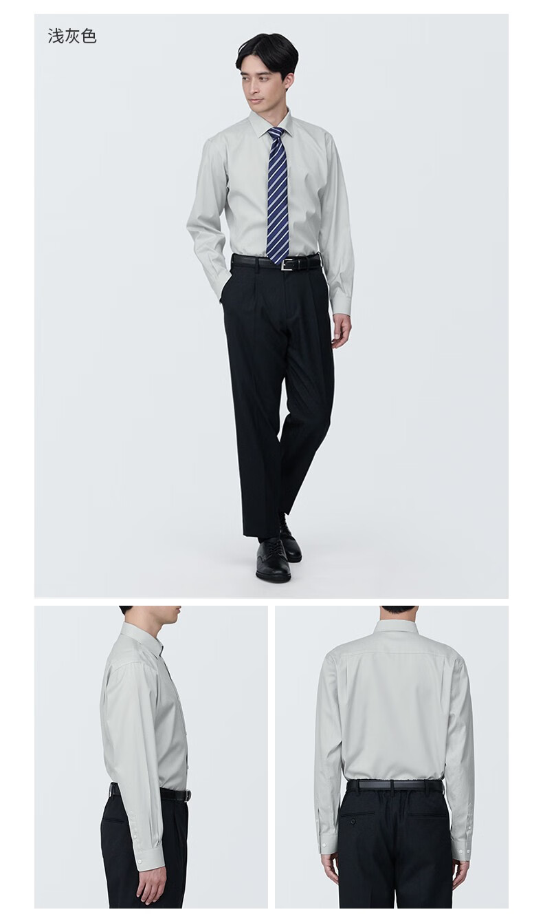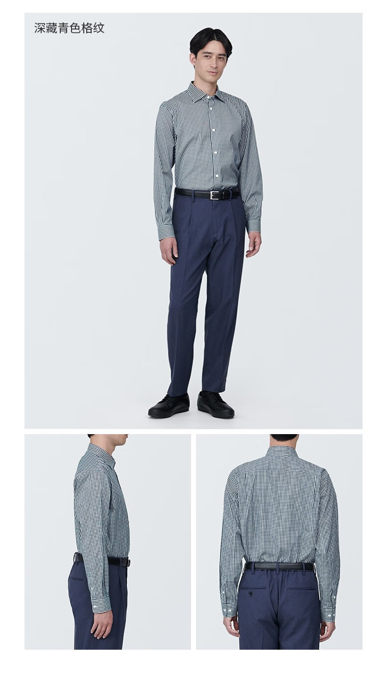 MUJI мужская рубашка без железа с полушироким воротником и длинными рукавами, мужская рубашка в клетку из чистого хлопка светло-серого цвета L (175/100A)