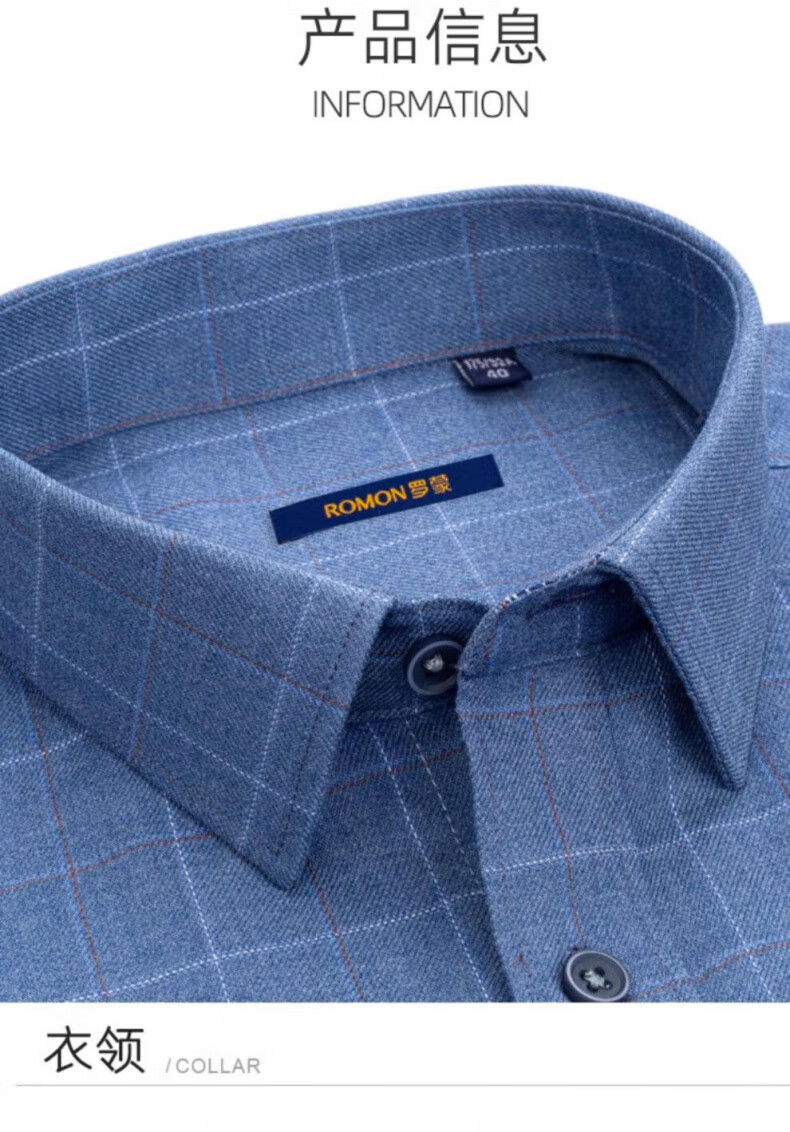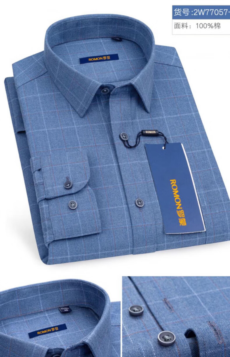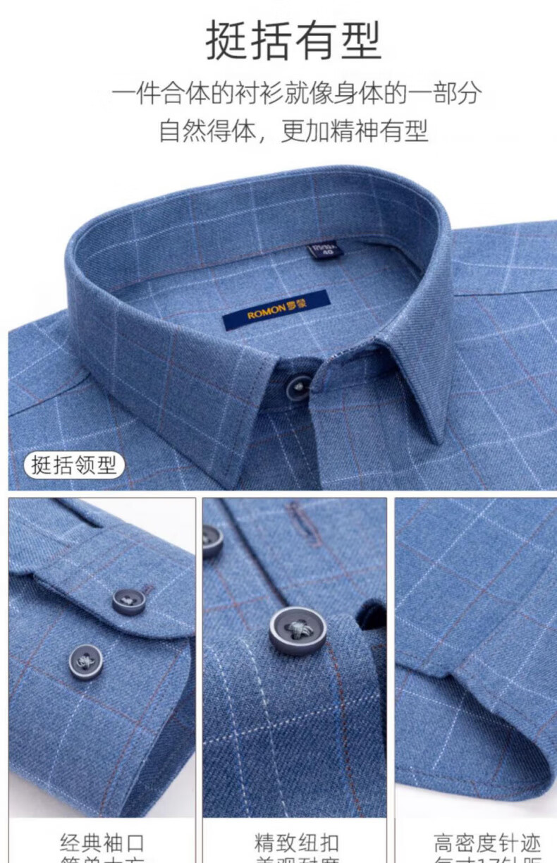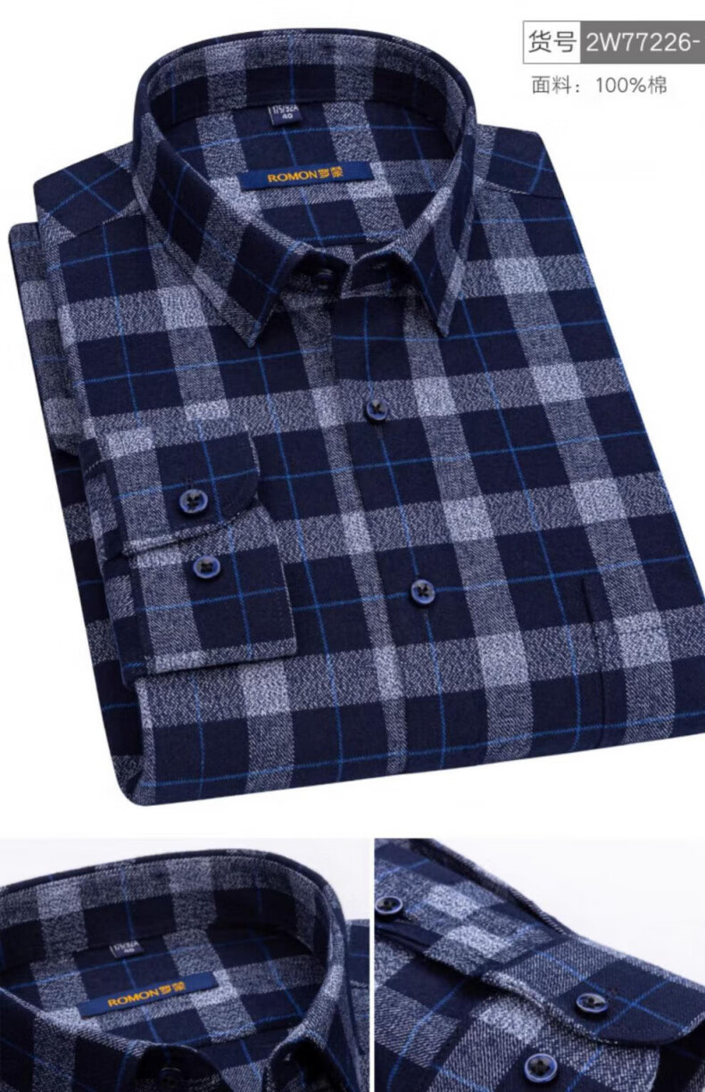 ROMON flannel plaid cotton shirt men's spring and autumn business casual middle-aged warm brushed shirt cotton dad wear 2W77057-1 41 / suitable for 145-155 Jin Jin equals 0.5 kg