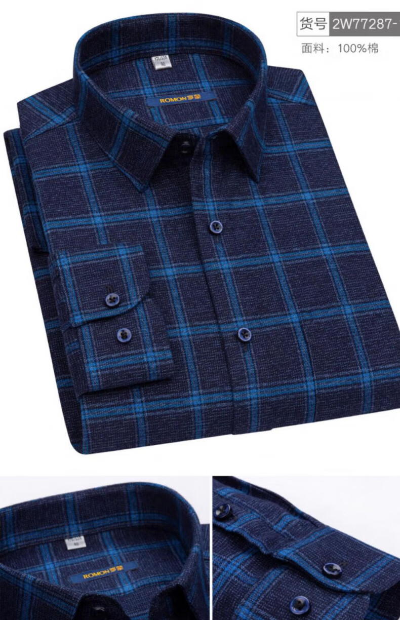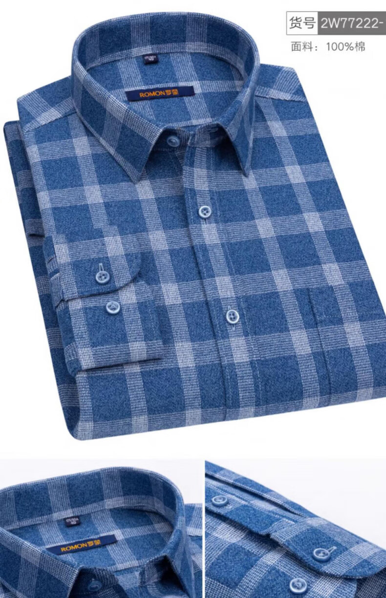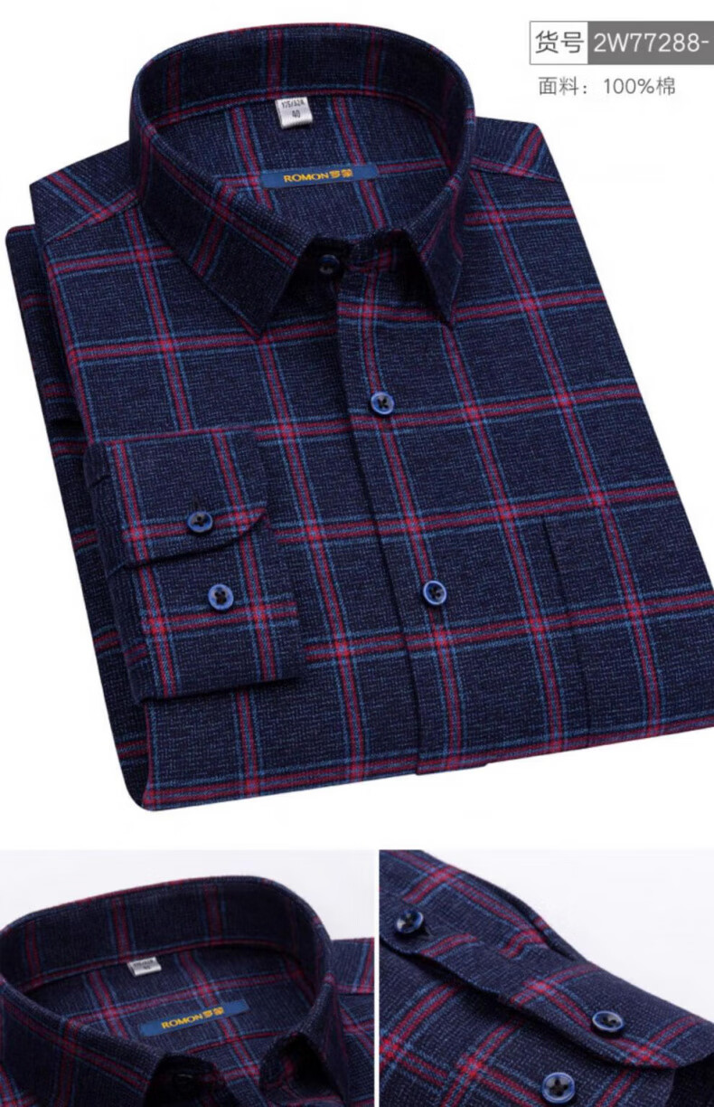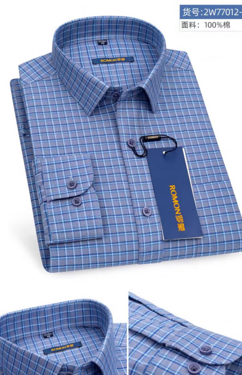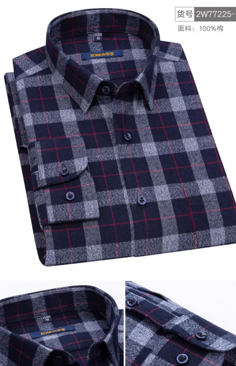 ROMON flannel plaid cotton shirt men's spring and autumn business casual middle-aged warm brushed shirt cotton dad wear 2W77057-1 41 / suitable for 145-155 Jin Jin equals 0.5 kg