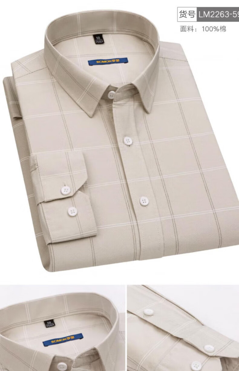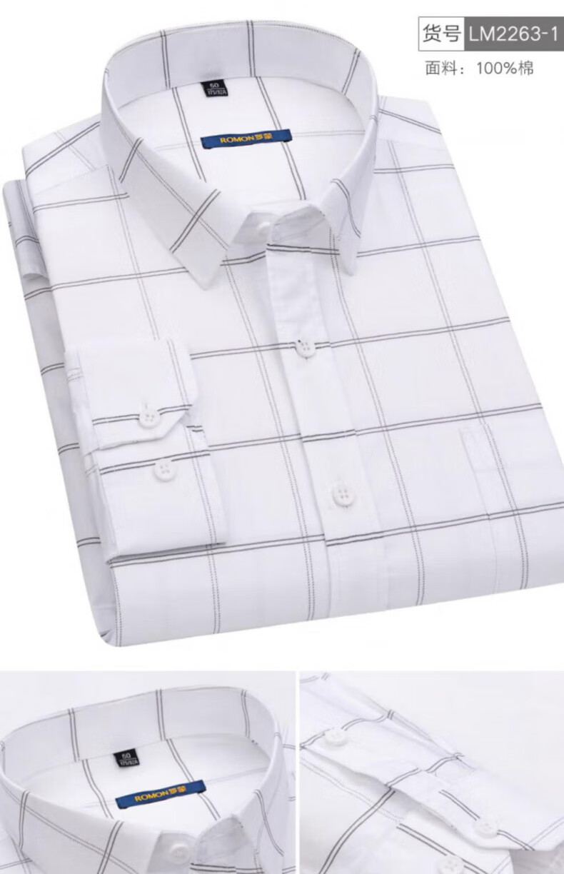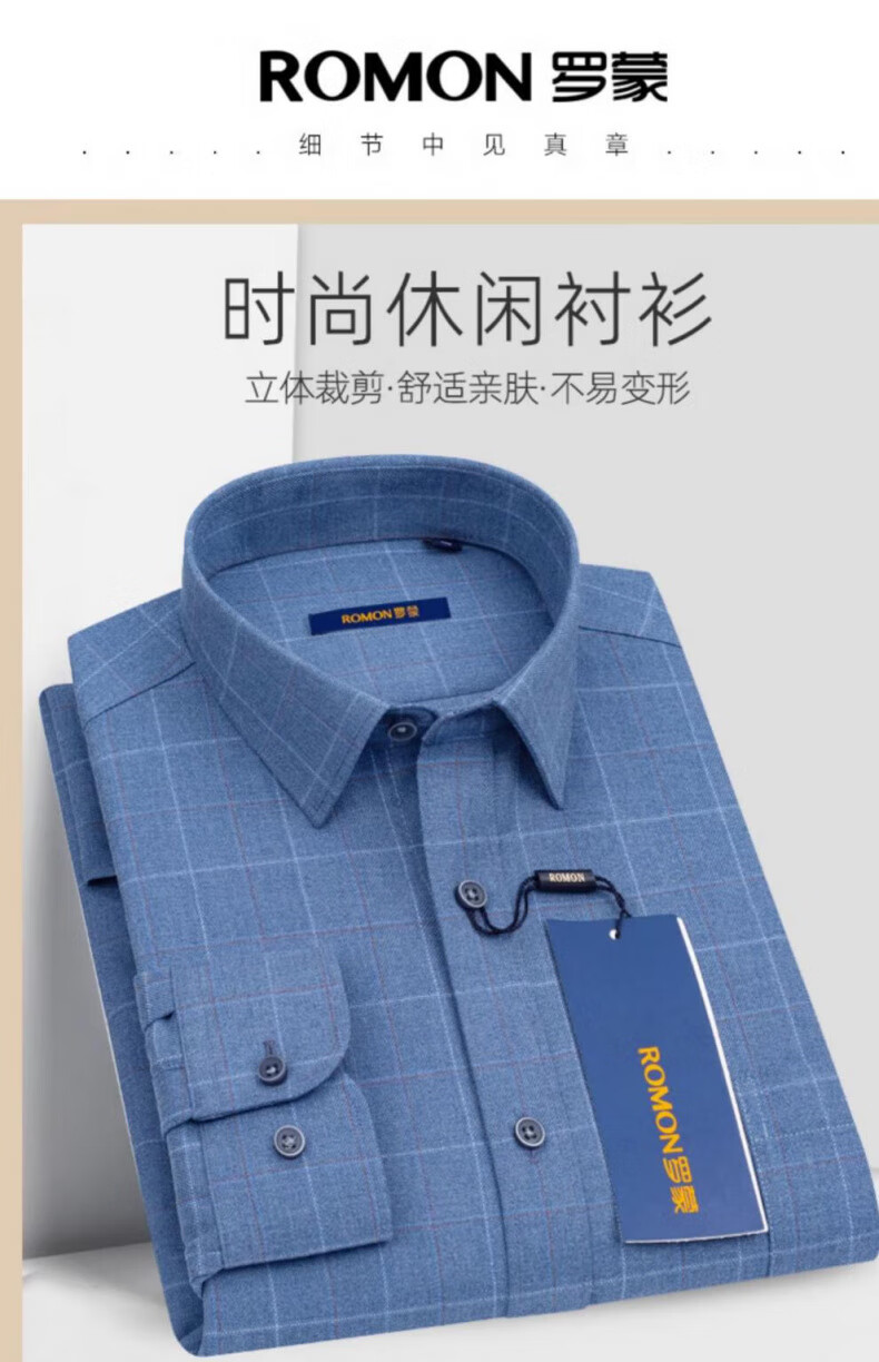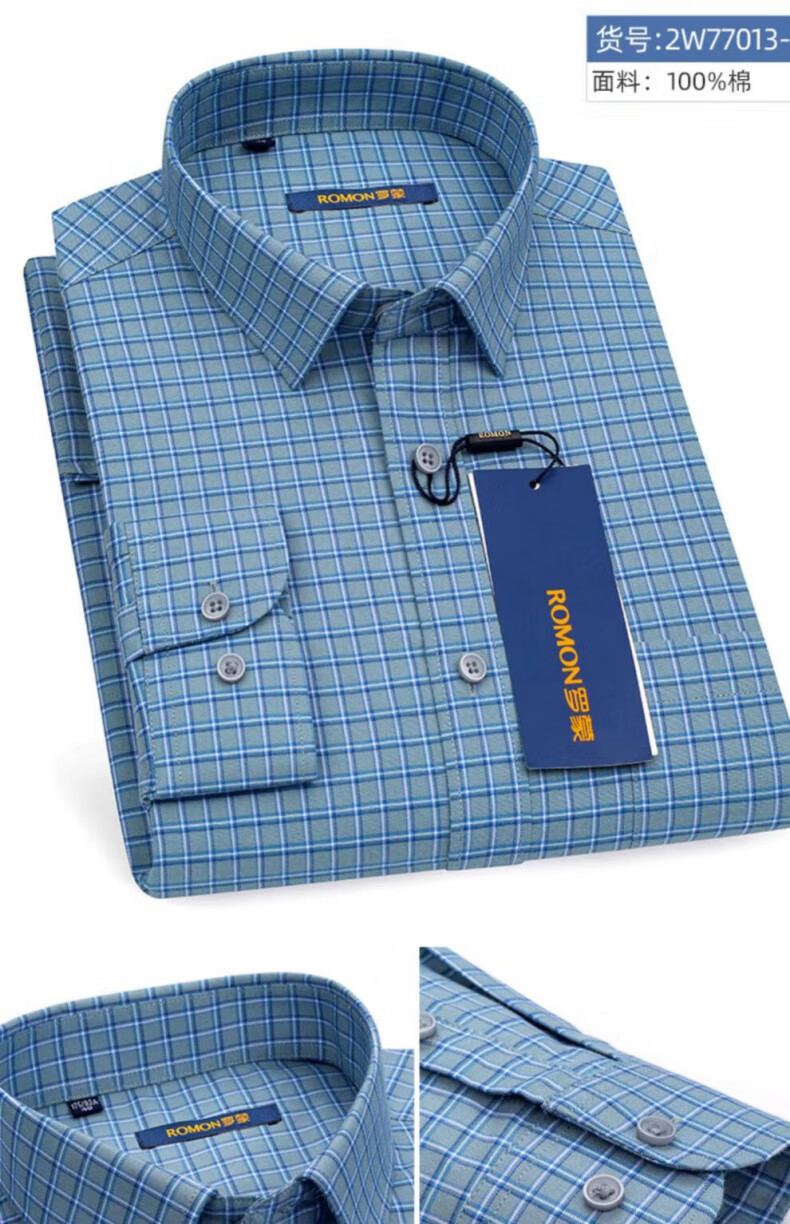 ROMON flannel plaid cotton shirt men's spring and autumn business casual middle-aged warm brushed shirt cotton dad wear 2W77057-1 41 / suitable for 145-155 Jin Jin equals 0.5 kg