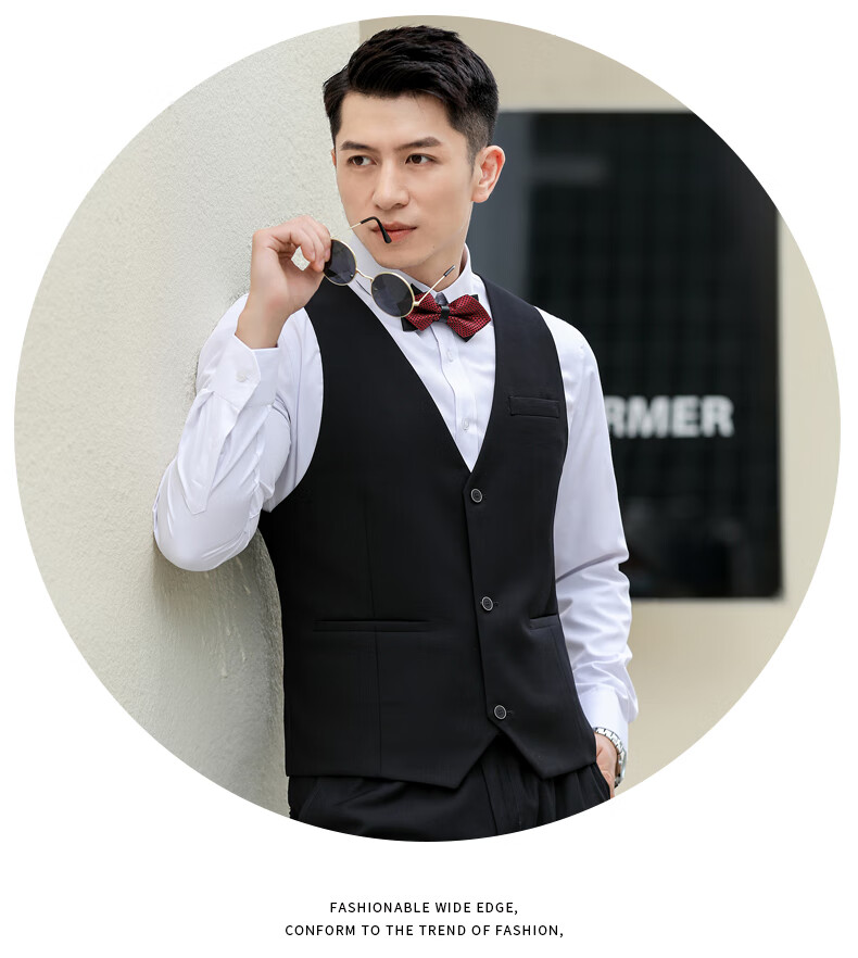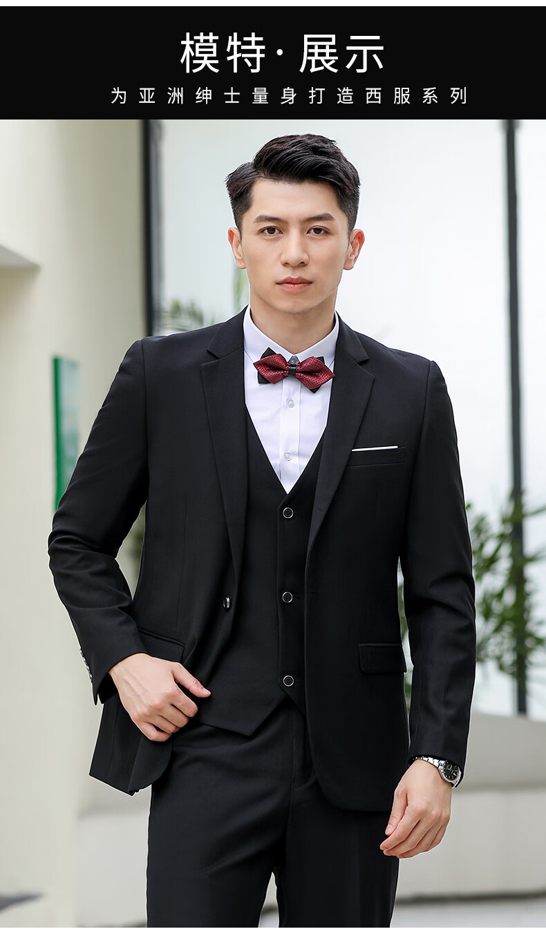 Luo Meng groomsmen suit men's group suit wedding dress white shirt suit groom suit three-piece jacket summer upgraded black vest + shirt + trousers XXL