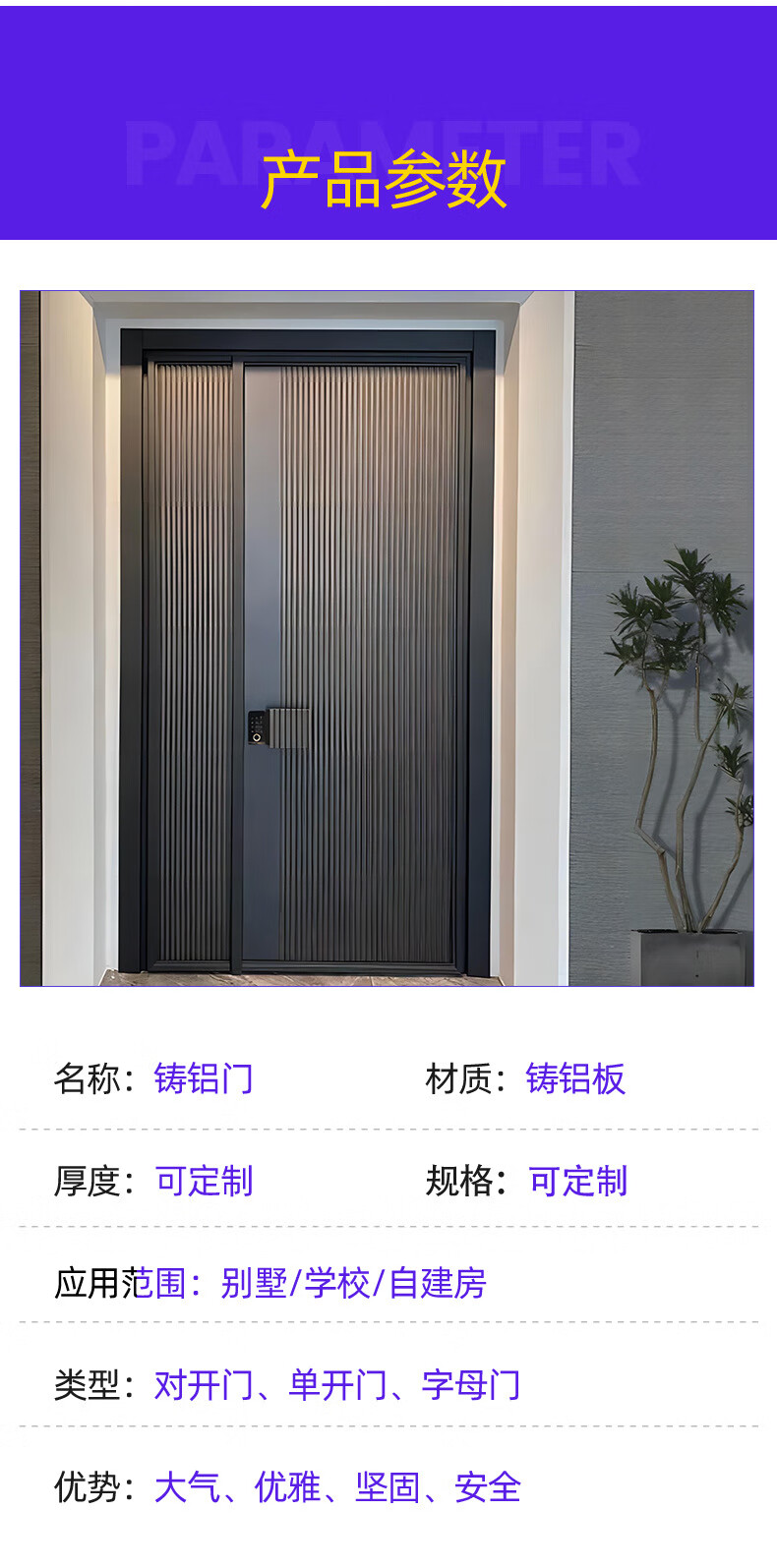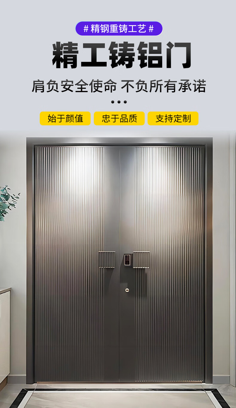 索梵轻奢别墅大门铸铝门对开门入户门农村自建房防盗子母双开四开定制 锌合金 定制