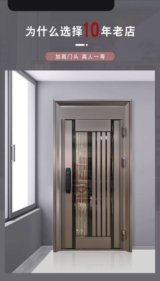 Qinkai customized 304 stainless steel double-door Korean door single-door home villa security door ventilated glass entry door style 3 (customized - intention fee) 304 stainless steel (from 1680/square meter)