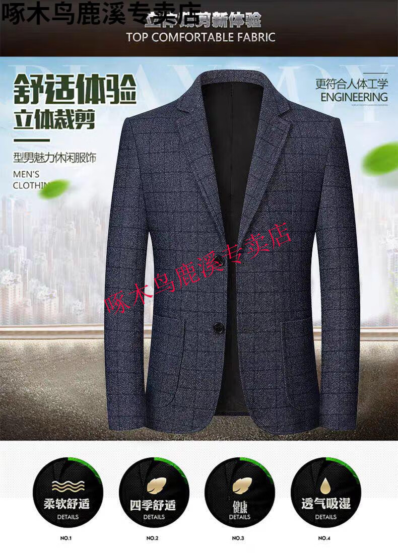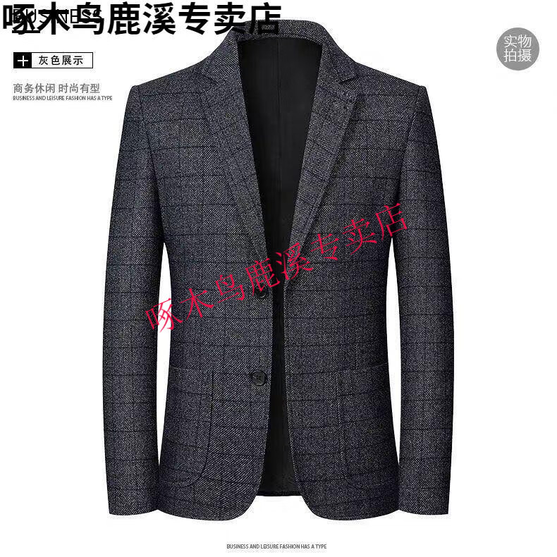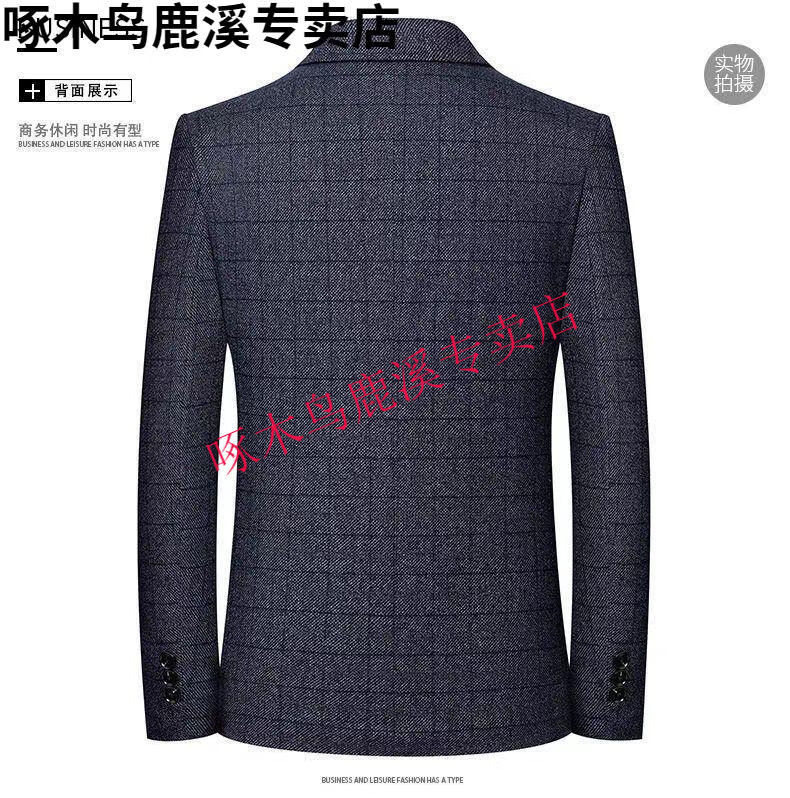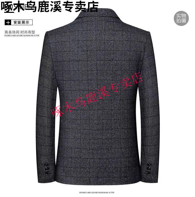 Woodpecker (TUCANO) Autumn and Winter New Middle-aged Business Casual Suit Tops Men's Suit Dad's No-Iron Plaid Fashionable and Versatile Suit Black Gray 2XL 185/104A Recommended 150-170Jin Jin is equal to about 0.5 kg