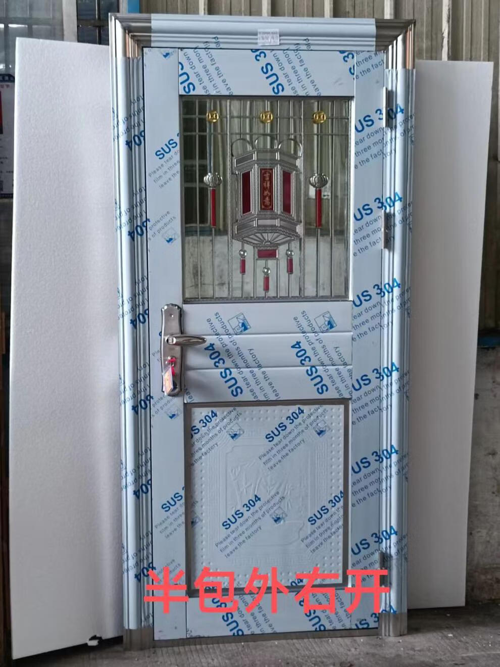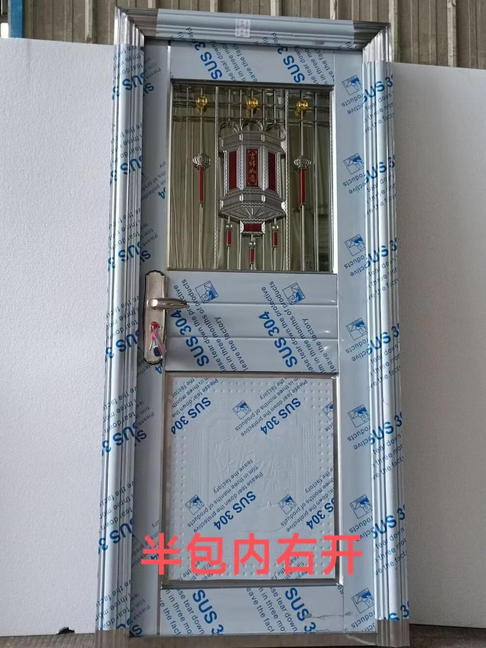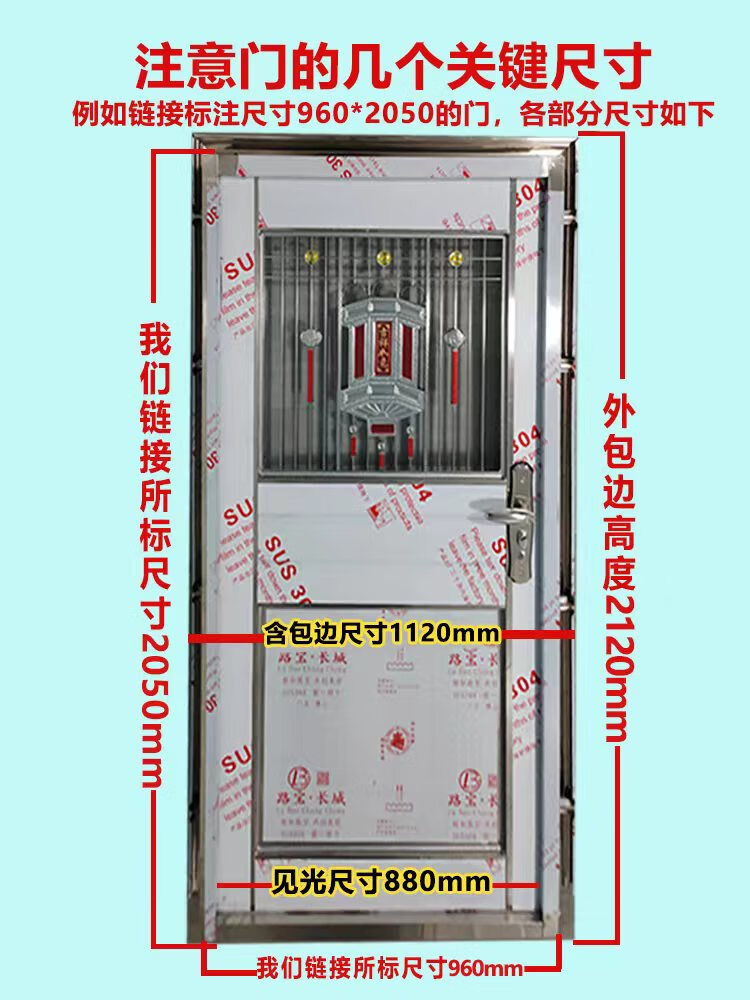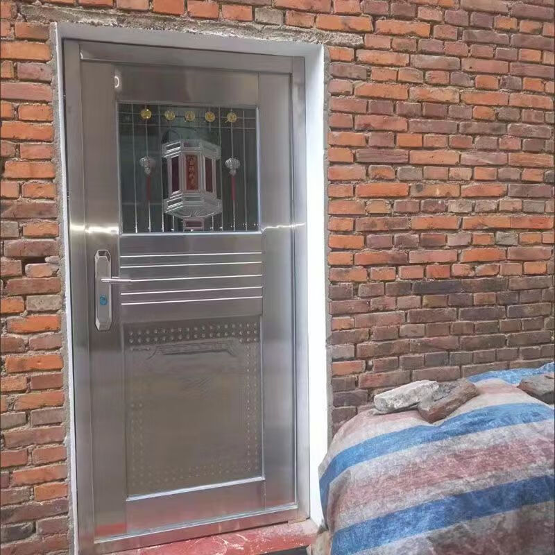 Qilicai thickened 304 stainless steel single door half-wave balcony door entry anti-theft door rental door rural entry door outer door outsourcing right opening-left lock 96x205cm