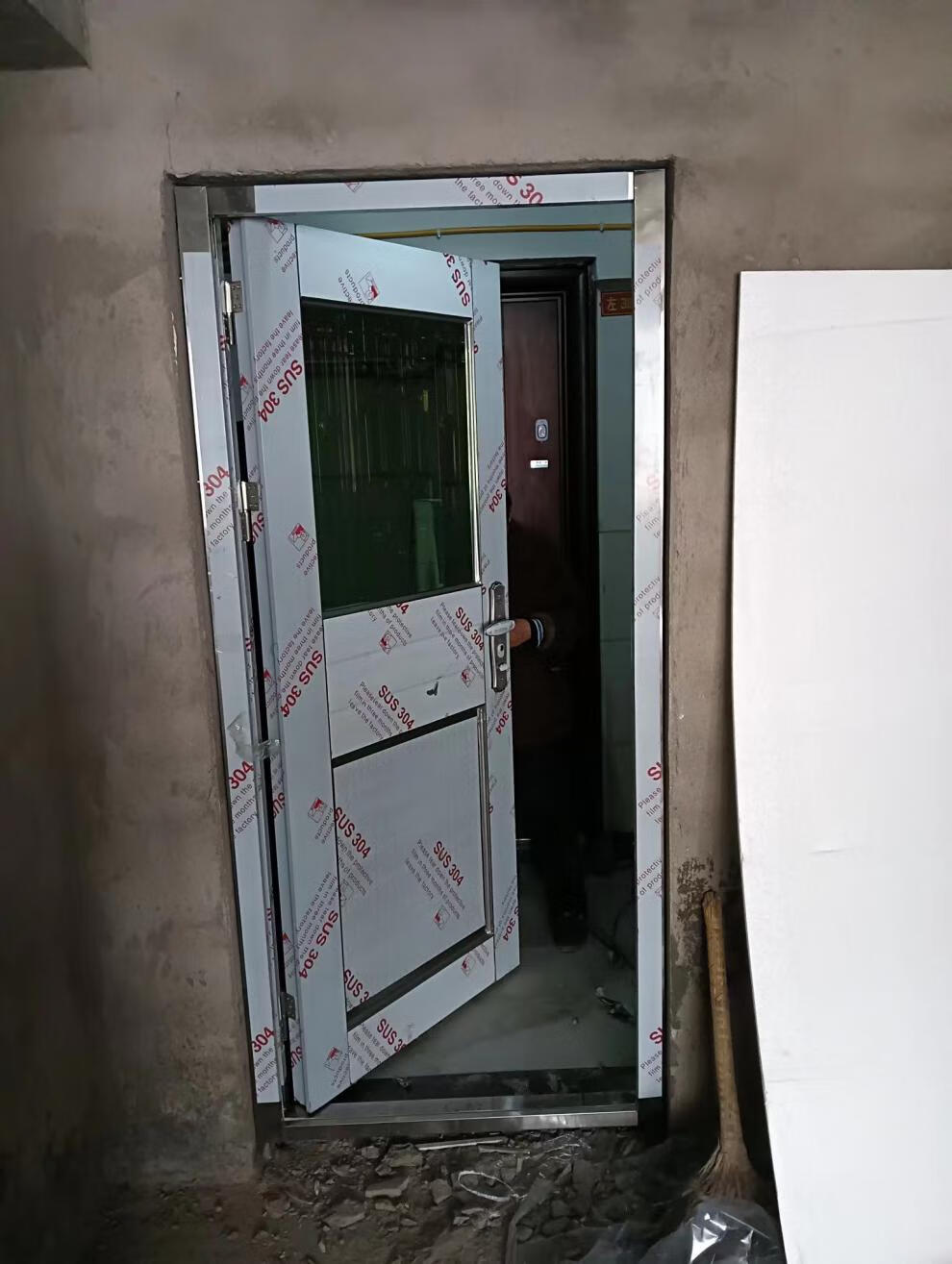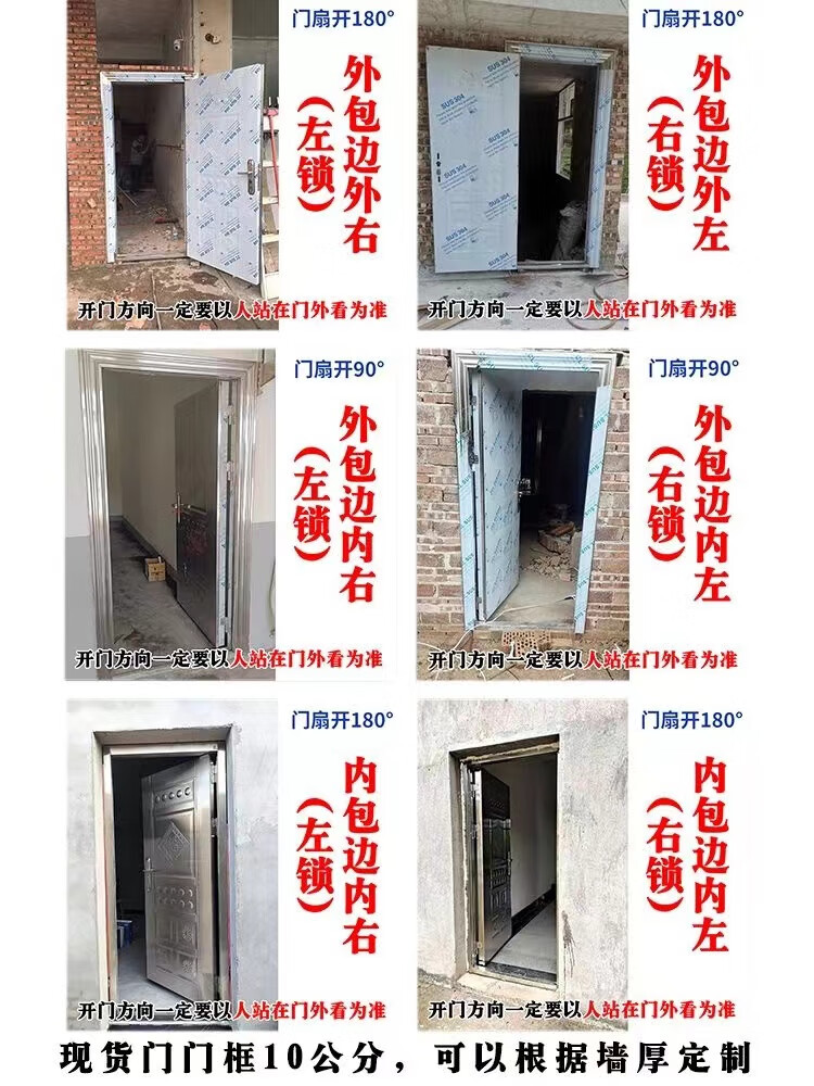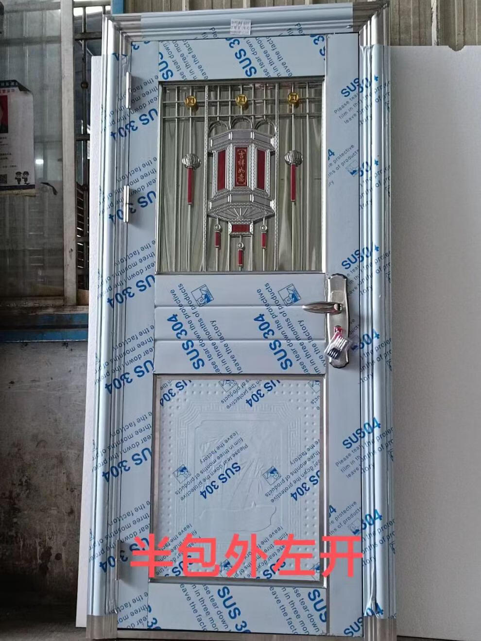 Qilicai thickened 304 stainless steel single door half-wave balcony door entry anti-theft door rental door rural entry door outer door outsourcing right opening-left lock 96x205cm