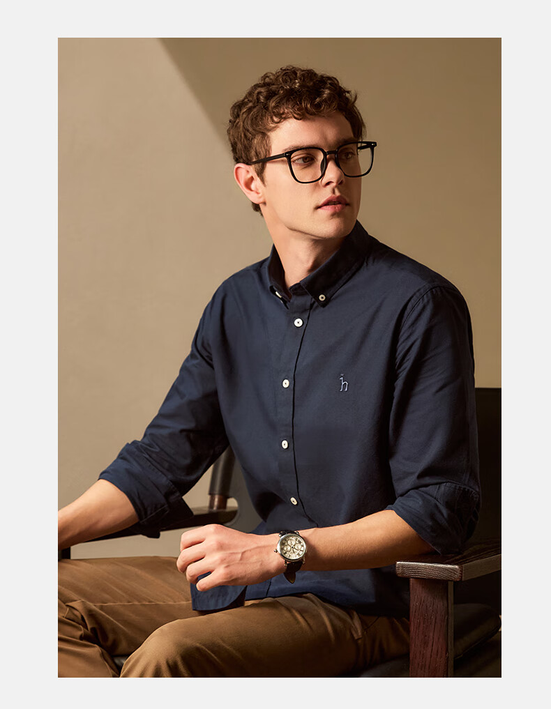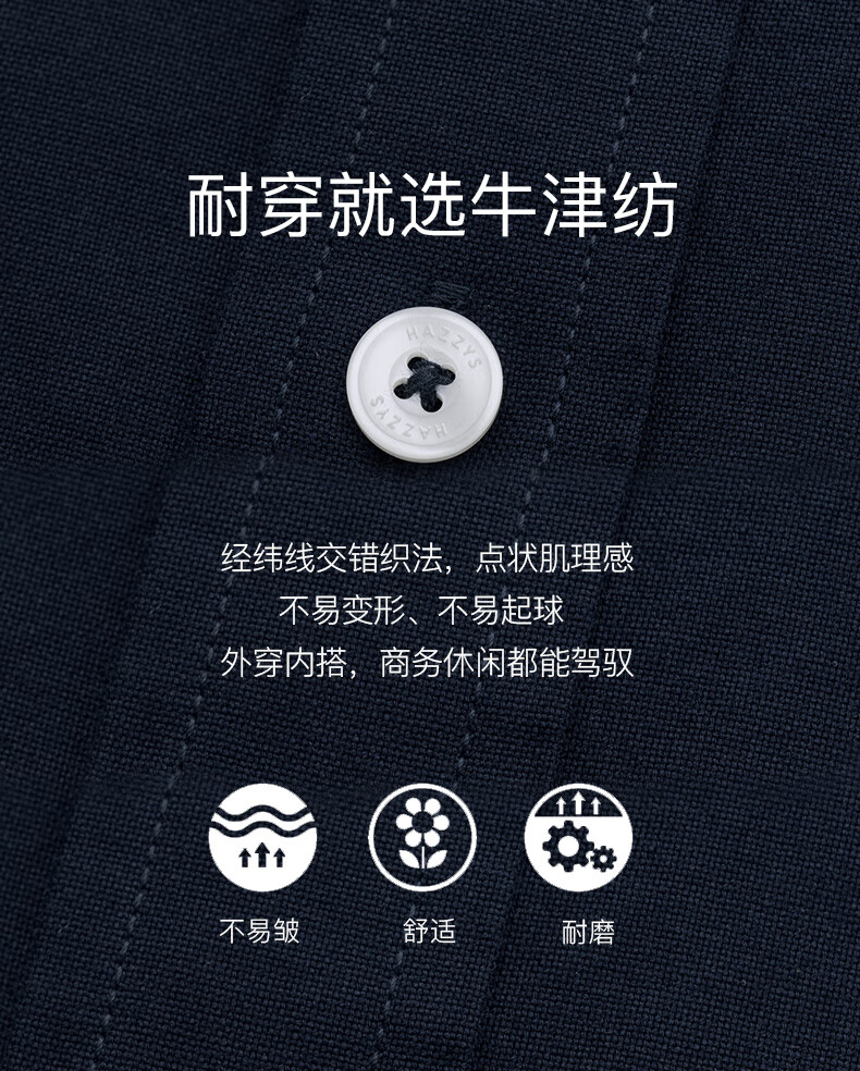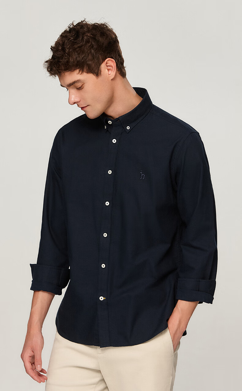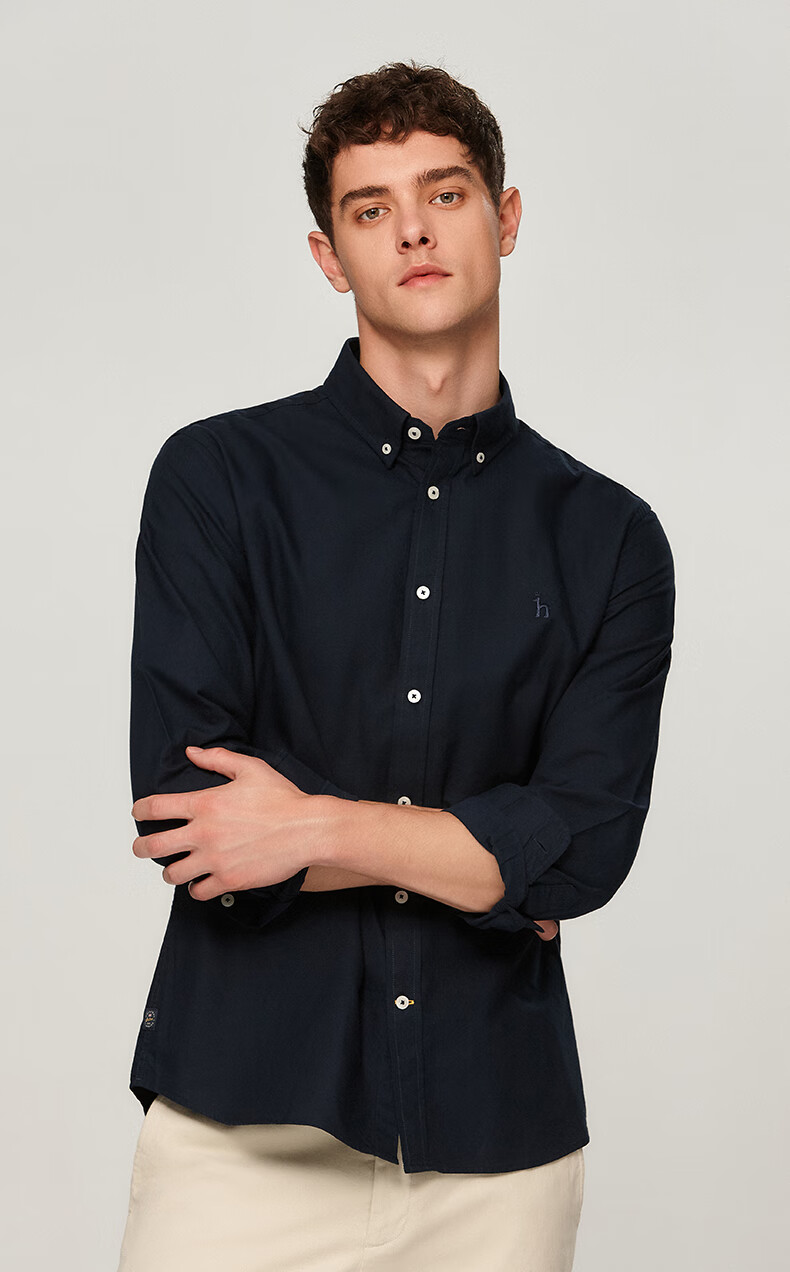 哈吉斯(HAZZYS)男装 秋款衬衣修身【牛津纺】通勤长袖衬衫男ASCZK1BCF03 藏青色NV M (170/92A 46)