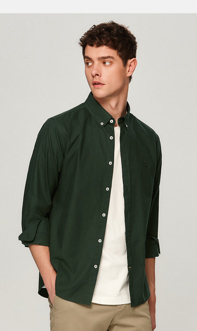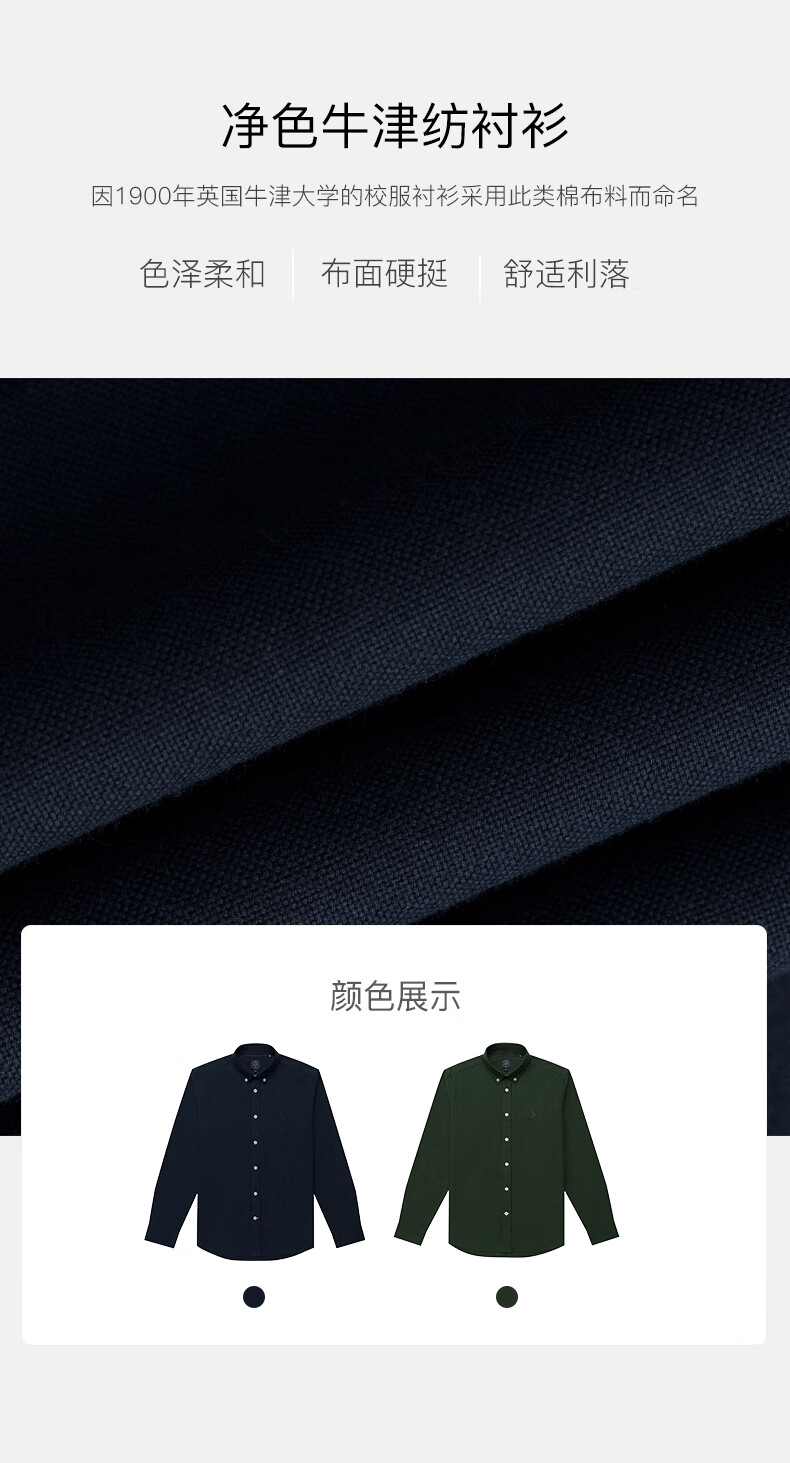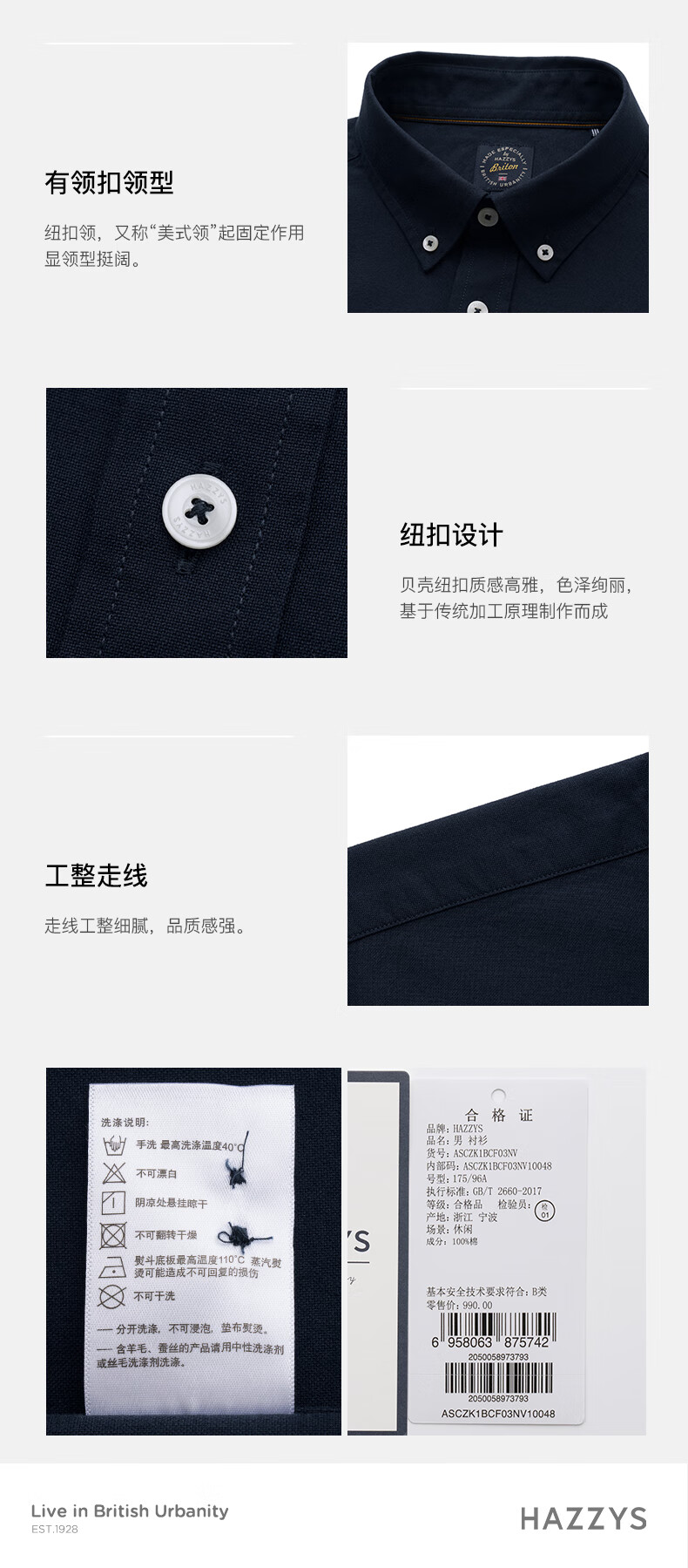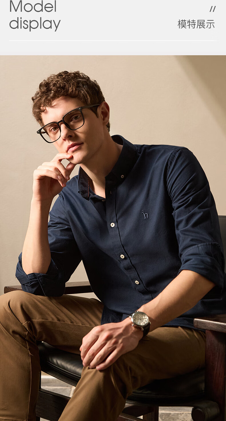 哈吉斯(HAZZYS)男装 秋款衬衣修身【牛津纺】通勤长袖衬衫男ASCZK1BCF03 藏青色NV M (170/92A 46)