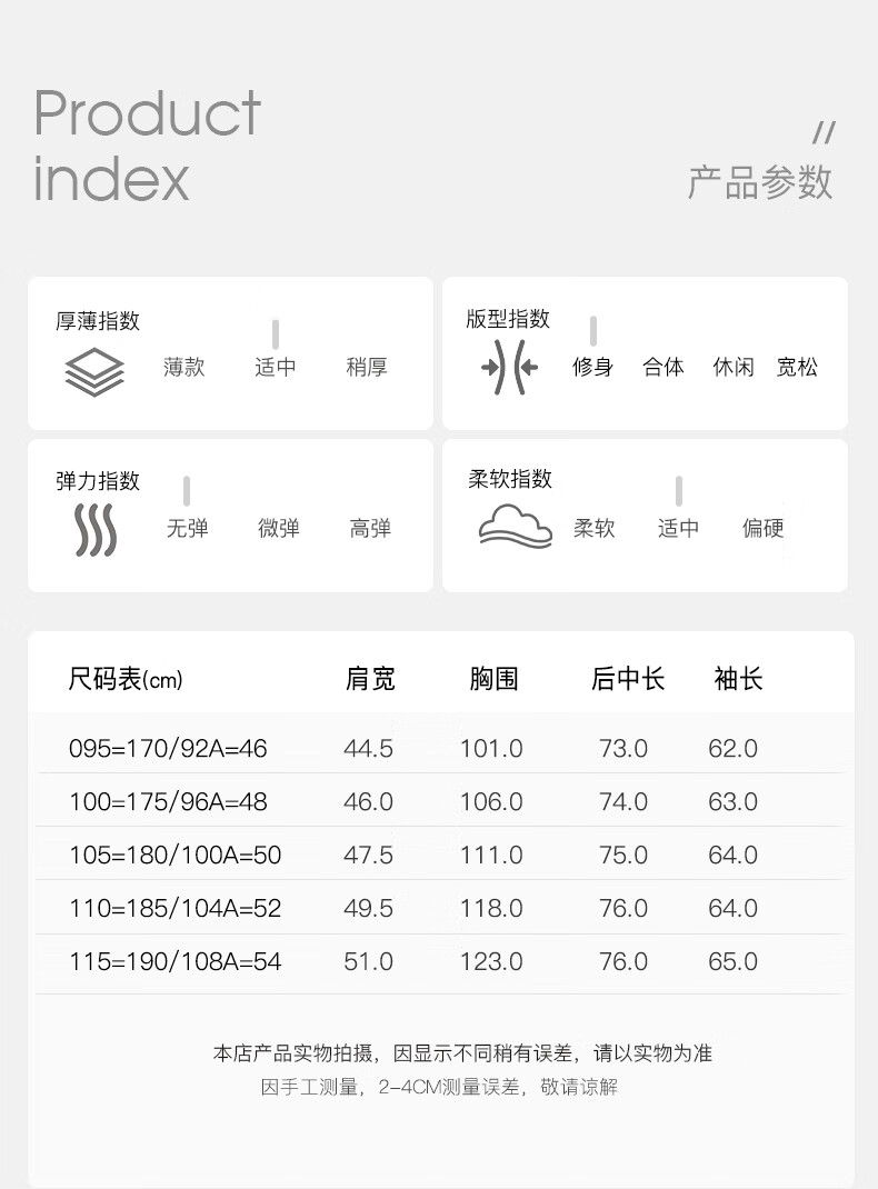 China (cm) 165 / 88-90 170 / 96-98 175 / 108-110 180 / 118-122 185 / 126-130
