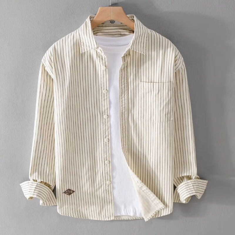 啄木鸟(TUCANO)日系清新条纹长袖衬衫男春秋装上衣衬衫文艺潮流时尚休闲百搭衬衣 杏色 L 120-135斤