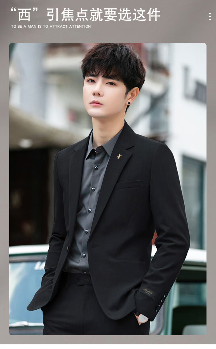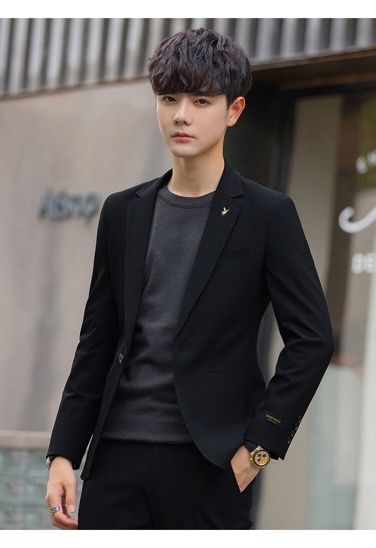 Playboy Suit Men's Casual Suit Formal Groomsman Suit Small Suit Jacket Men Black Single Suit XL 175 Recommended 115-130 Jin Jin equals 0.5 kg
