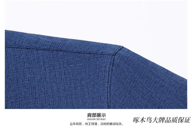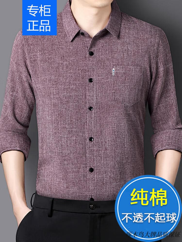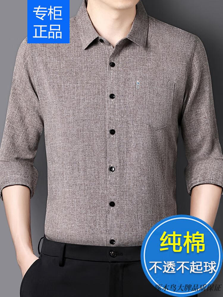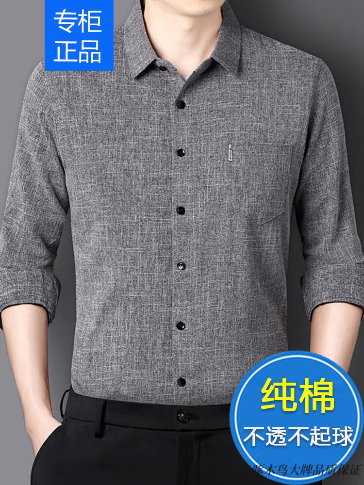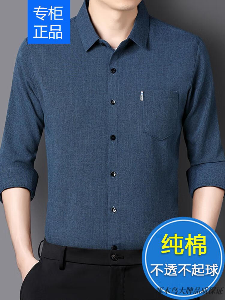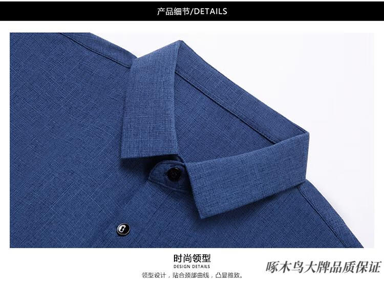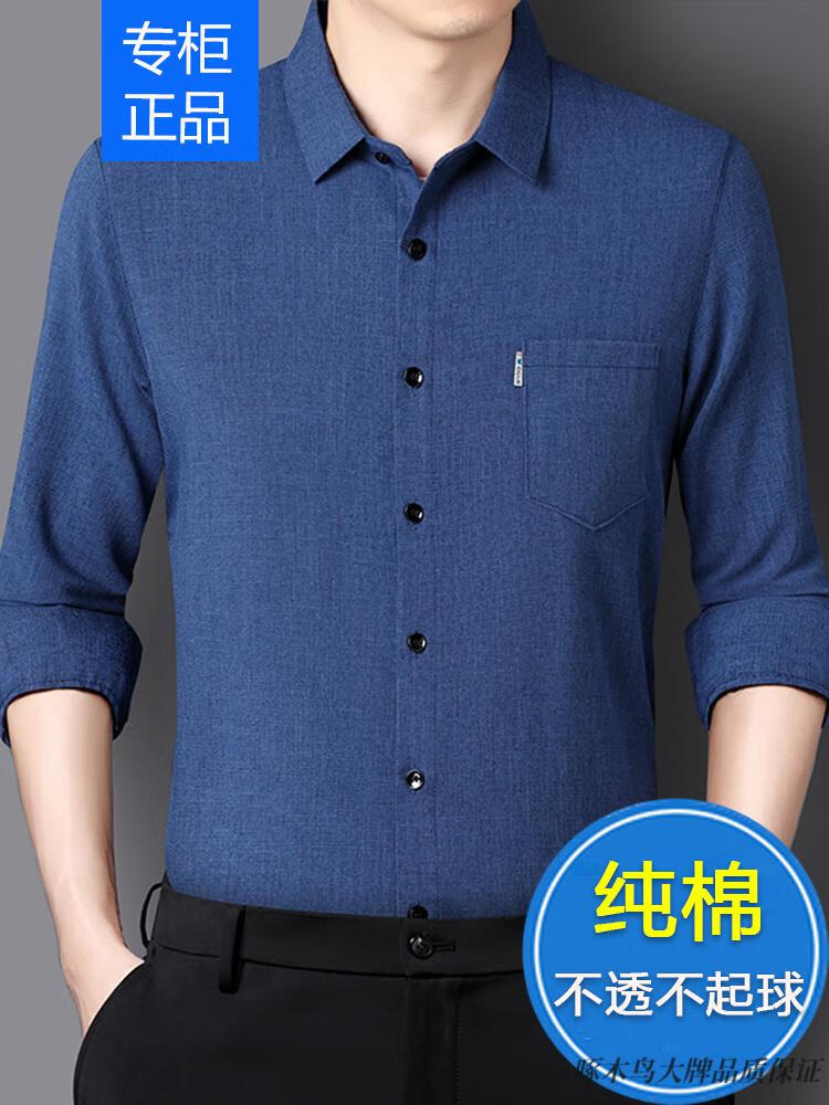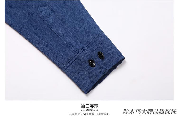 Woodpecker (TUCANO) 100% cotton and linen long-sleeved shirt for men middle-aged and elderly dads 2024 spring and autumn breathable large size non-iron shirt for men dark blue 2XL (140160Jin Jin is equal to 0.5 kg)