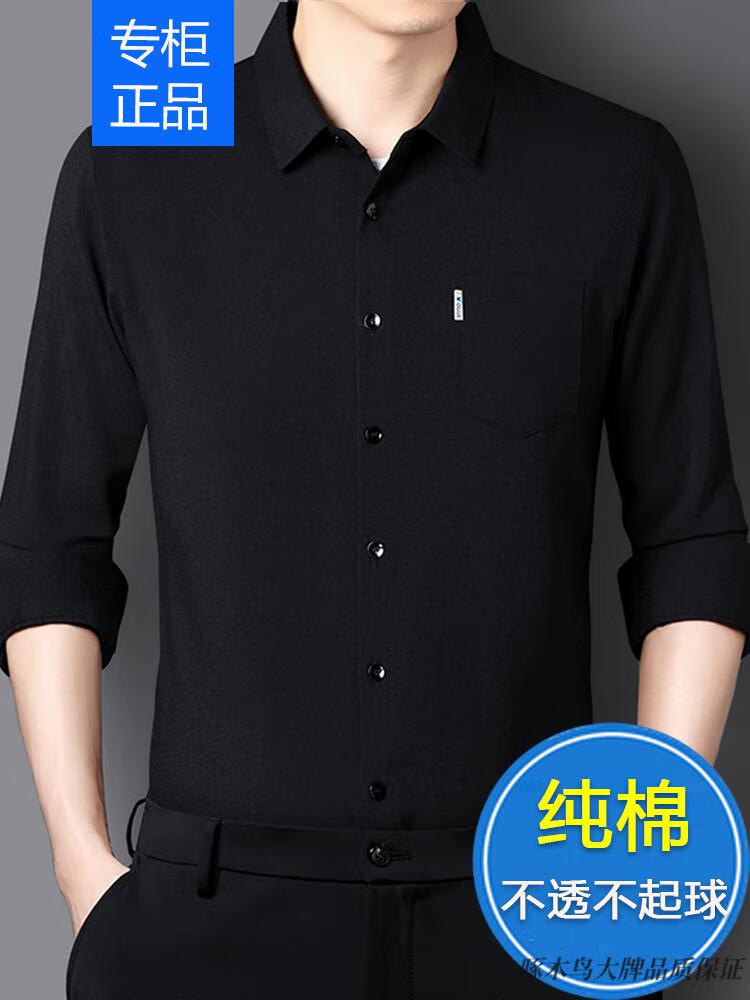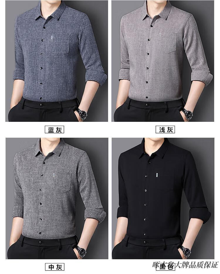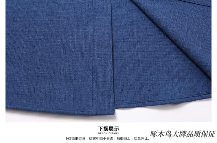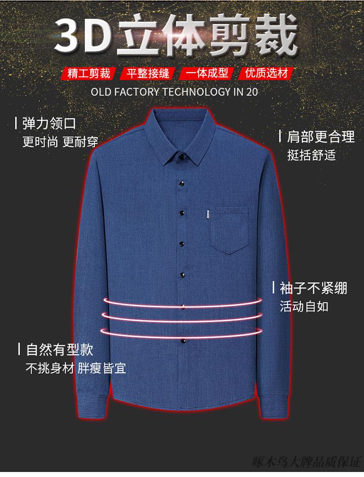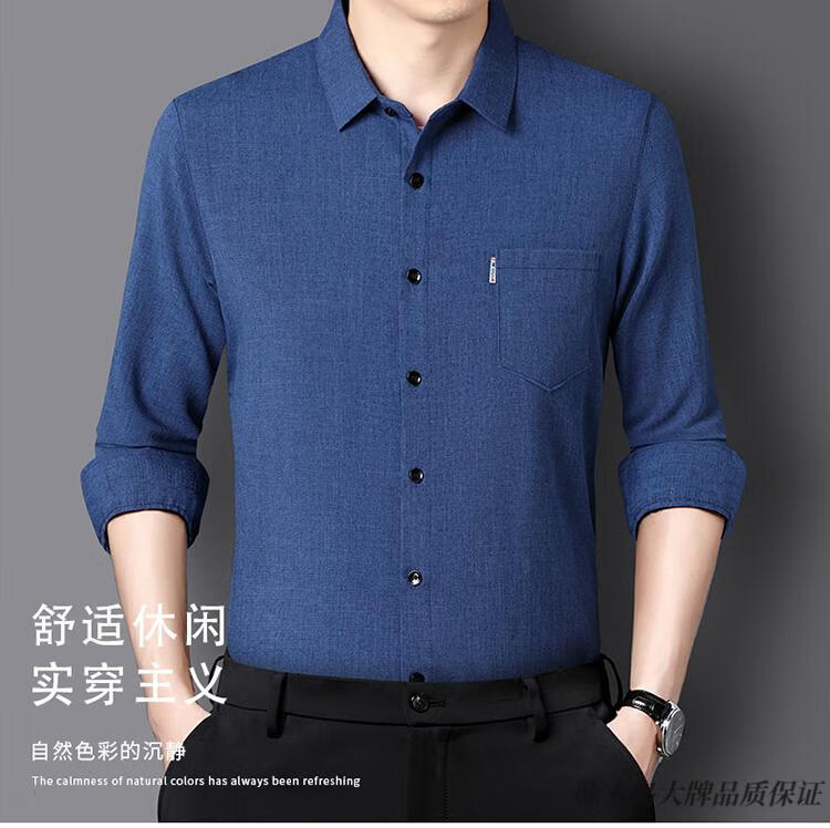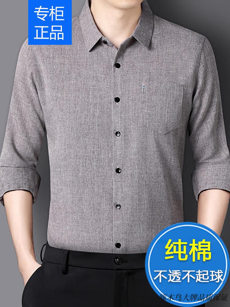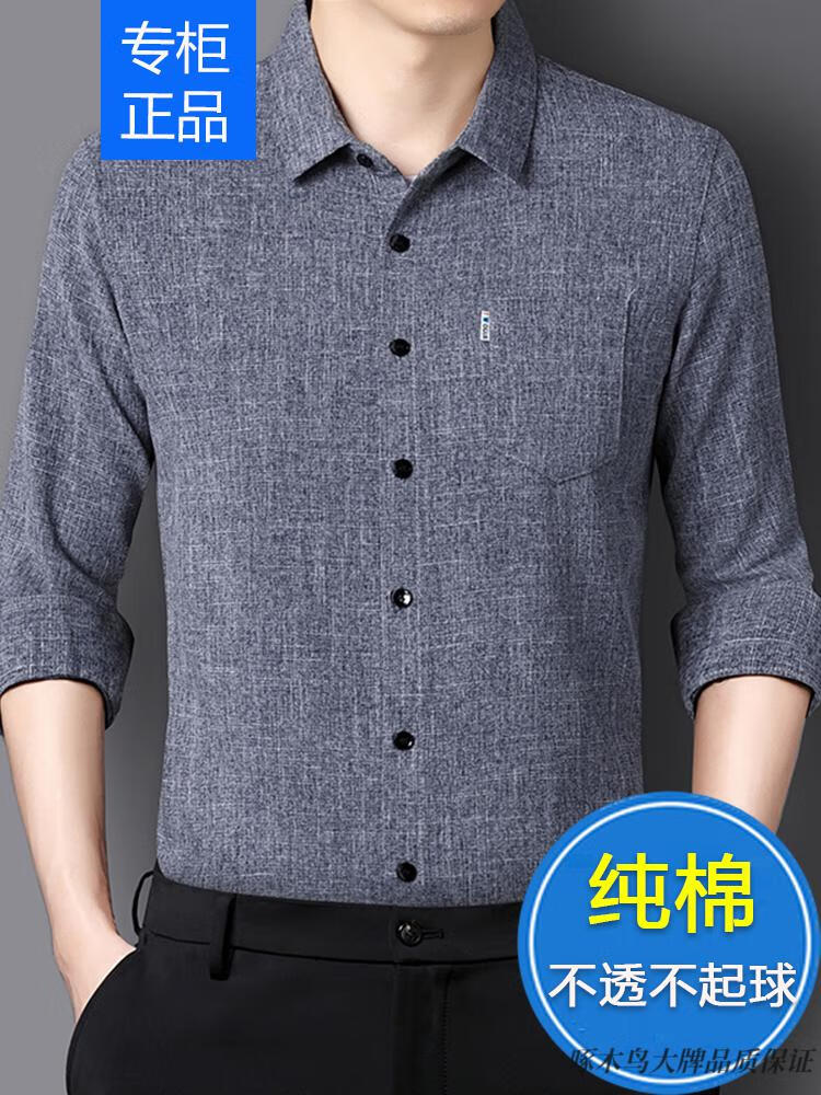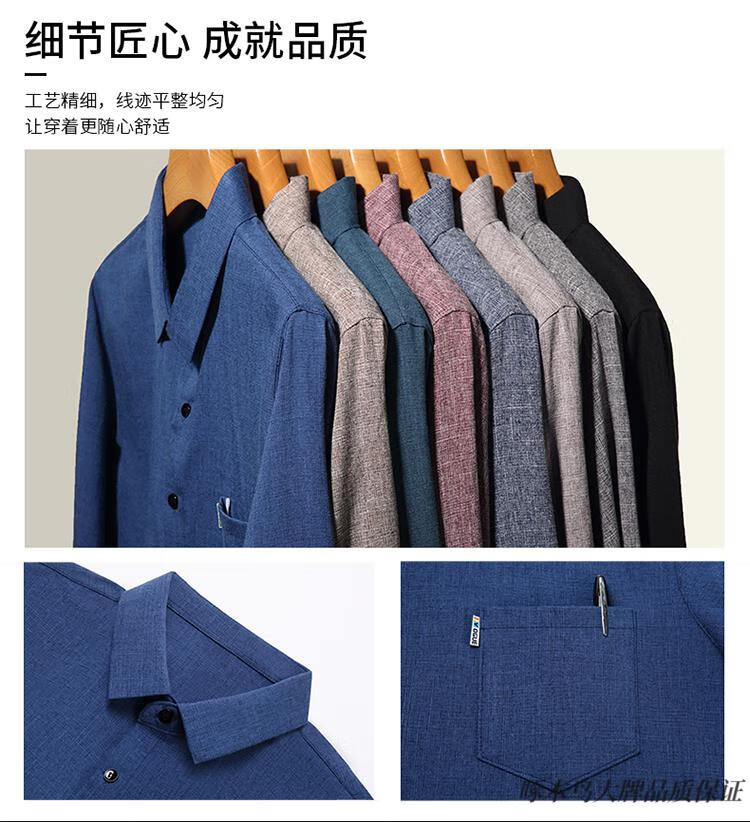 Woodpecker (TUCANO) 100% cotton and linen long-sleeved shirt for men middle-aged and elderly dads 2024 spring and autumn breathable large size non-iron shirt for men dark blue 2XL (140160Jin Jin is equal to 0.5 kg)