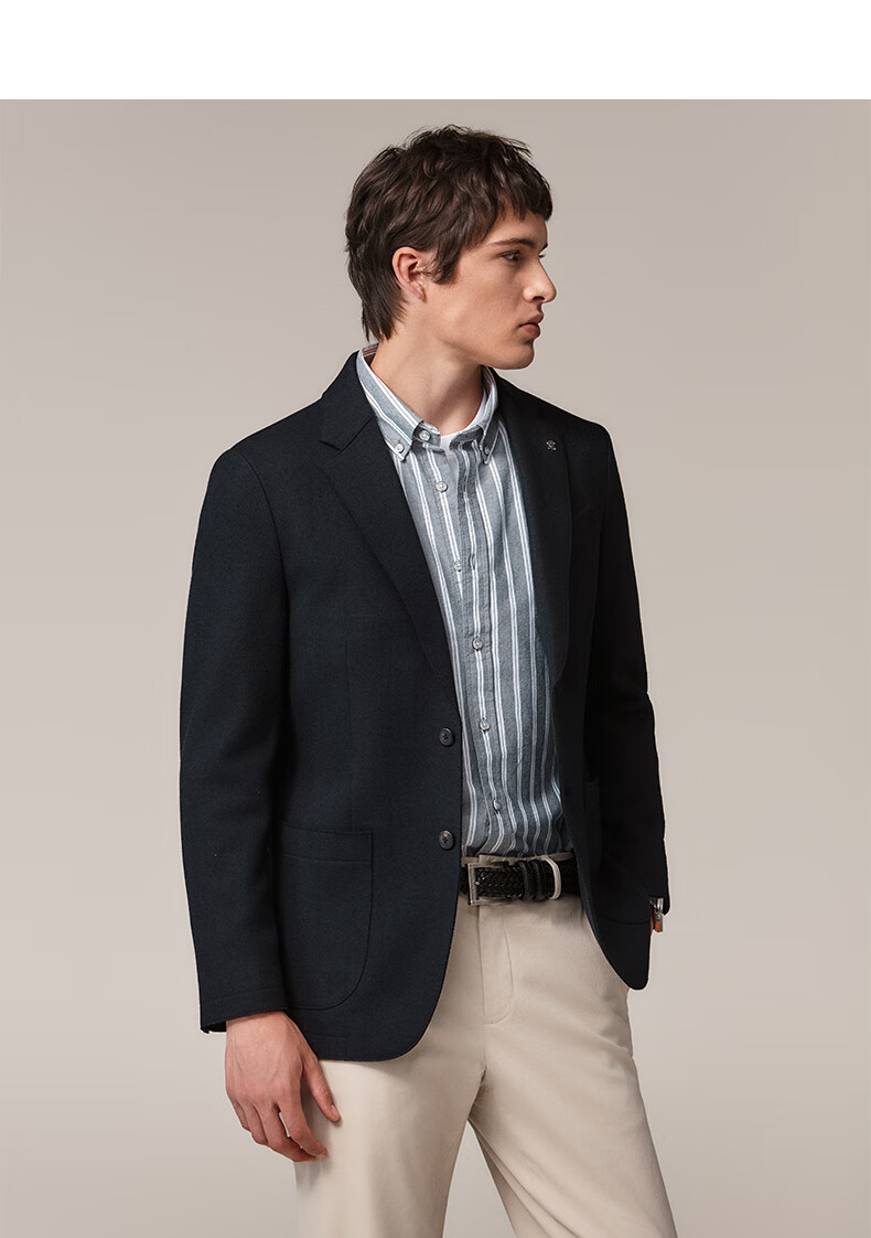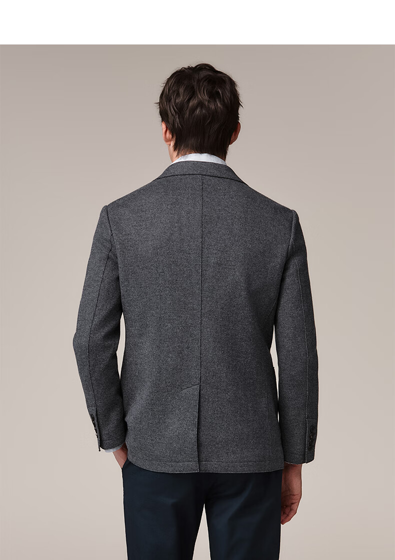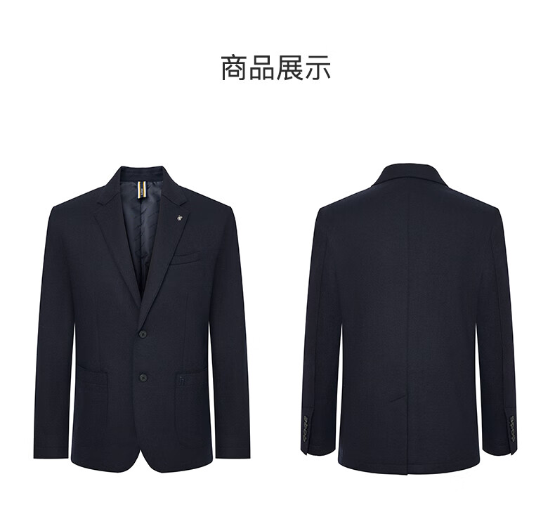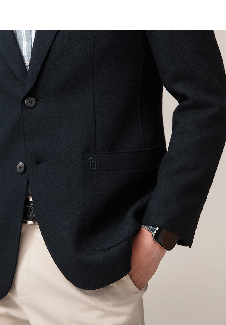 HAZZYS Men's Autumn and Winter Suit Business Commuting Suit Raw Edge Wool Single Suit Men's ASUZJ0BDJ11 Navy Blue NV L (175/96A 48)
