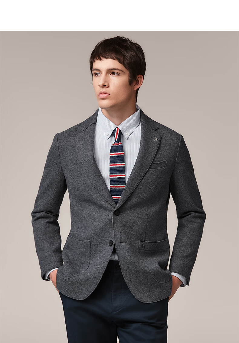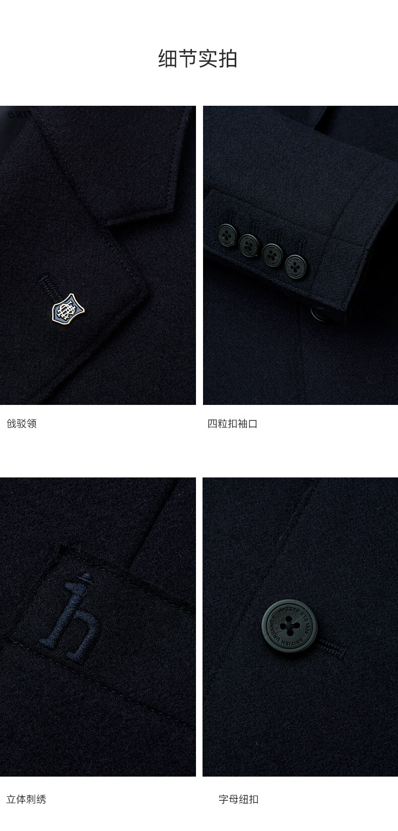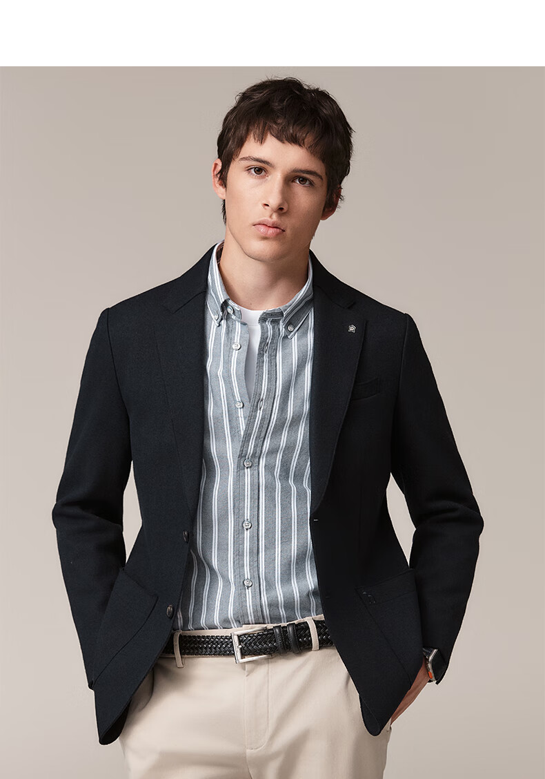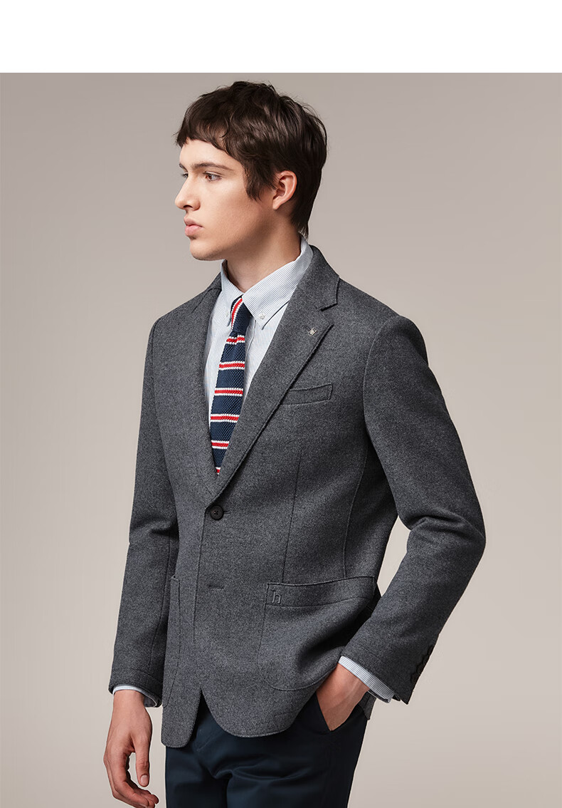 HAZZYS Men's Autumn and Winter Suit Business Commuting Suit Raw Edge Wool Single Suit Men's ASUZJ0BDJ11 Navy Blue NV L (175/96A 48)