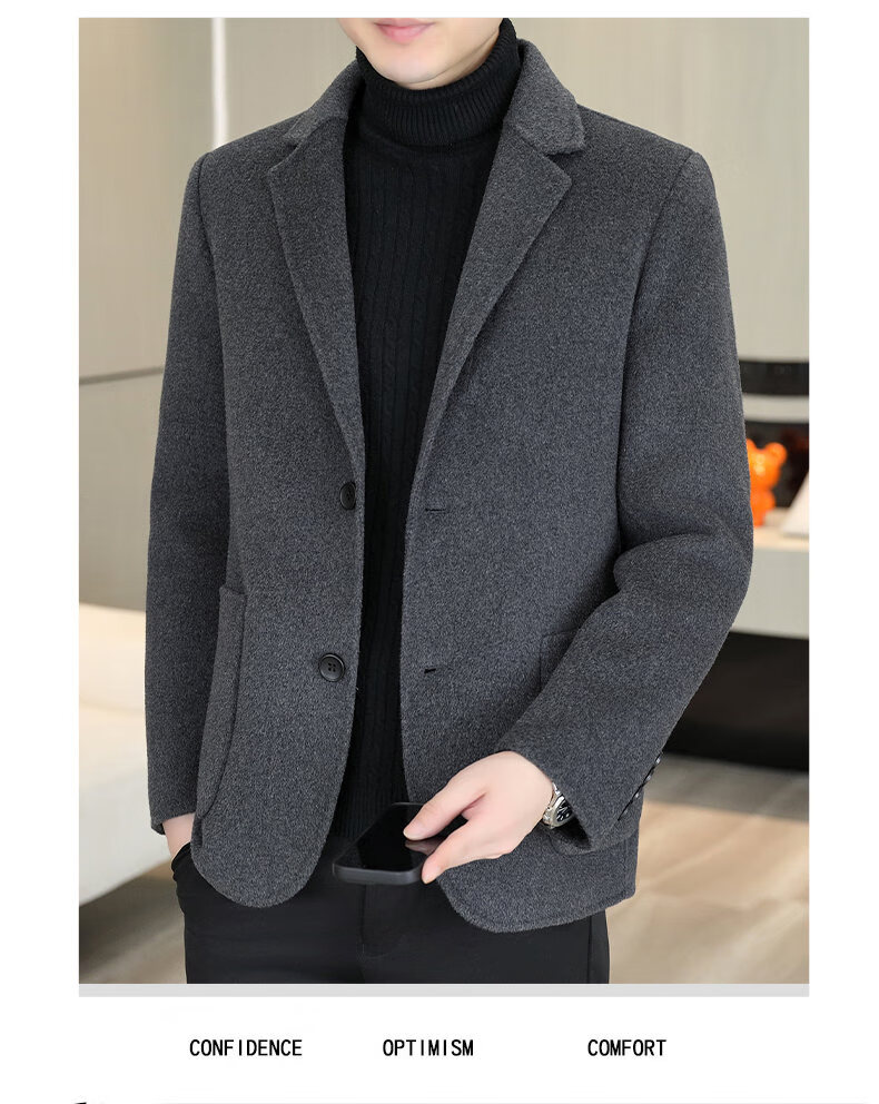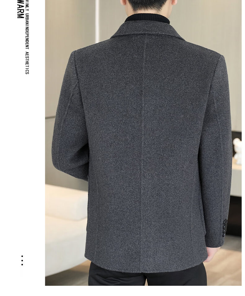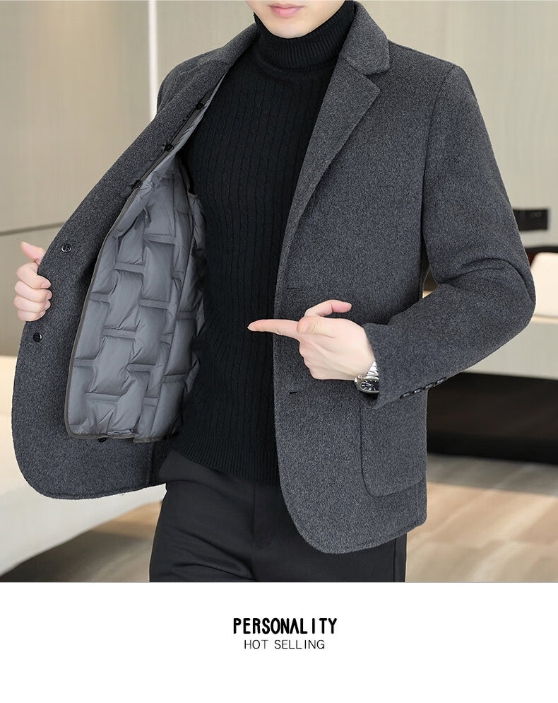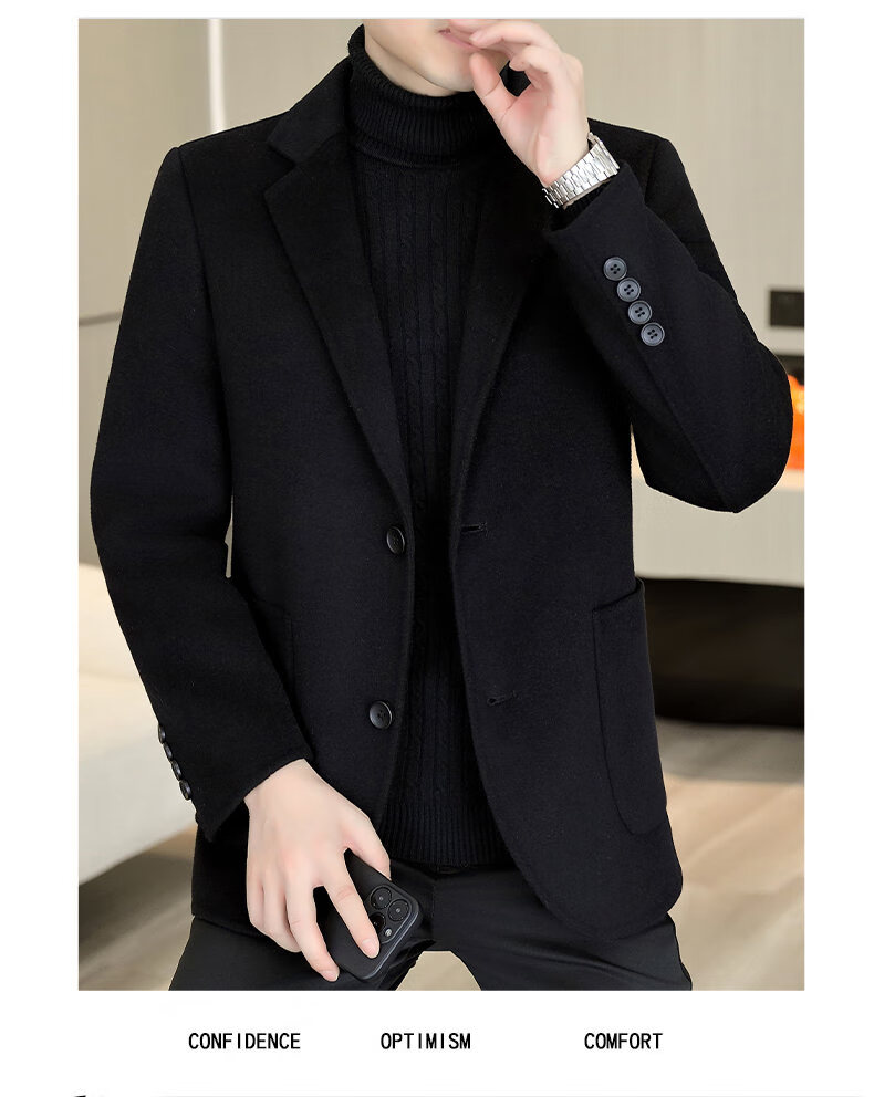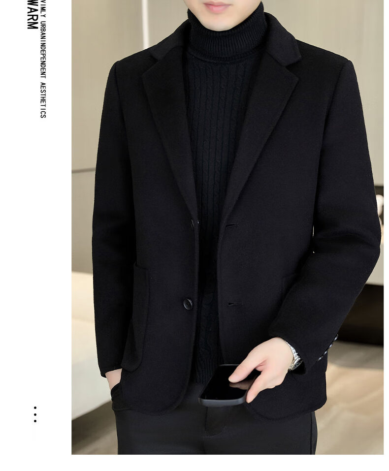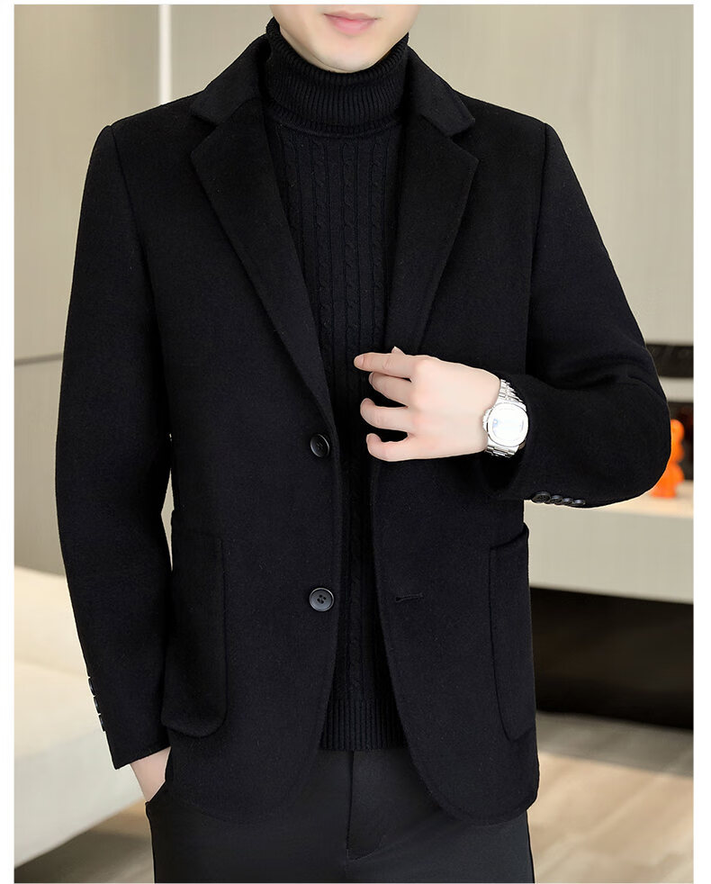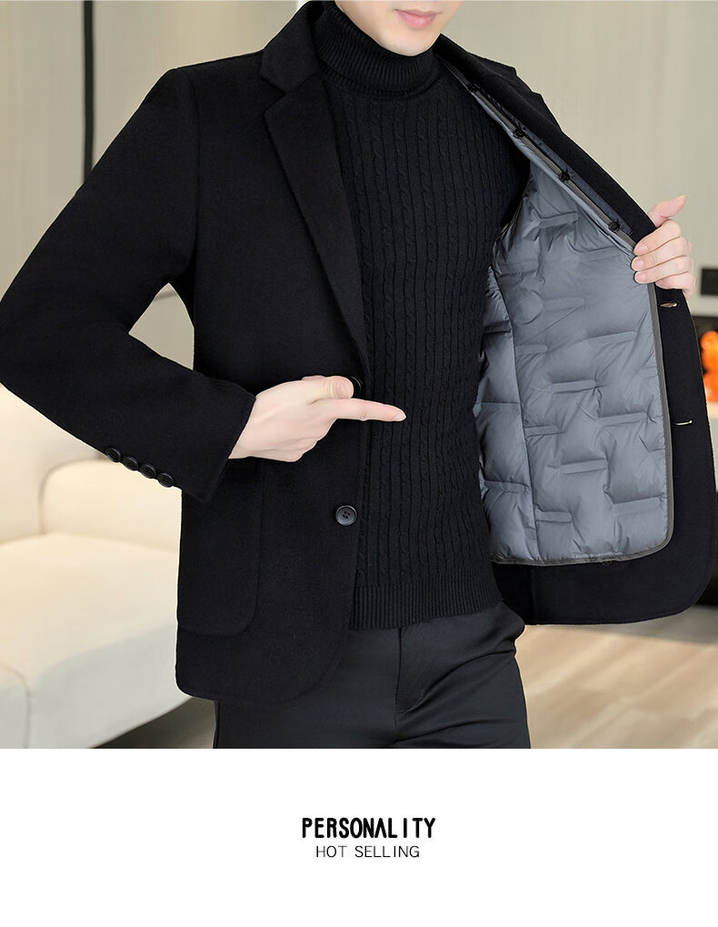 Двусторонний шерстяной костюм Playboy, мужской плотный осенне-зимний деловой повседневный теплый костюм на подкладке, шерстяная куртка, короткий стиль-SJ2312, черный, L 175