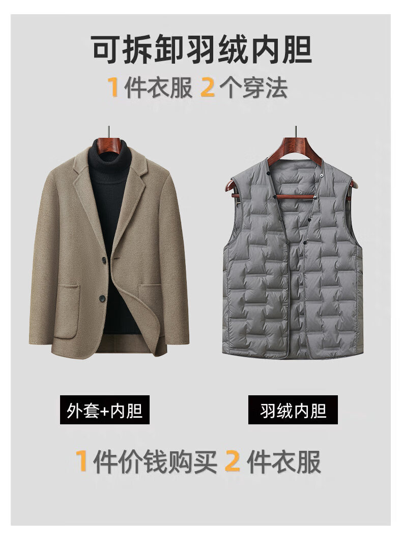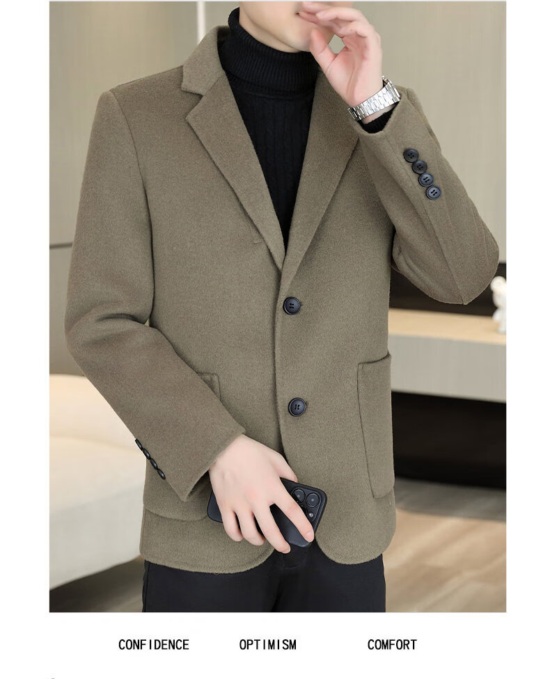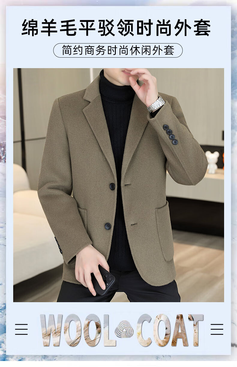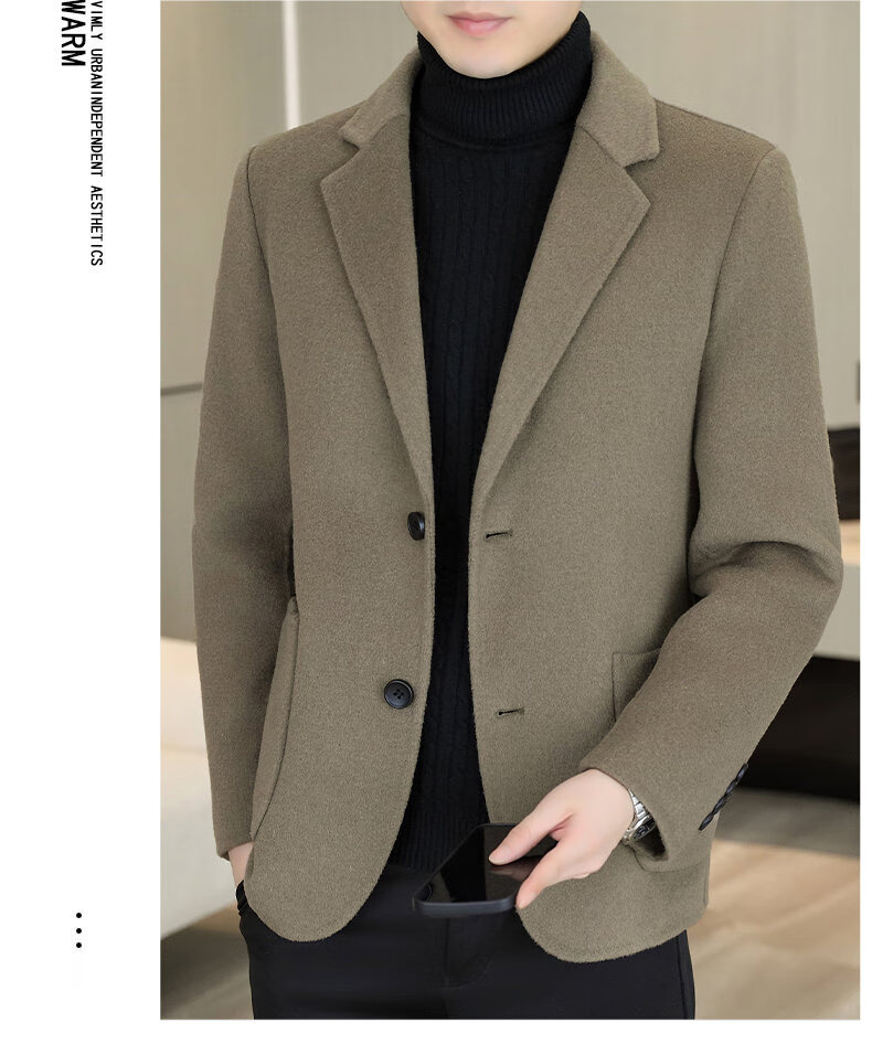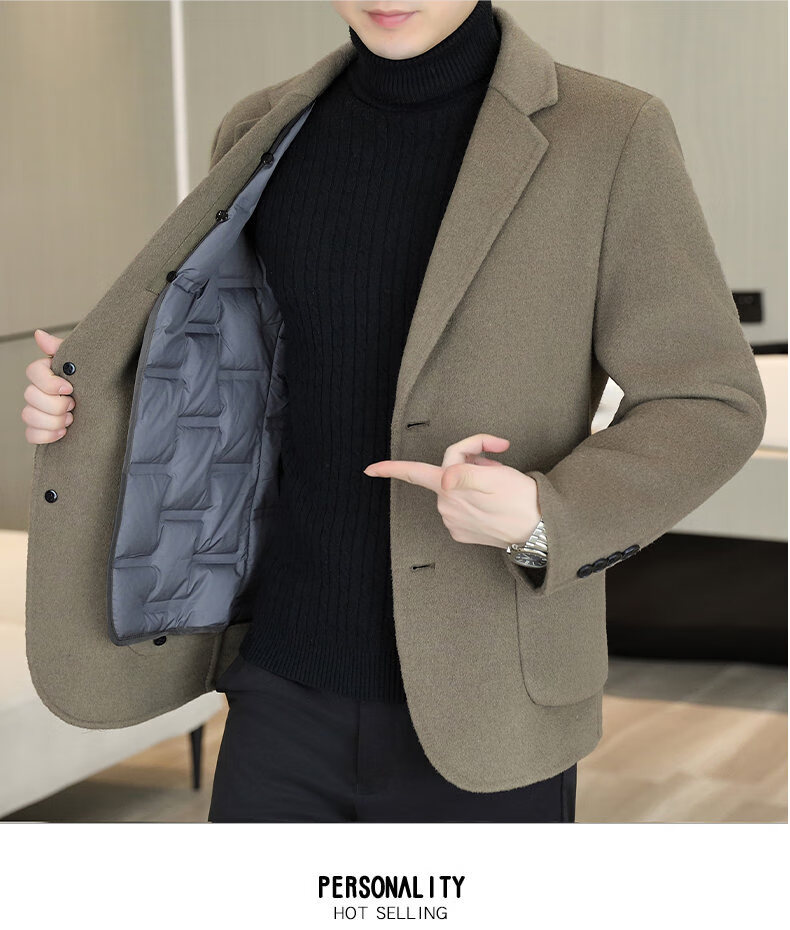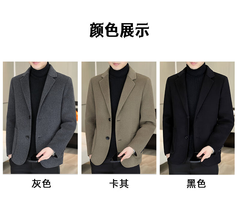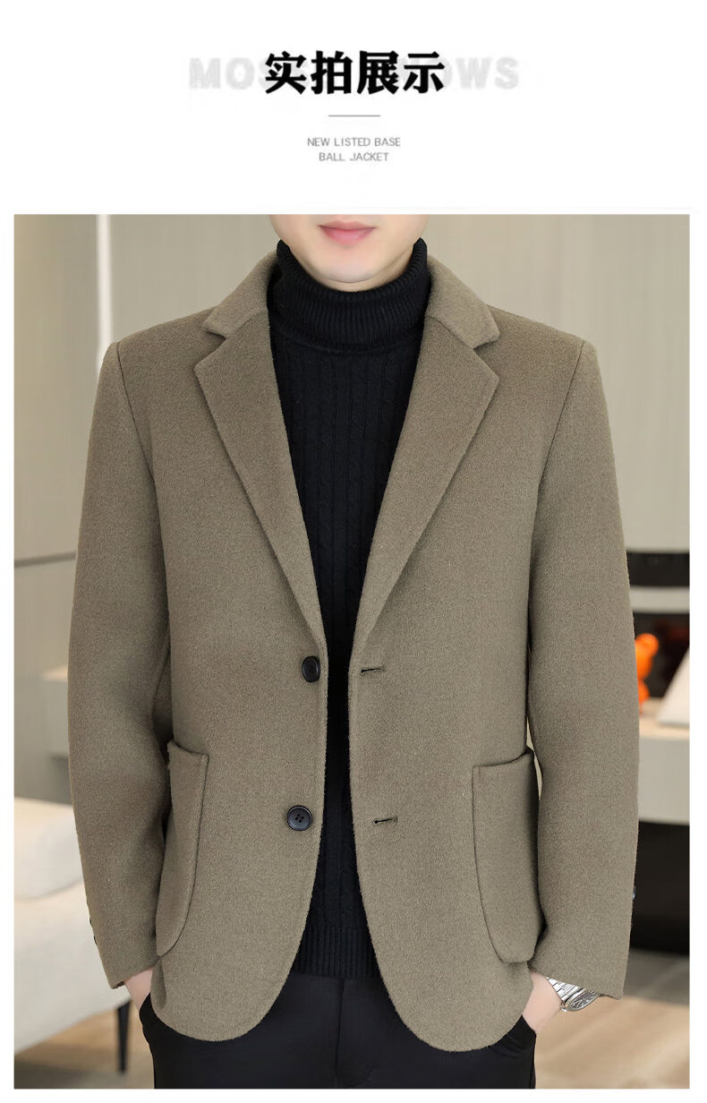 Двусторонний шерстяной костюм Playboy, мужской плотный осенне-зимний деловой повседневный теплый костюм на подкладке, шерстяная куртка, короткий стиль-SJ2312, черный, L 175