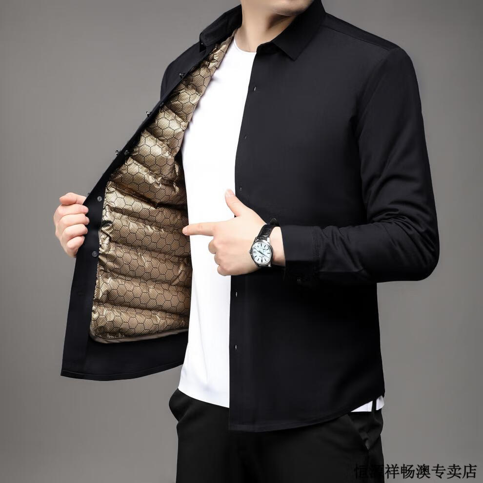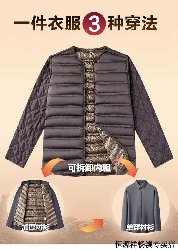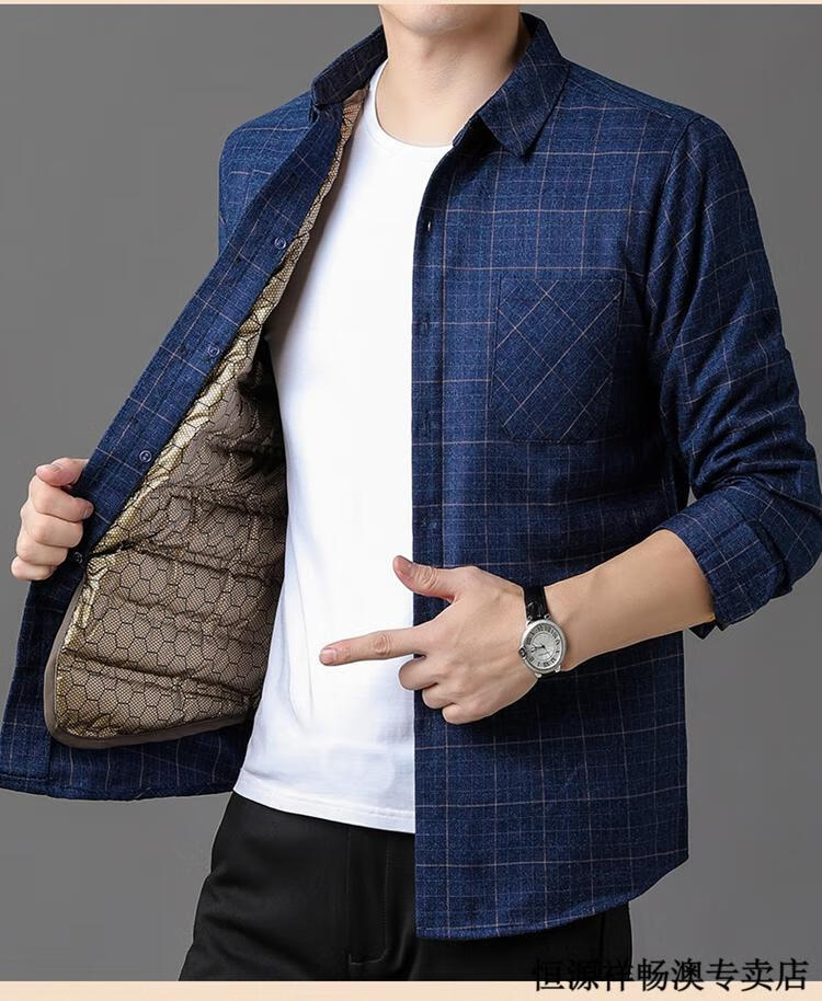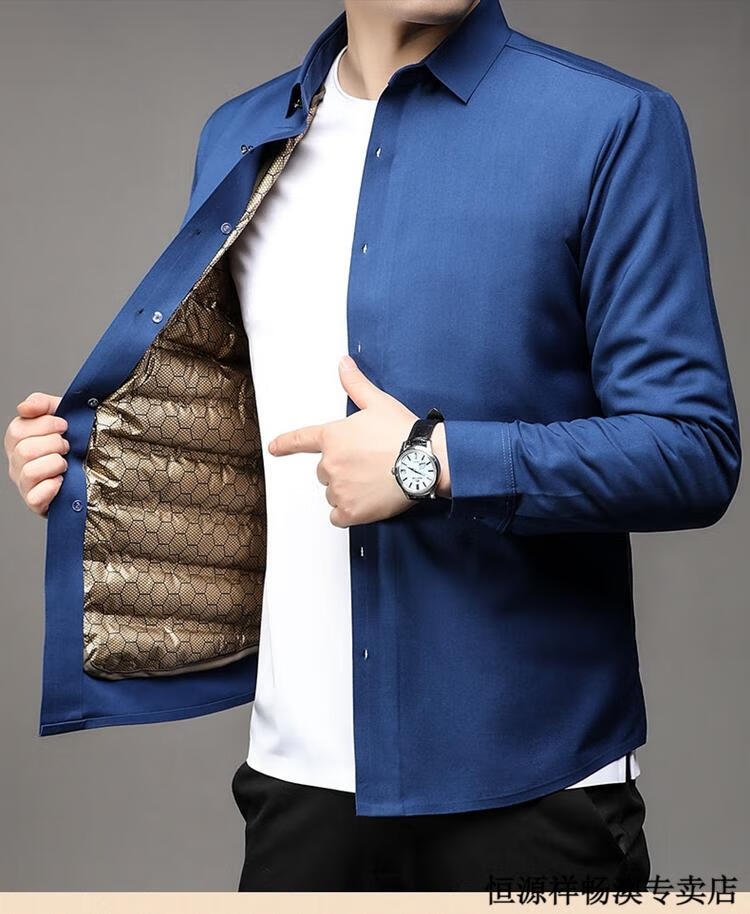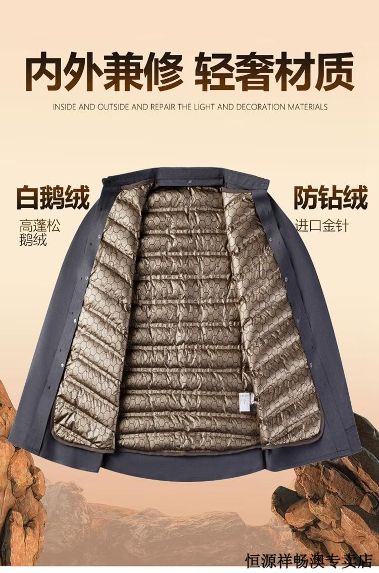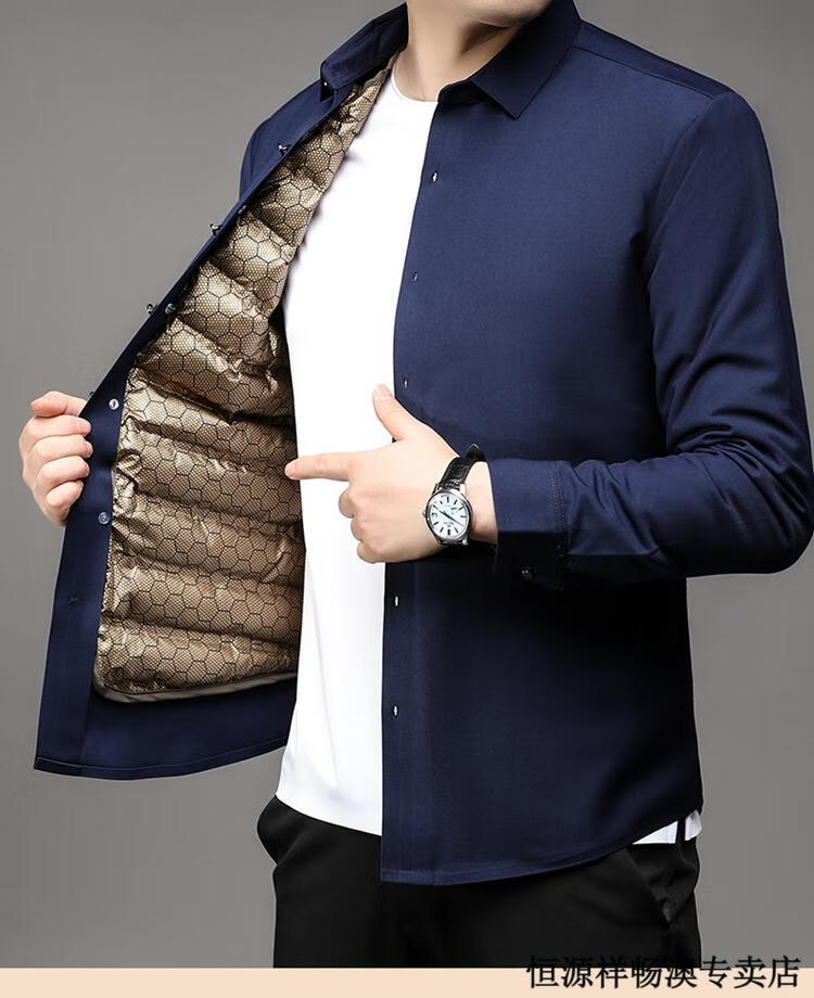 Hengyuanxiang Winter Thickened Removable Liner Warm Down Shirt Men's Jacket Goose Down Shirt Men's Dad's Winter Clothes Navy Goose Down 1789 4XL 190/44 Recommended 180-210 Jin Jin equals 0.5 kg