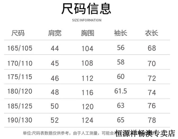 China (cm) 165 / 88-90 170 / 96-98 175 / 108-110 180 / 118-122 185 / 126-130