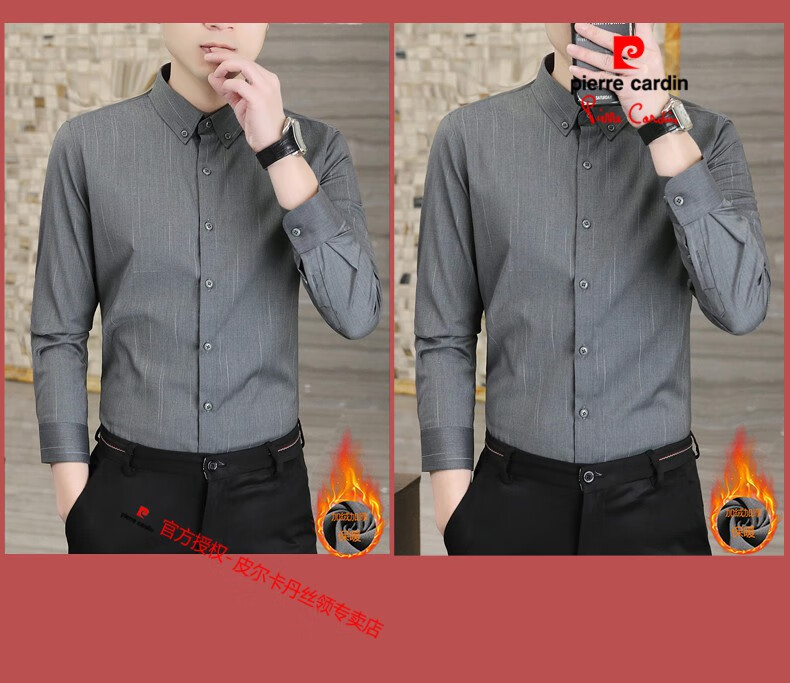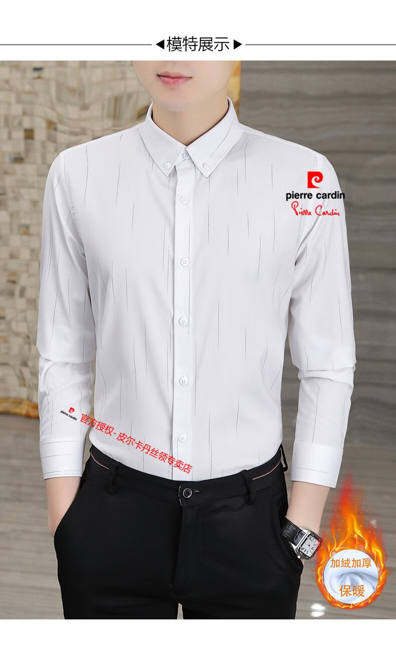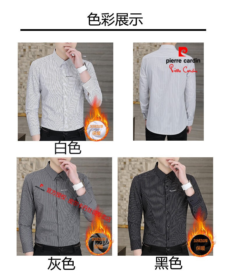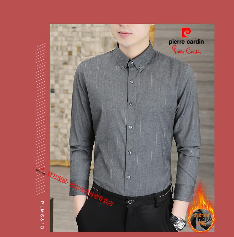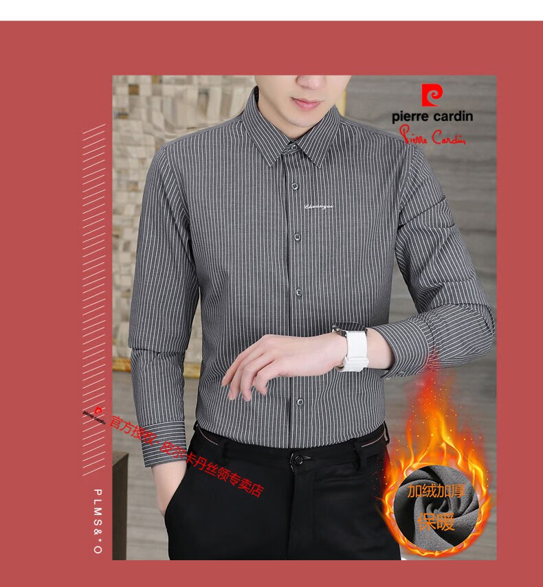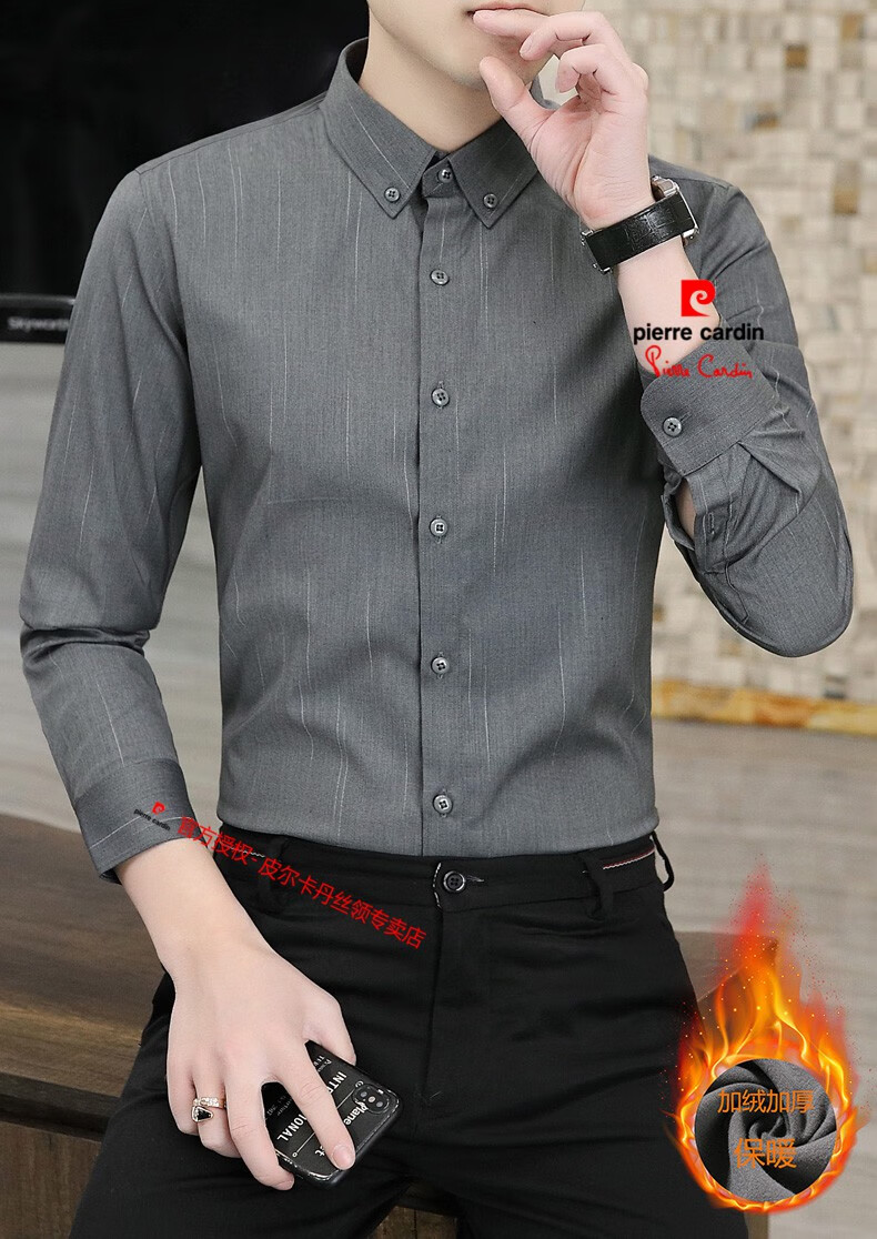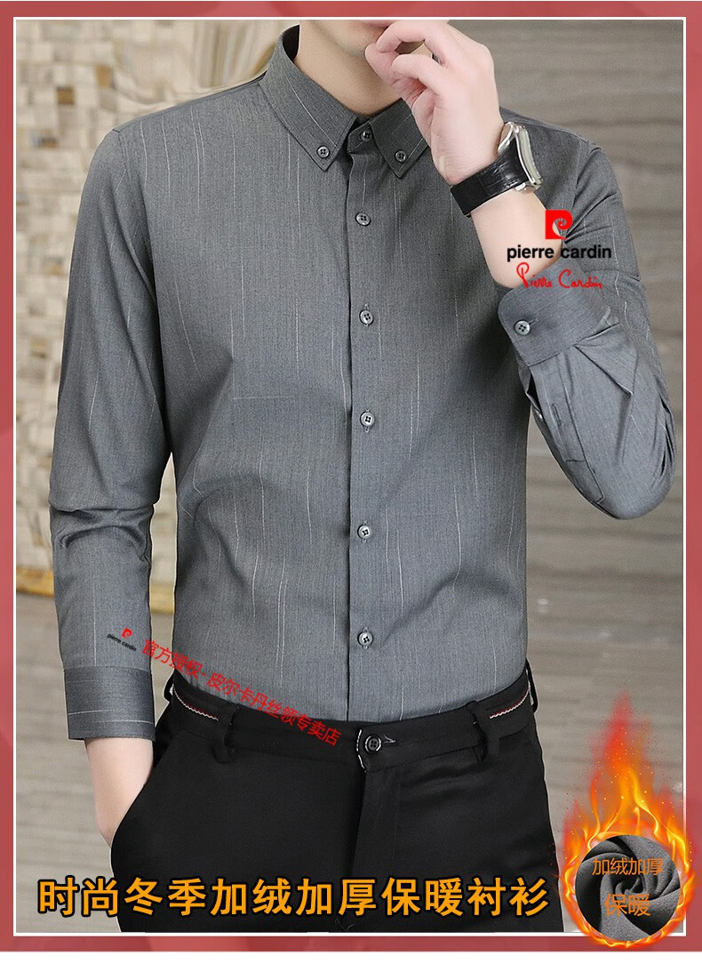 皮尔卡丹(pierre cardin)冬季一体绒衬衫男士保暖长袖商务弹力抗皱条纹加绒加厚衬衣 88562灰色 3XL 适合160-175斤