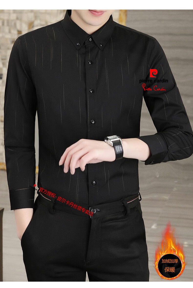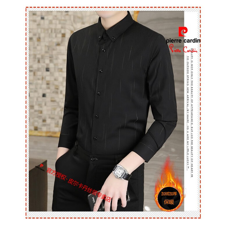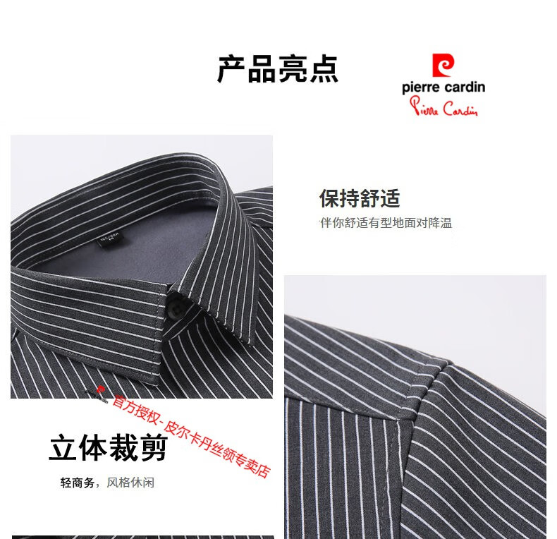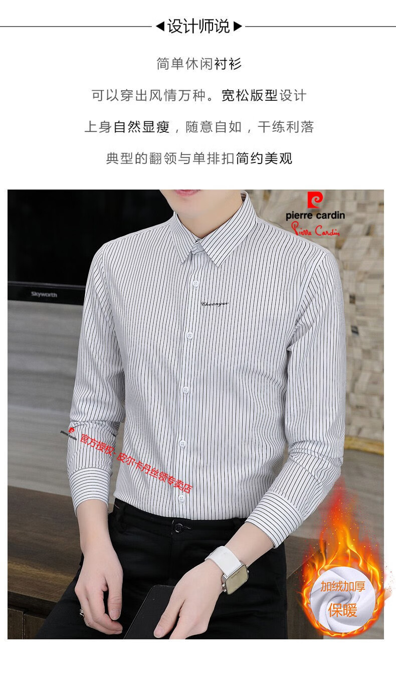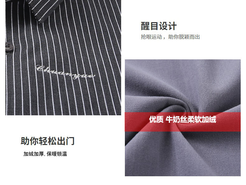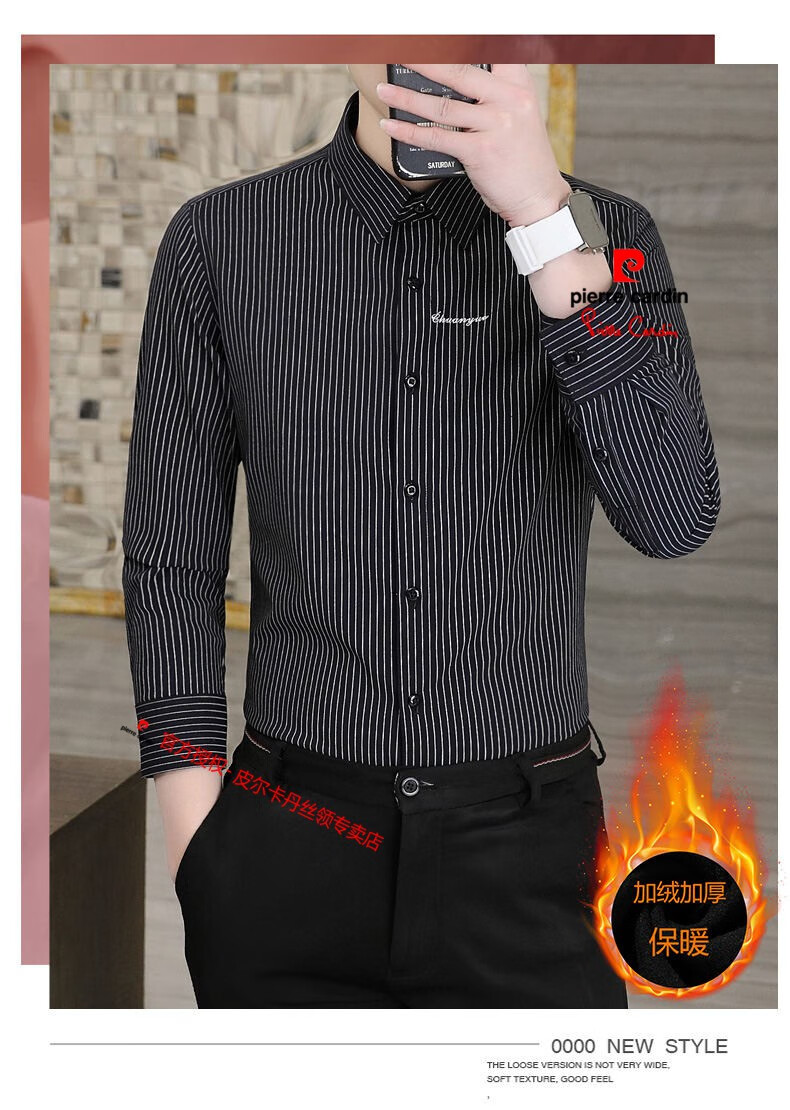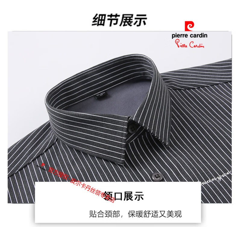 皮尔卡丹(pierre cardin)冬季一体绒衬衫男士保暖长袖商务弹力抗皱条纹加绒加厚衬衣 88562灰色 3XL 适合160-175斤