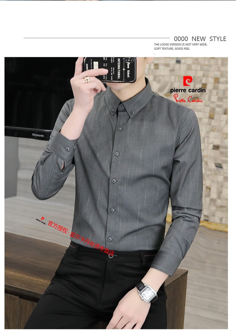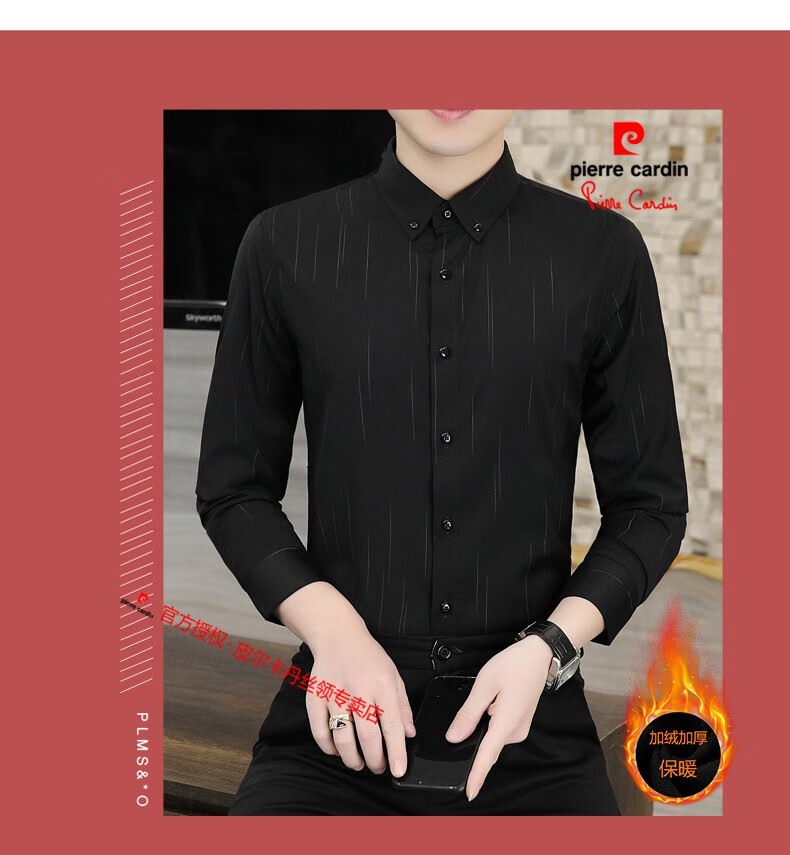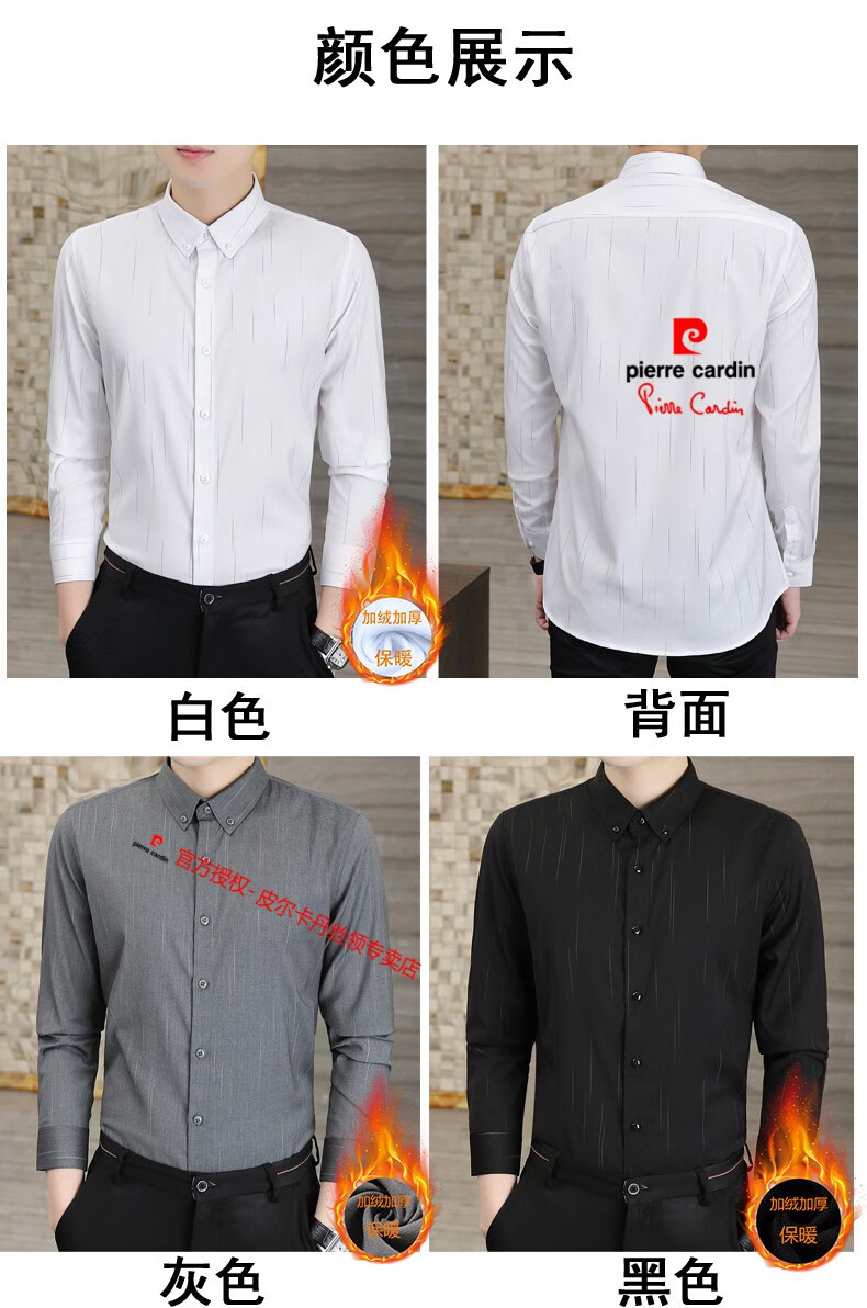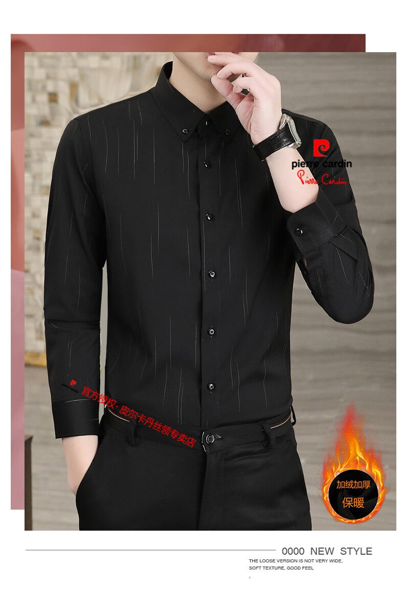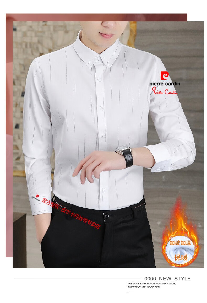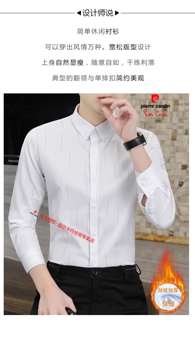皮尔卡丹(pierre cardin)冬季一体绒衬衫男士保暖长袖商务弹力抗皱条纹加绒加厚衬衣 88562灰色 3XL 适合160-175斤