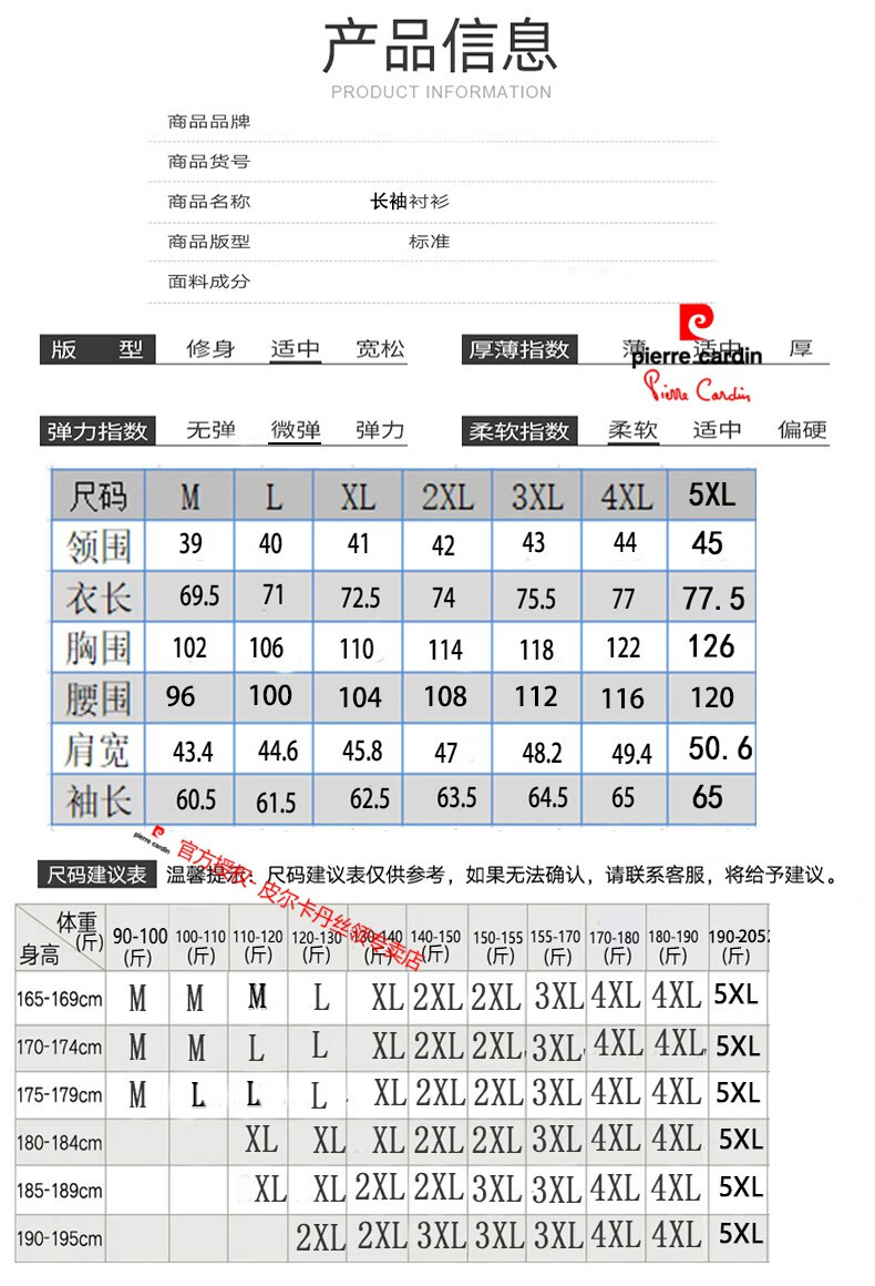 China (cm) 165 / 88-90 170 / 96-98 175 / 108-110 180 / 118-122 185 / 126-130