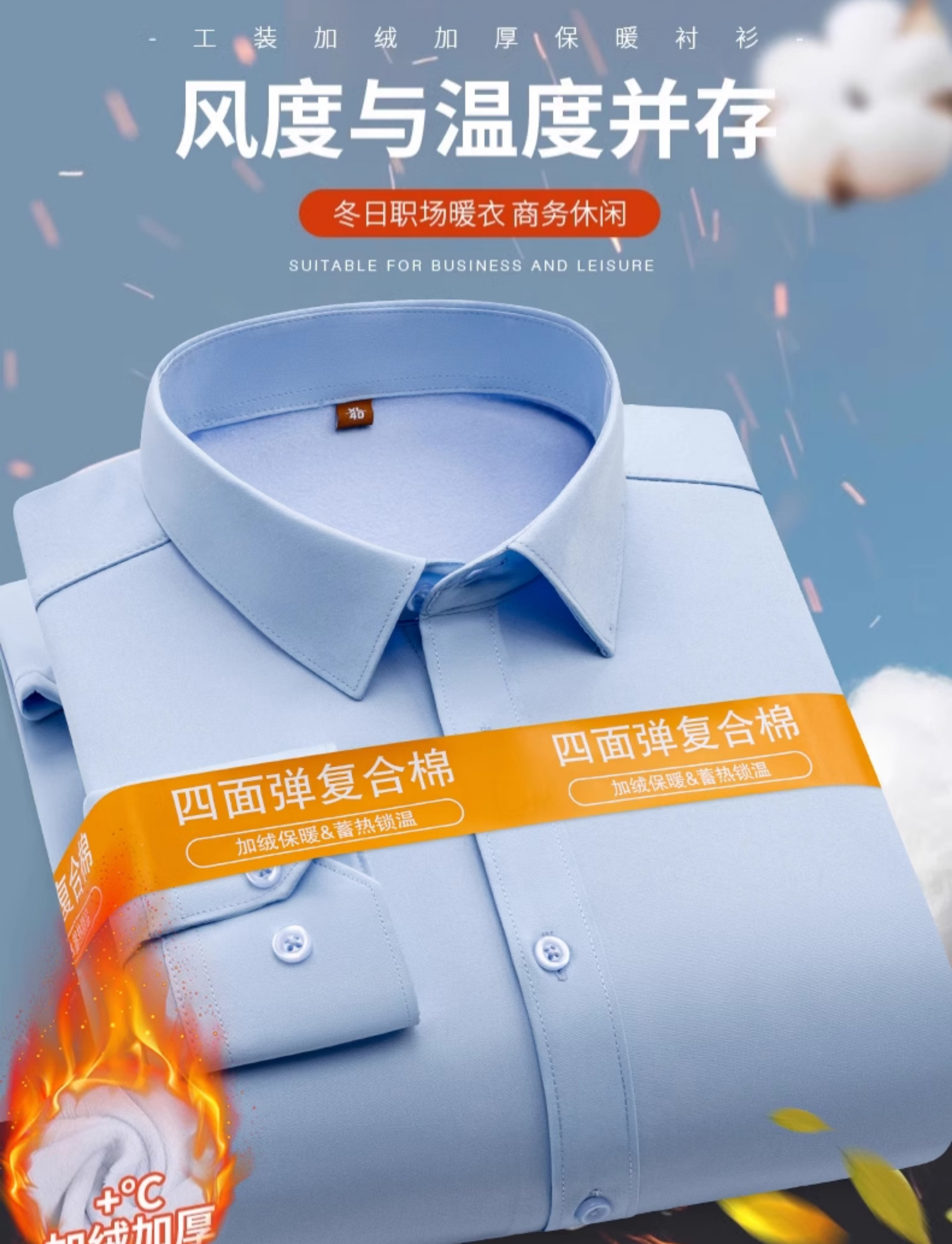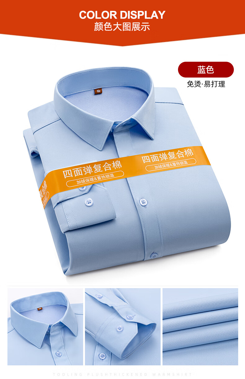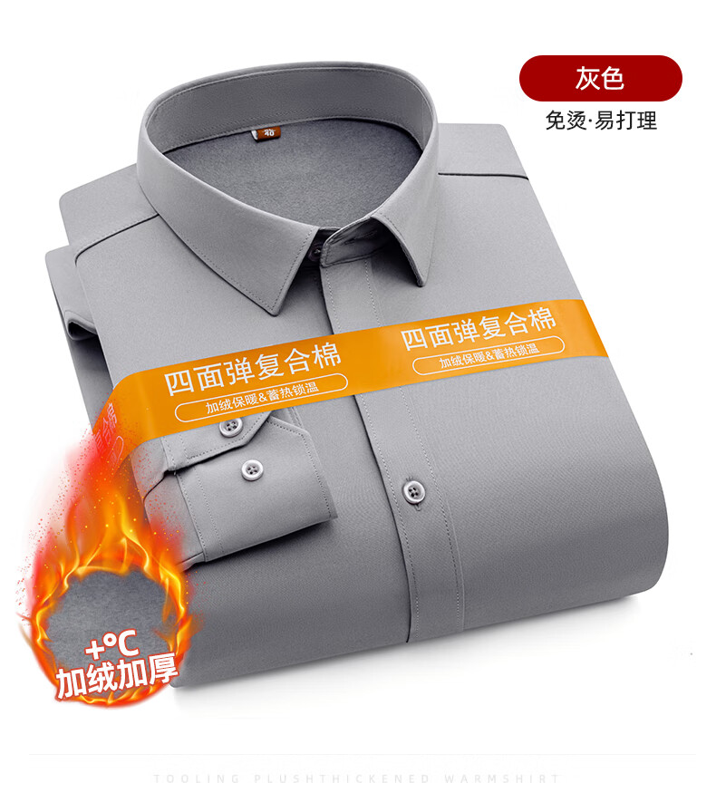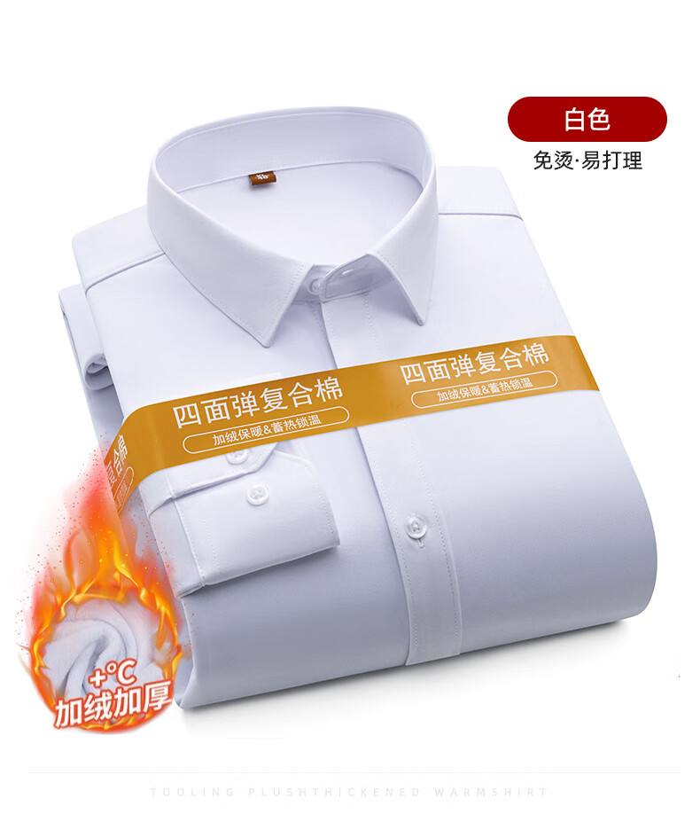 Белая рубашка без утюга против морщин, мужская бархатная утолщенная деловая рабочая одежда с длинными рукавами, повседневная деловая одежда без глажки, весенне-осенний обычный стиль, белый 42 160Jin Jin равен 0,5 кг -170Jin Jin равен 0,5 кг