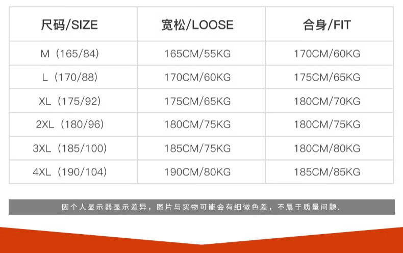 China (cm) 165 / 88-90 170 / 96-98 175 / 108-110 180 / 118-122 185 / 126-130