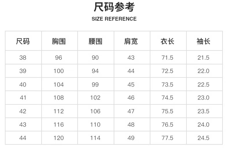 Size (cm) 42 44 46 48 50