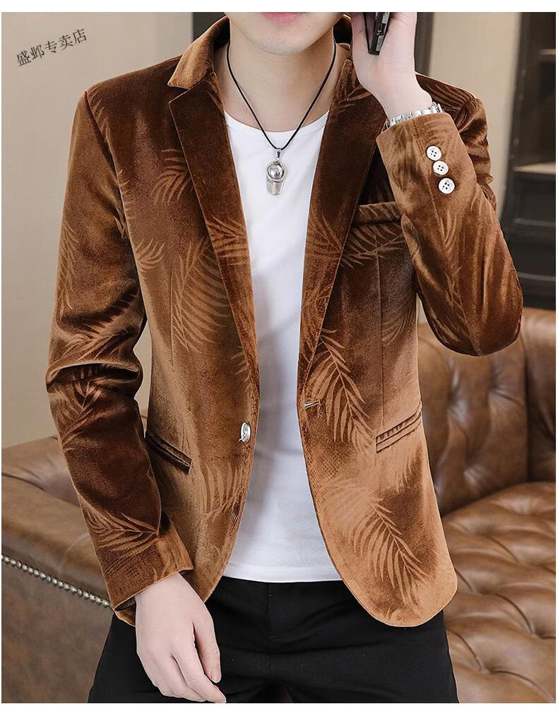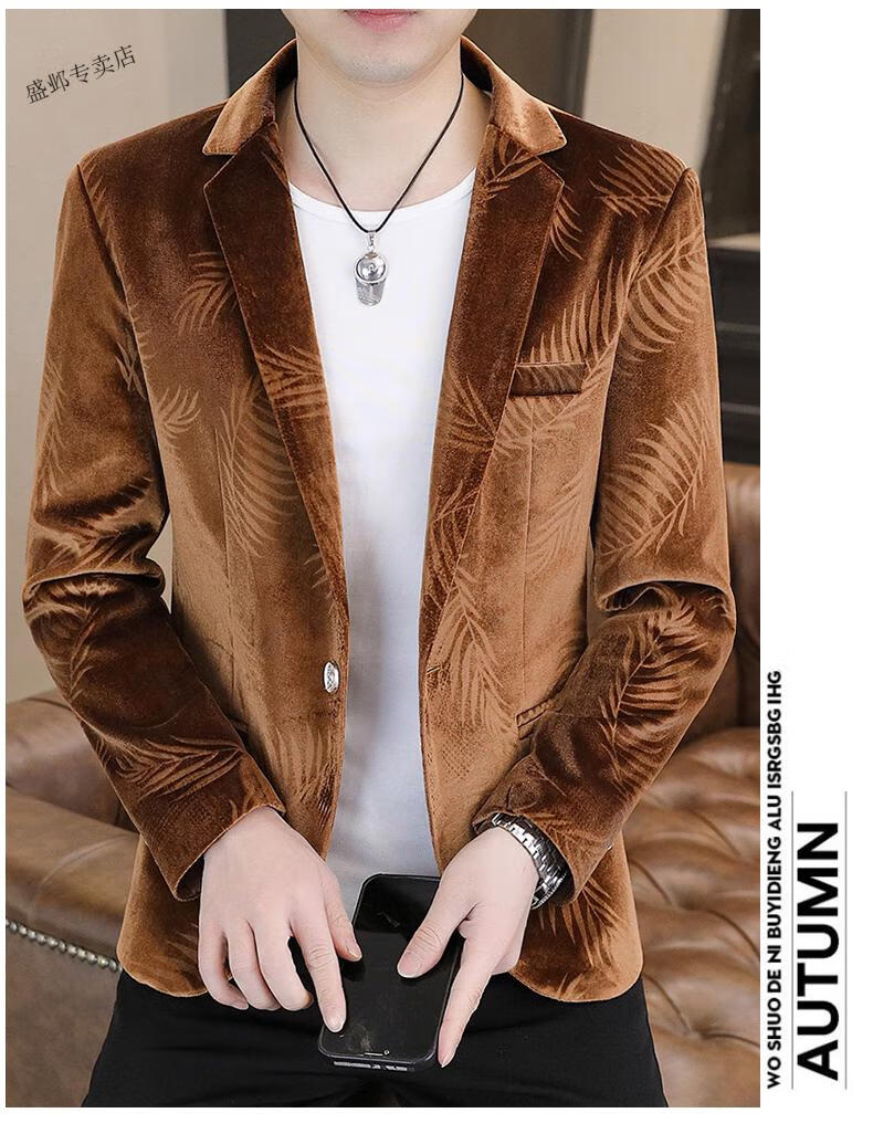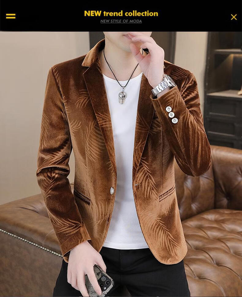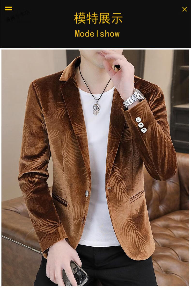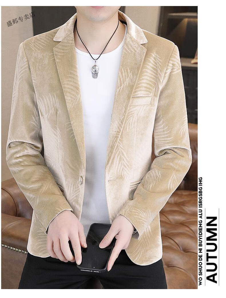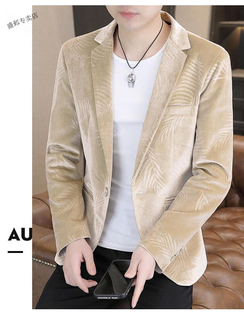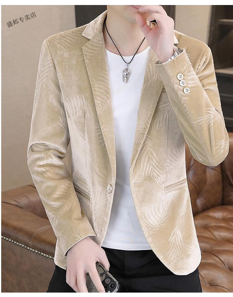 Woodpecker Spring and Autumn New Gold Velvet Suit Men's Casual Korean Slim Casual Uniform Youth Personalized Small Suit Jacket Apricot 3XL 150-165Jin Jin is equal to 0.5 kg