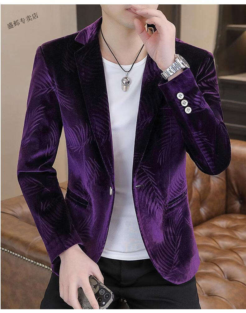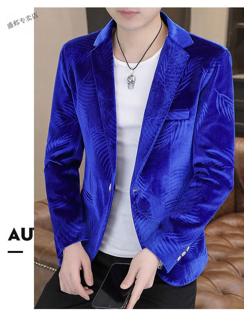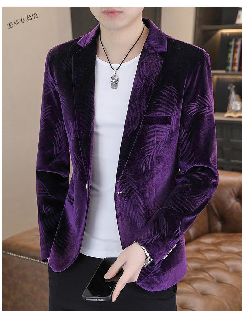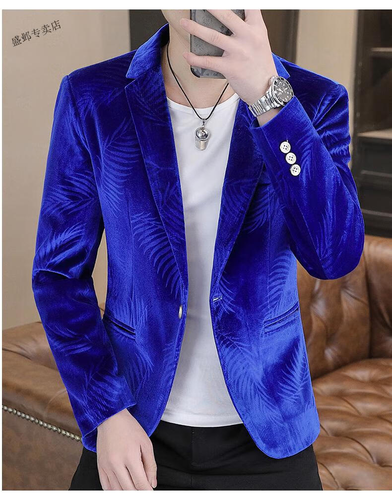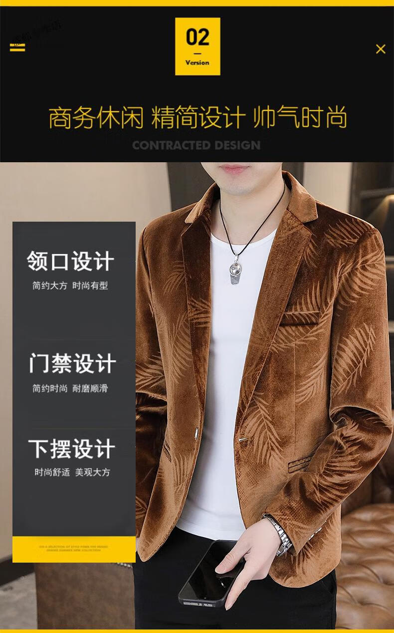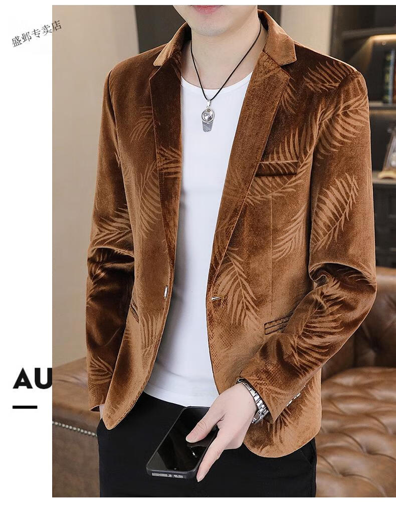 Woodpecker Spring and Autumn New Gold Velvet Suit Men's Casual Korean Slim Casual Uniform Youth Personalized Small Suit Jacket Apricot 3XL 150-165Jin Jin is equal to 0.5 kg