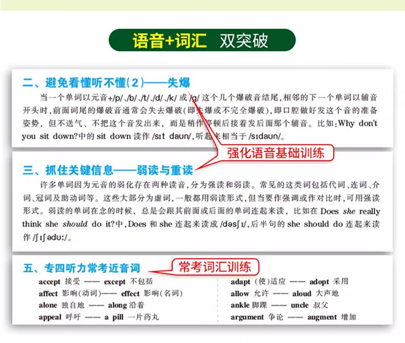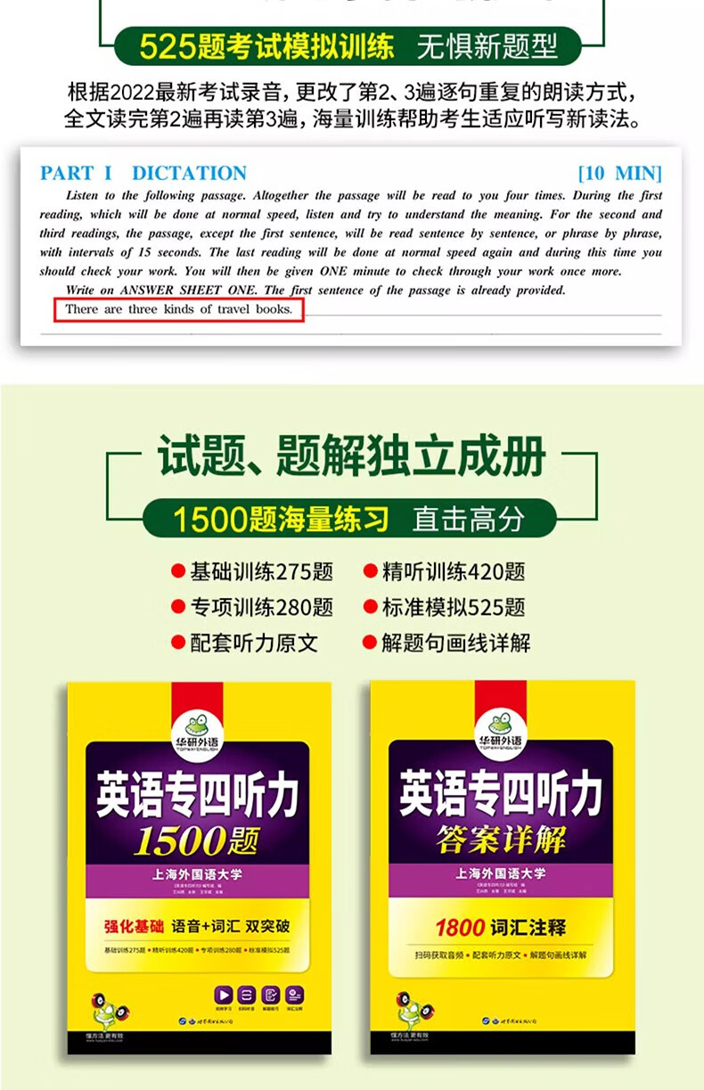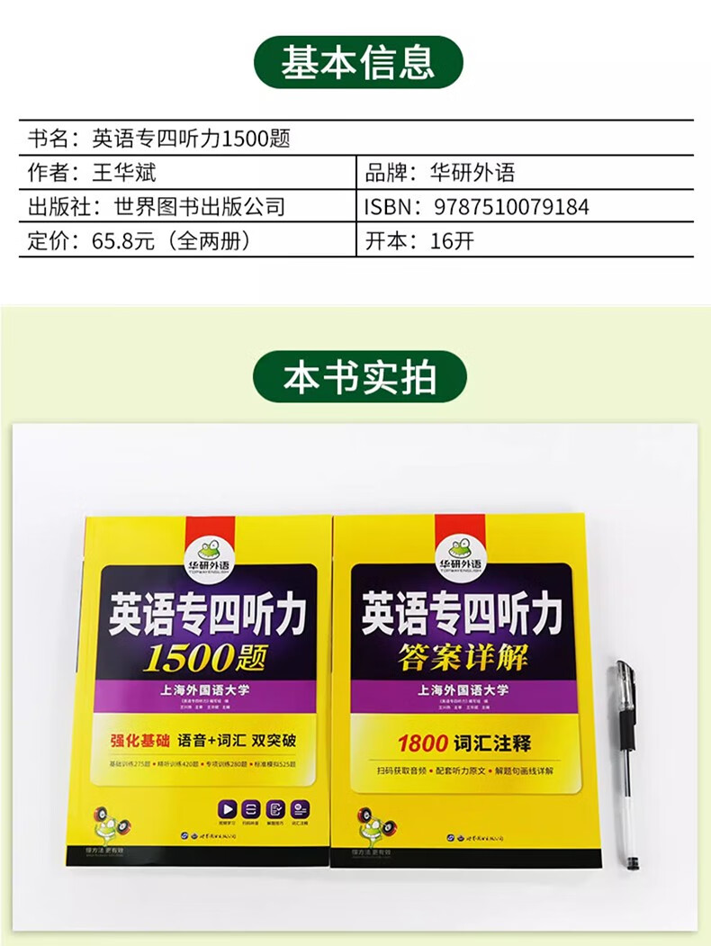 Especialidad genuina 4 Preparación auditiva para el idioma extranjero Huayan 2026 Especialidad inglesa 4 Escucha 1500 preguntas El conjunto completo de capacitación especial se puede usar con exámenes reales de años anteriores Palabras de gramática y vocabulario Especialidad Huayan 4 Entrenamiento de prueba real + Gramática y vocabulario 2 libros