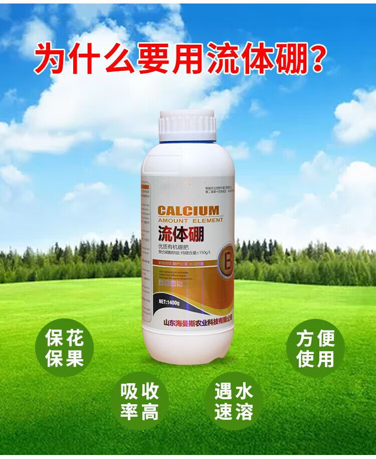 Flüssiger Bordünger, Blattdünger, Zuckeralkohol, Bor, flüssiges Bor zum Schutz von Blumen und Früchten und zur Verhinderung des Fruchtabfalls, Bordünger für landwirtschaftliche Blumen, zur Förderung von Borobstbaumdünger, 1400 g/Flasche