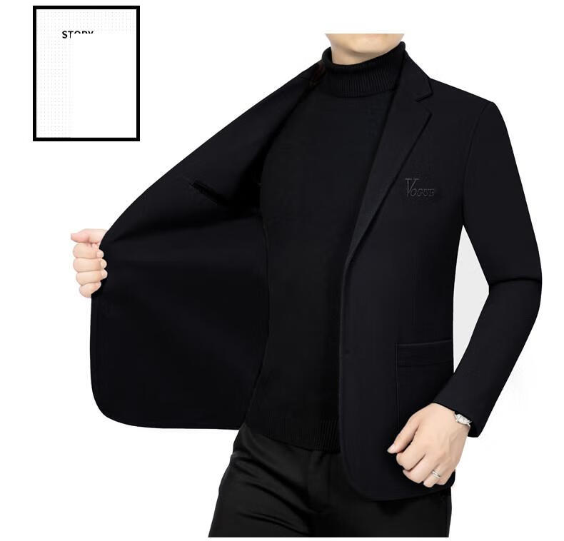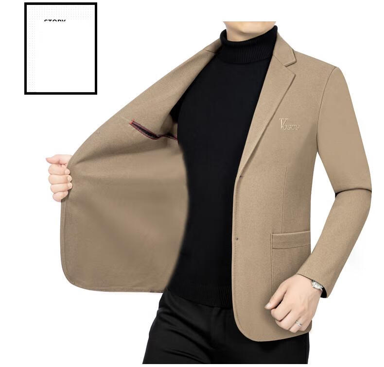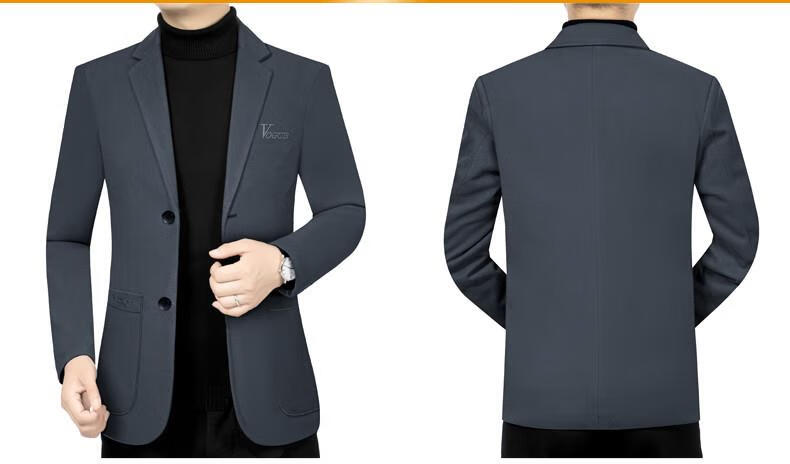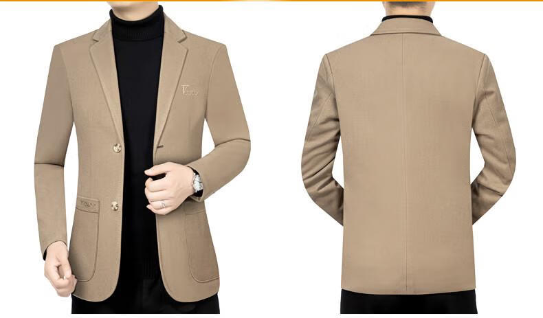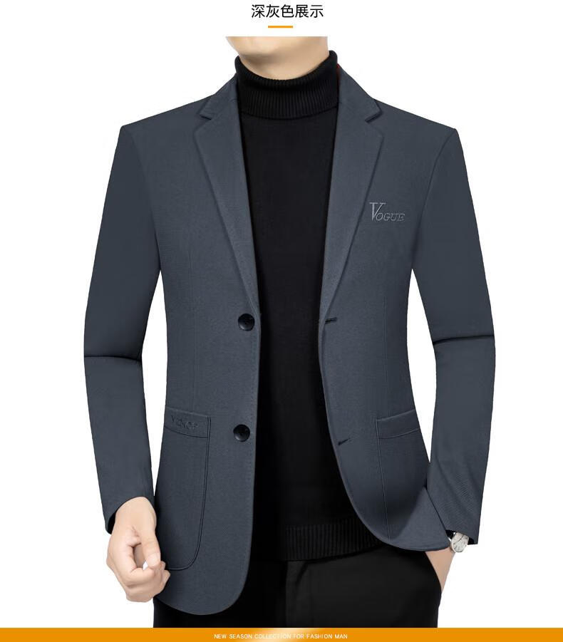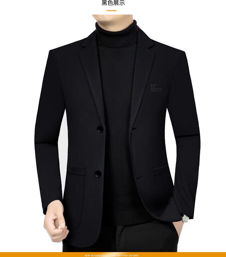 皮尔卡丹(pierre cardin)春秋新款男士西服中年休闲韩版修身简约羊毛西装外套新品 黑色 L 175 120-138斤