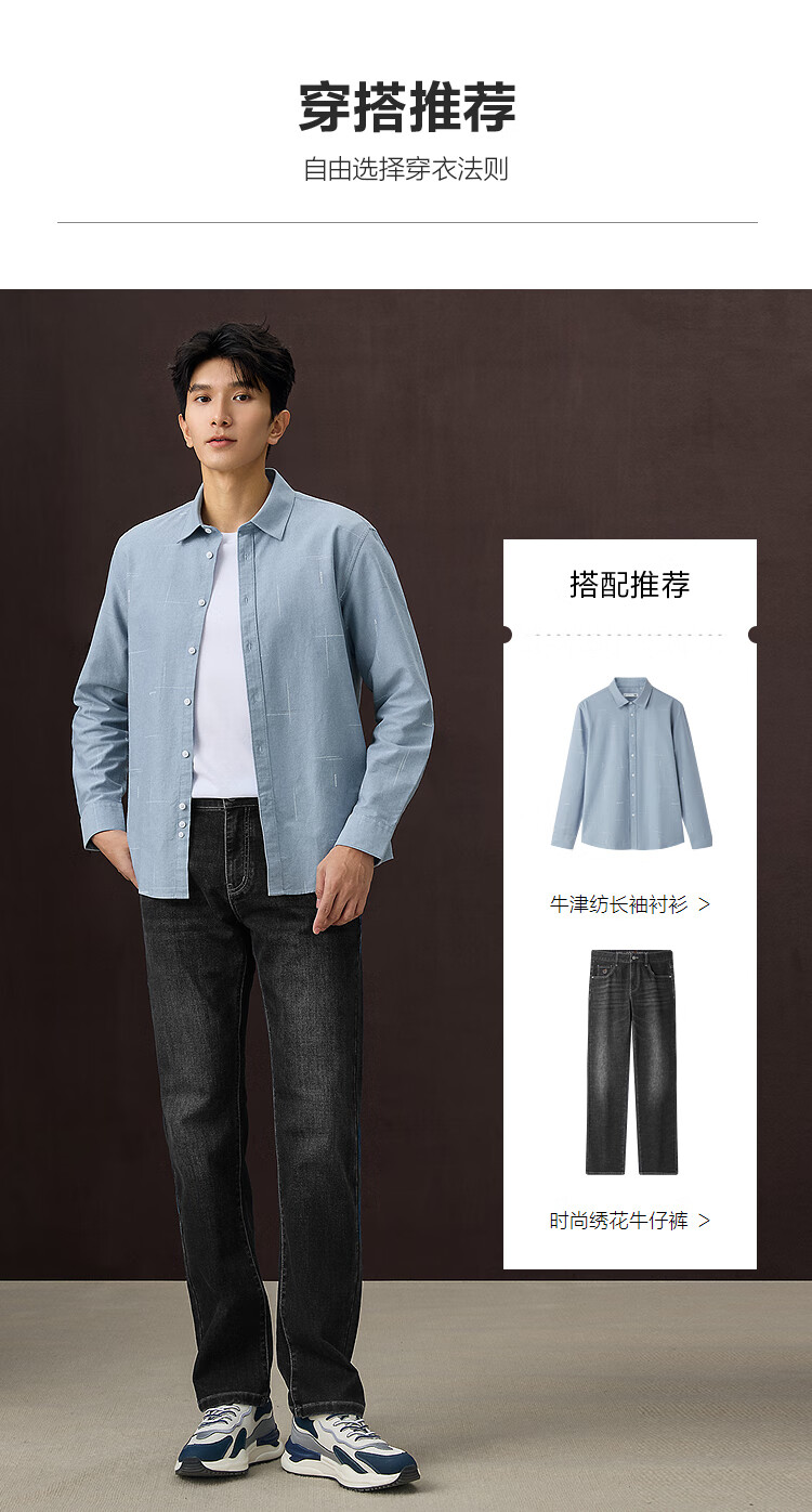 Heilan House (HLA) рубашка с длинными рукавами, мужская легкая деловая классическая рубашка Оксфорд, мужская осенняя сине-серая рубашка с рисунком 86 M 175/92A рекомендуется 137 ~ 148Jin Jin равен 0,5 кг