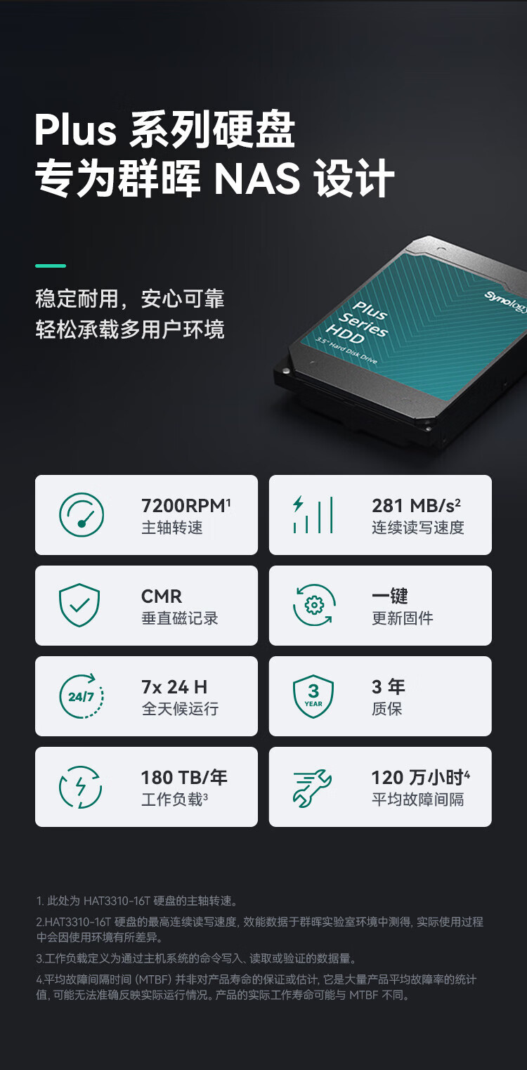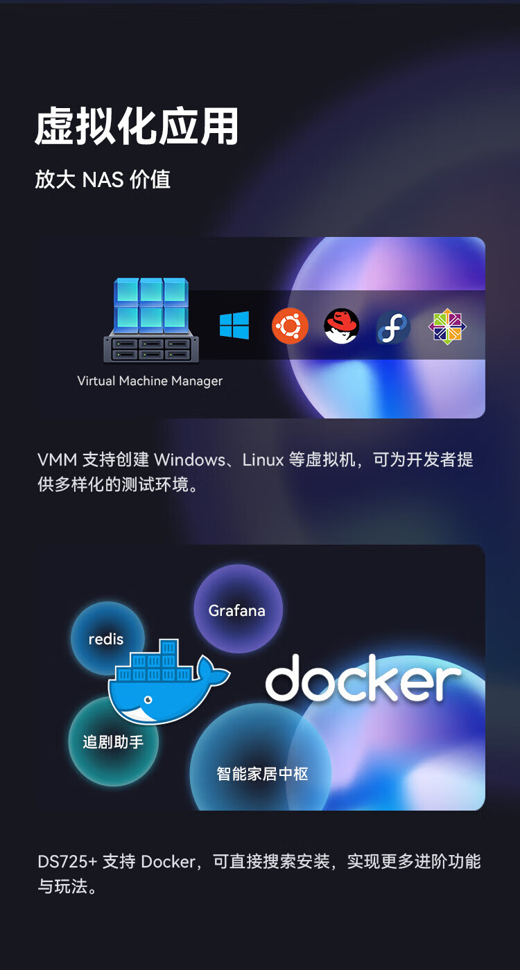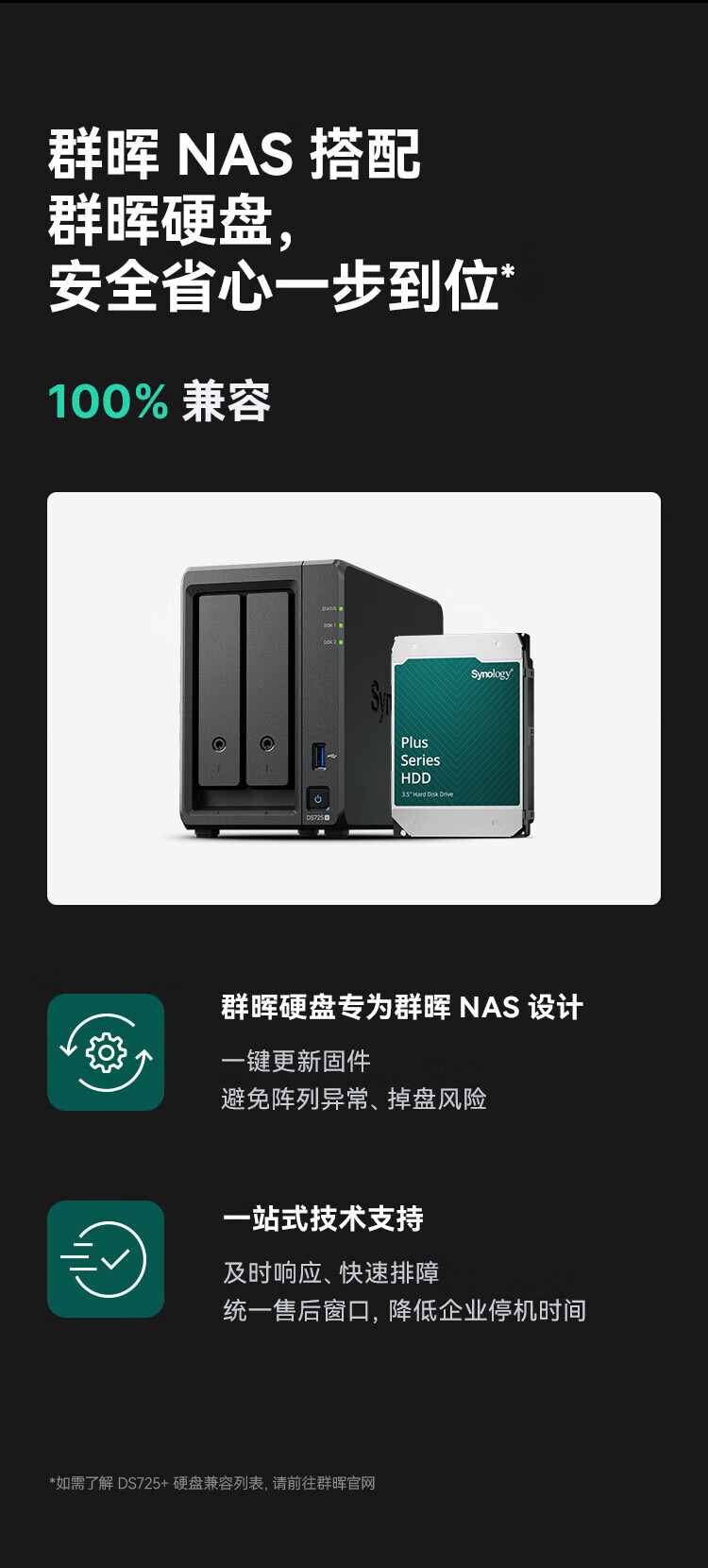 群晖(Synology)DS725+ 双核心 两盘位 NAS网络存储服务器 企业团队办公私有云 文件存储共享 数据管理 黑色 标配(不含硬盘)