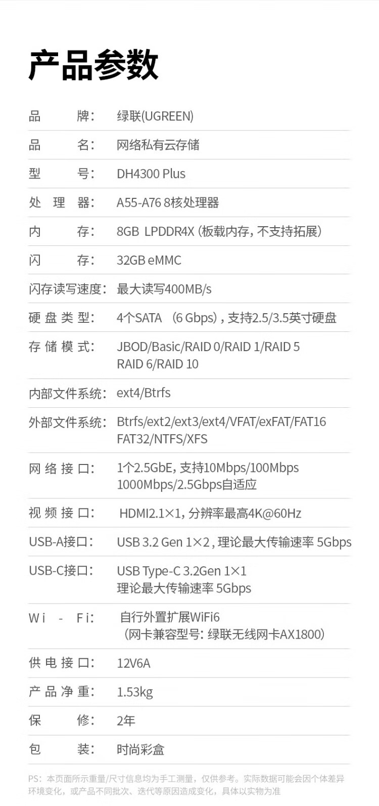 绿联私有云DH4300 Plus 8G四盘位NAS网络存储个人云AI家庭硬盘服务器手机NFC一碰连接相册备份平板扩容 DH4300 Plus-配2*4TB酷狼硬盘