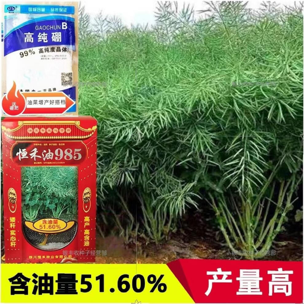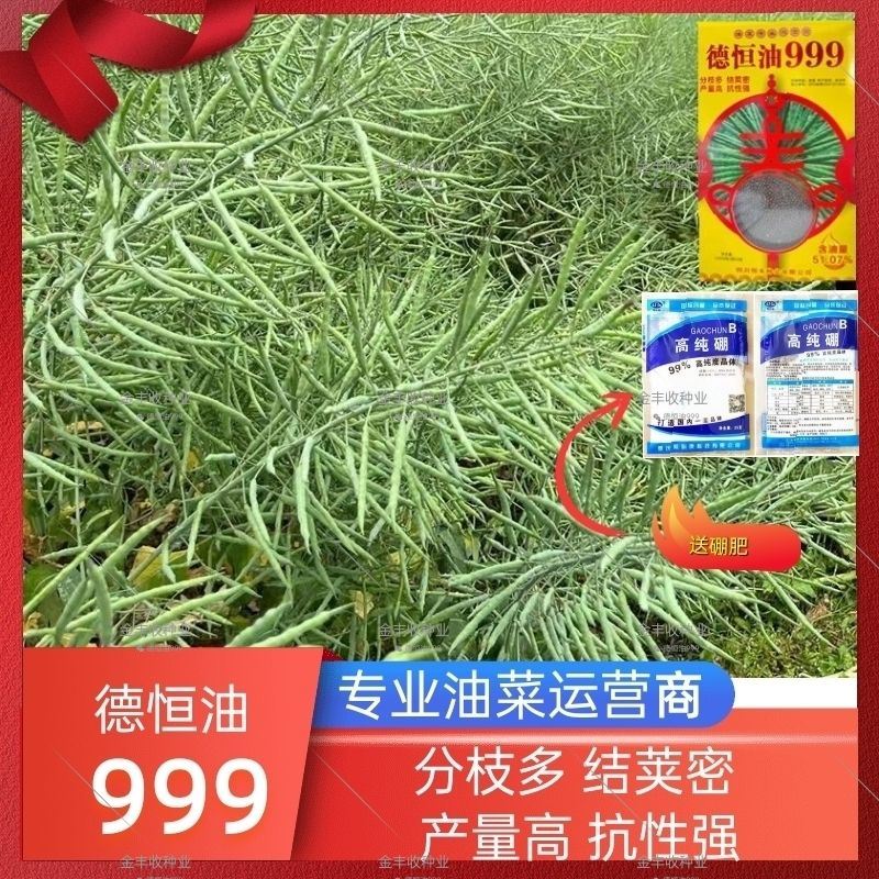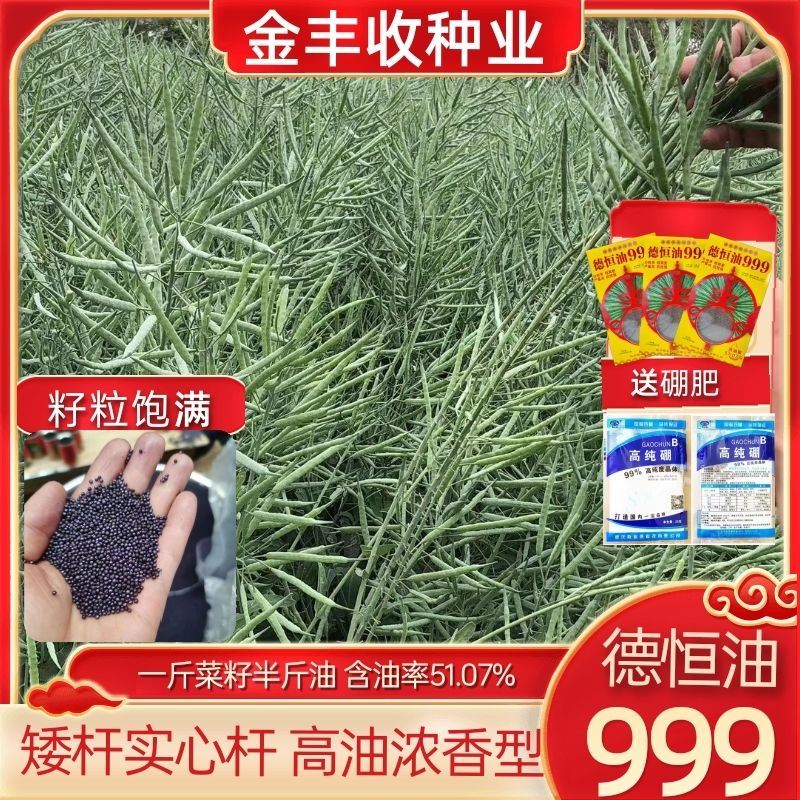 Гибридные высокоурожайные семена рапса Ван Юаньсин с короткими стеблями, морозостойкостью, устойчивостью к полеганию и раннеспелым маслом с высоким выходом масла. Deheng Oil 999 Рапсовое масло Deheng Oil 999 (две коробки) поставляется с пакетом 100 г борных удобрений.