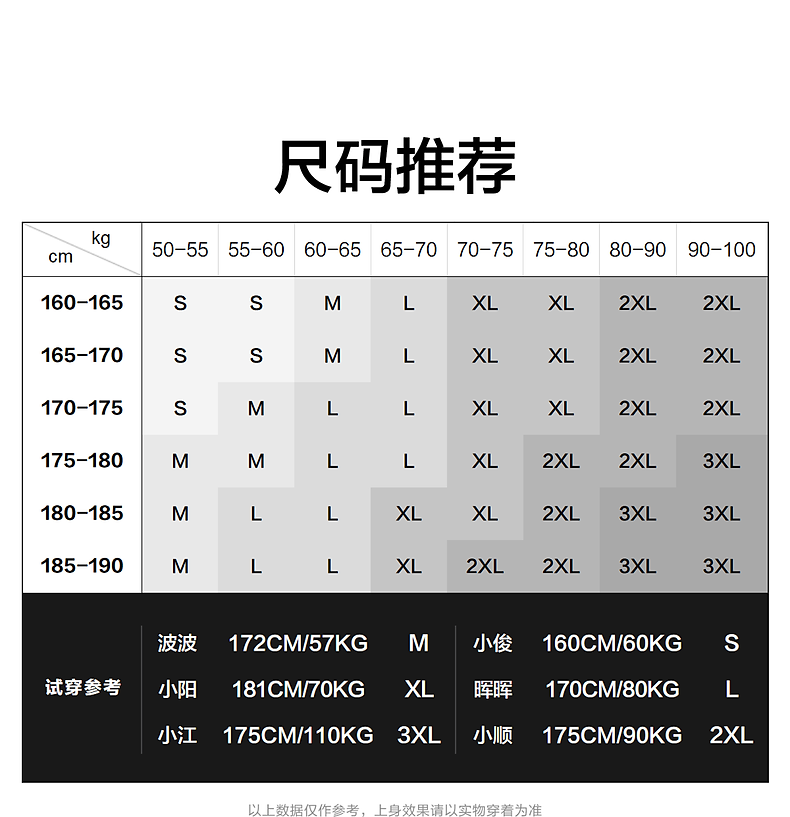 China (cm) 165 / 88-90 170 / 96-98 175 / 108-110 180 / 118-122 185 / 126-130