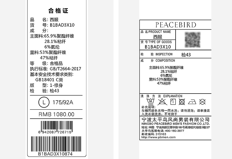 太平鸟男装【商场同款】西服B1BAD3X10 黑白灰7 L