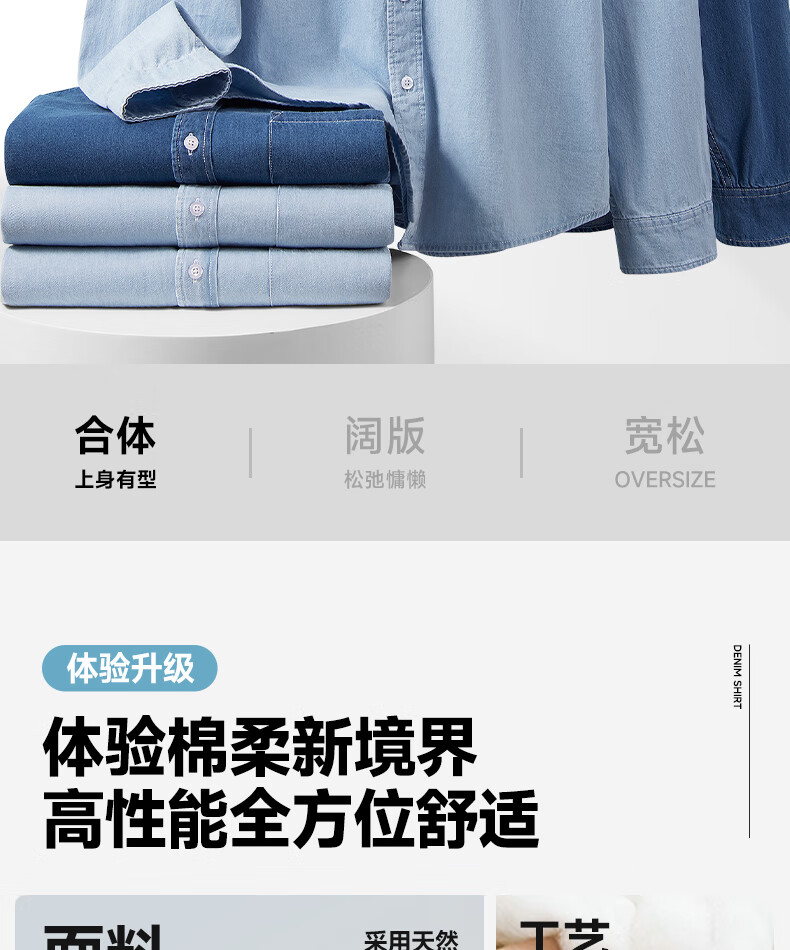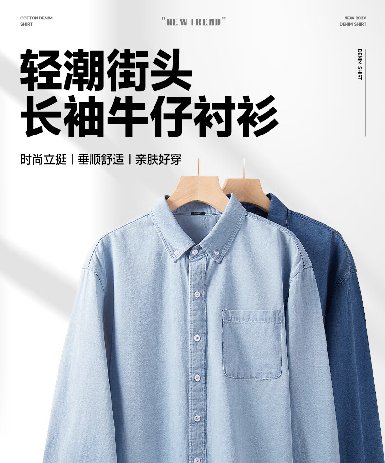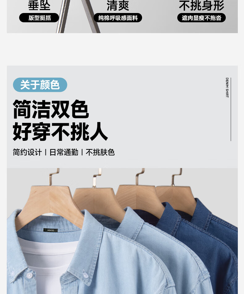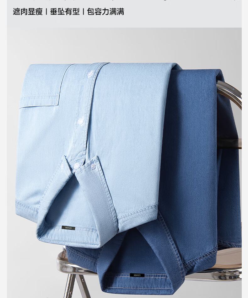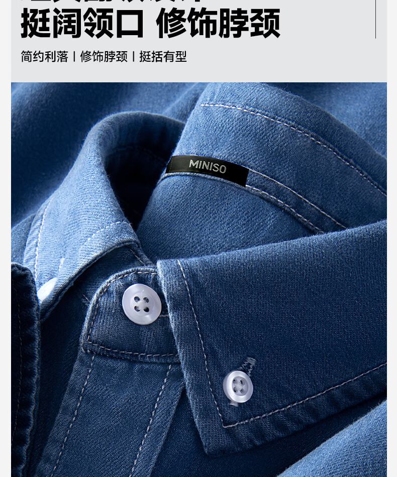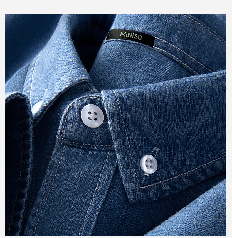 名创优品(MINISO)牛仔衬衫男2026新款男士纯棉水洗浅蓝色长袖春秋款薄款百搭外套潮 【100%纯棉】浅蓝 L /175(30天质量问题全额退)