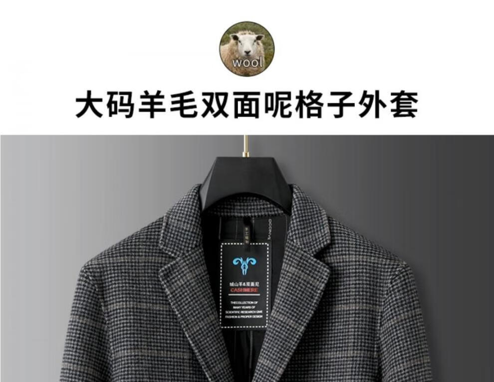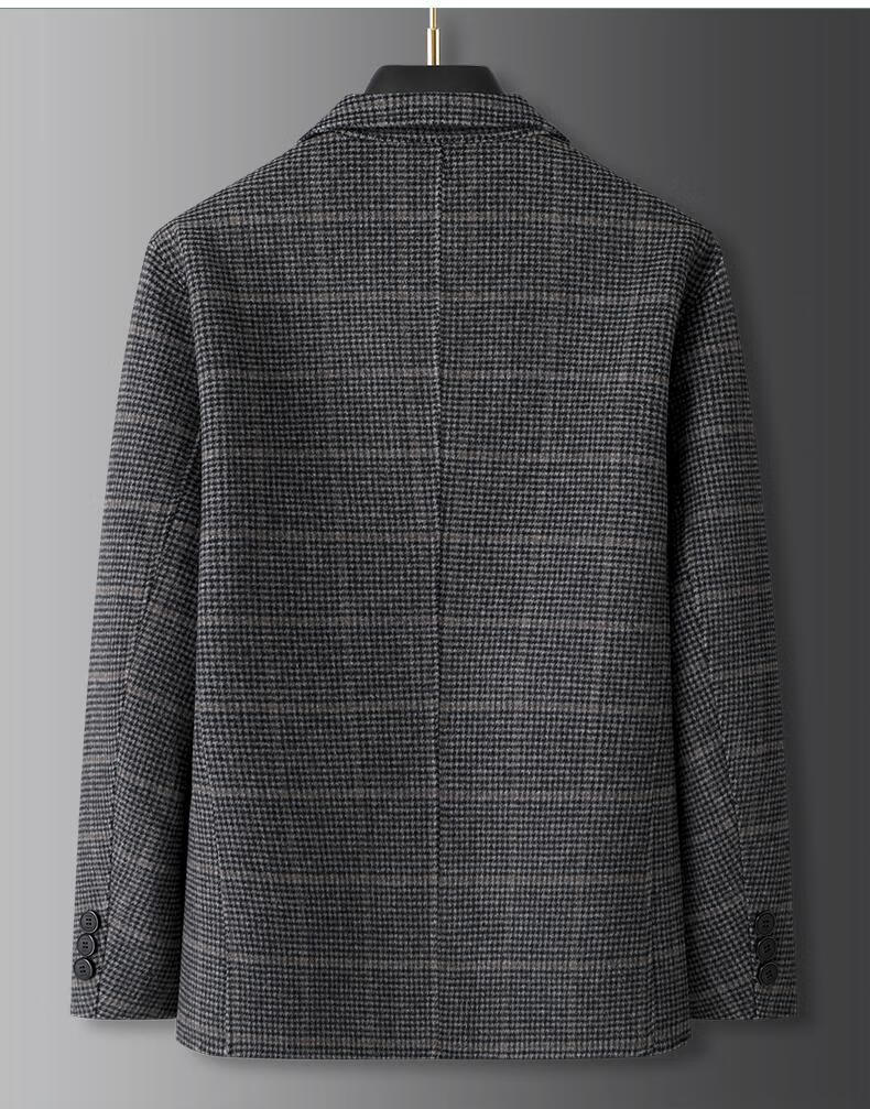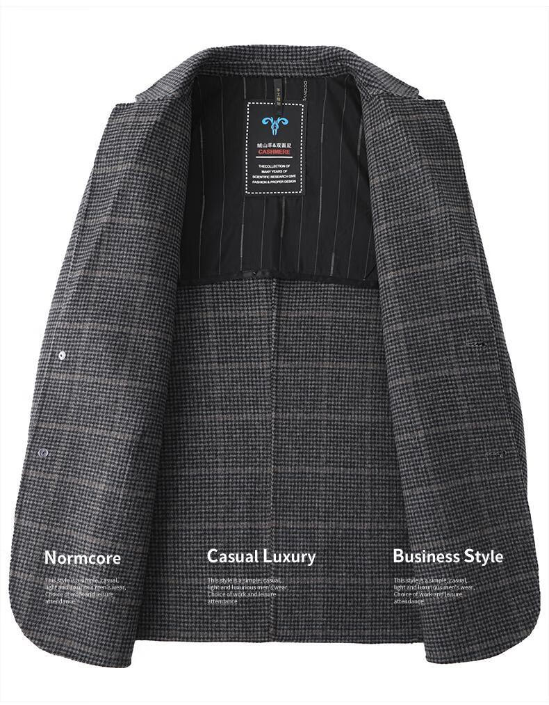 Pierre Cardin двустороннее шерстяное пальто мужское короткое толстое осенне-зимнее шерстяное пальто плюс размер свободный шерстяной клетчатый костюм серого цвета 2XL